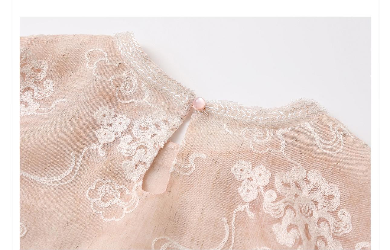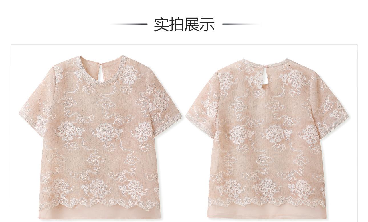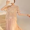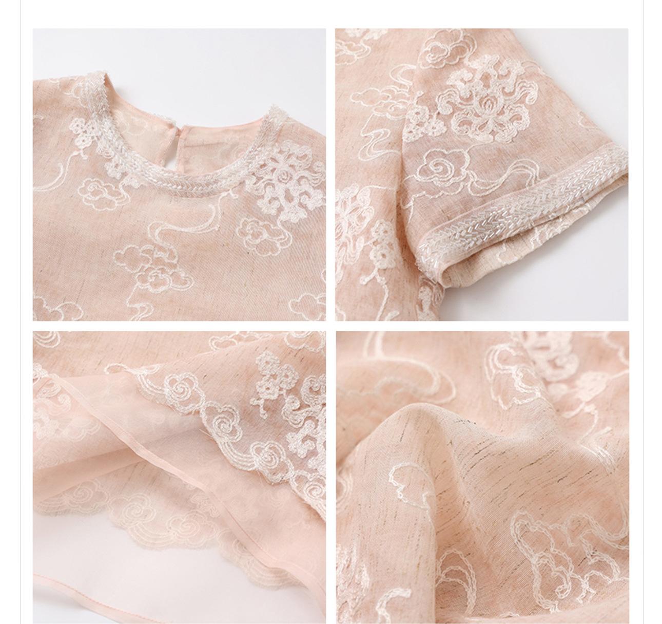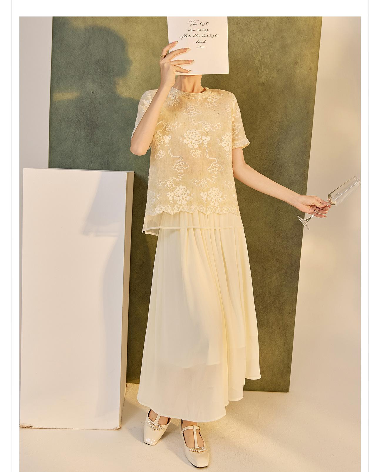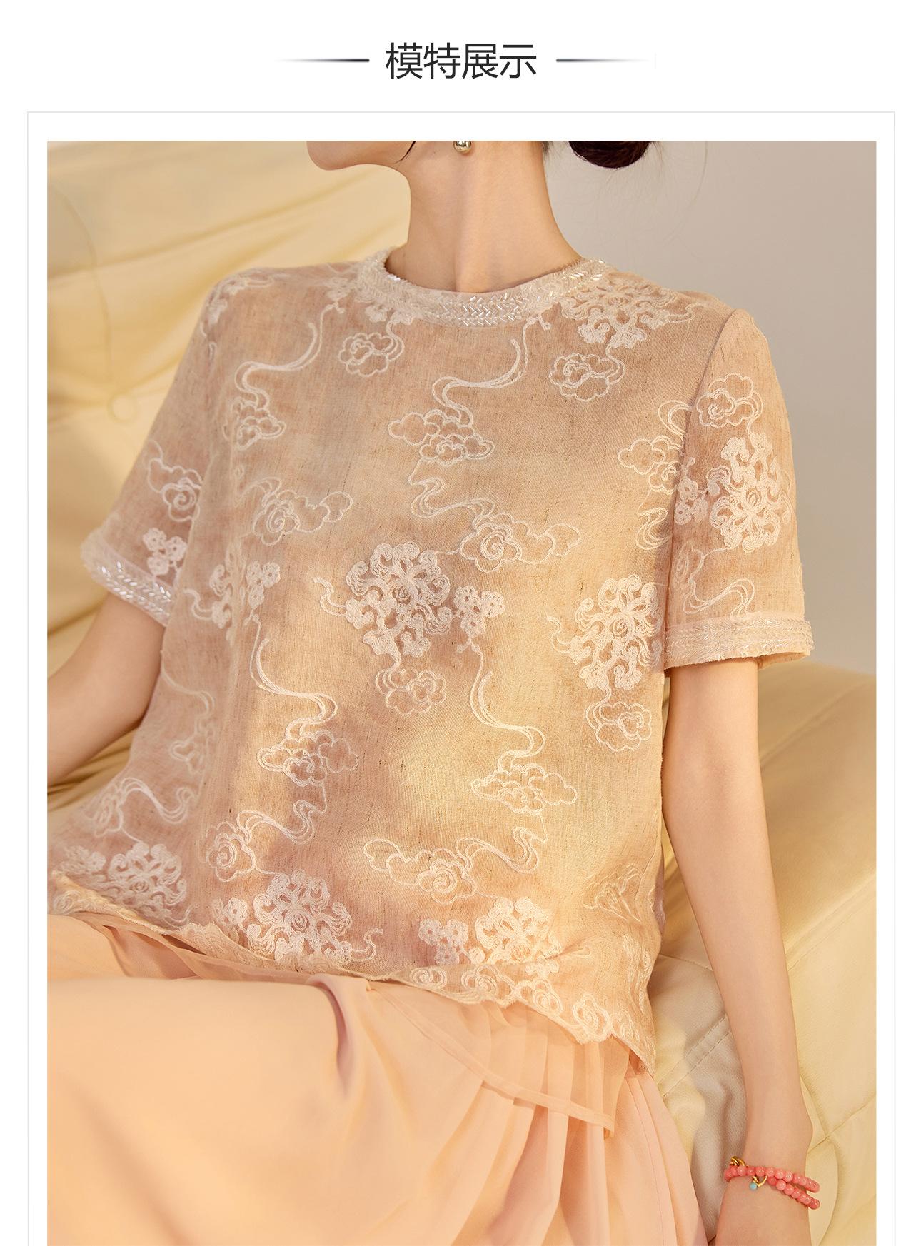 Nuevos Tops Elegantes con Cuentas Pesadas de Estilo Chino para Mujer Verano Camisas de Moda de Estilo Nacional Trajes de Falda de Color Puro N5065