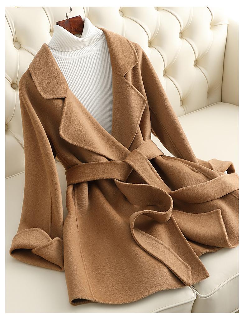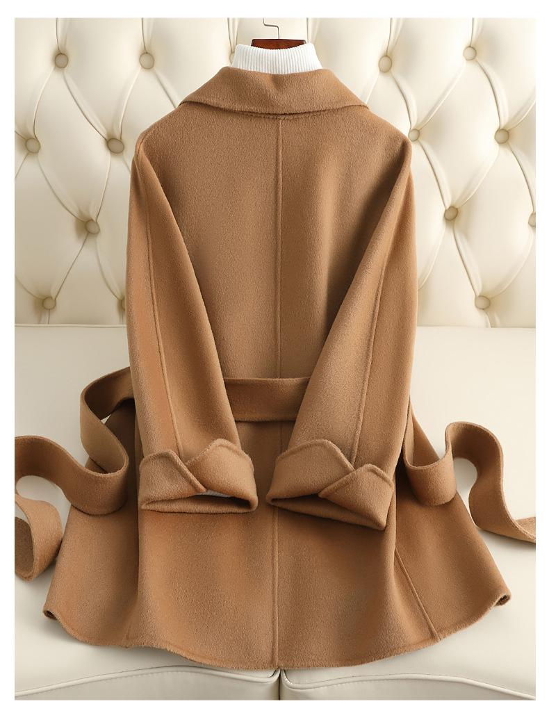 Abrigo de Cachemira de Doble Cara de Lana Pura con Cuello de Traje de Nuevo Estilo 2025 para Mujer, Estilo Corto, Estilo Pequeño Fragante, Abrigo de Lana
