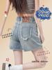 Shorts de mezclilla de corte crudo para mujer, verano delgado 2025 nuevo diseño slim de cintura alta, sexy línea A de pierna ancha, pantalones cortos