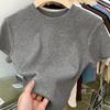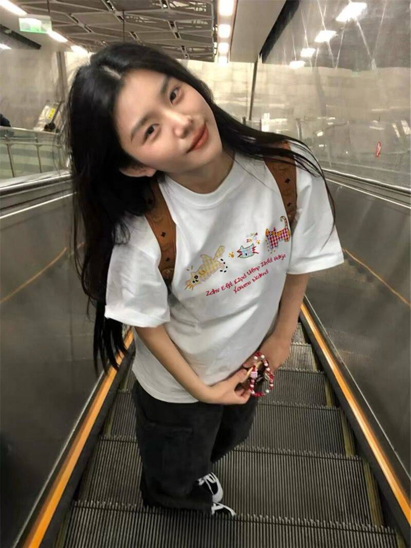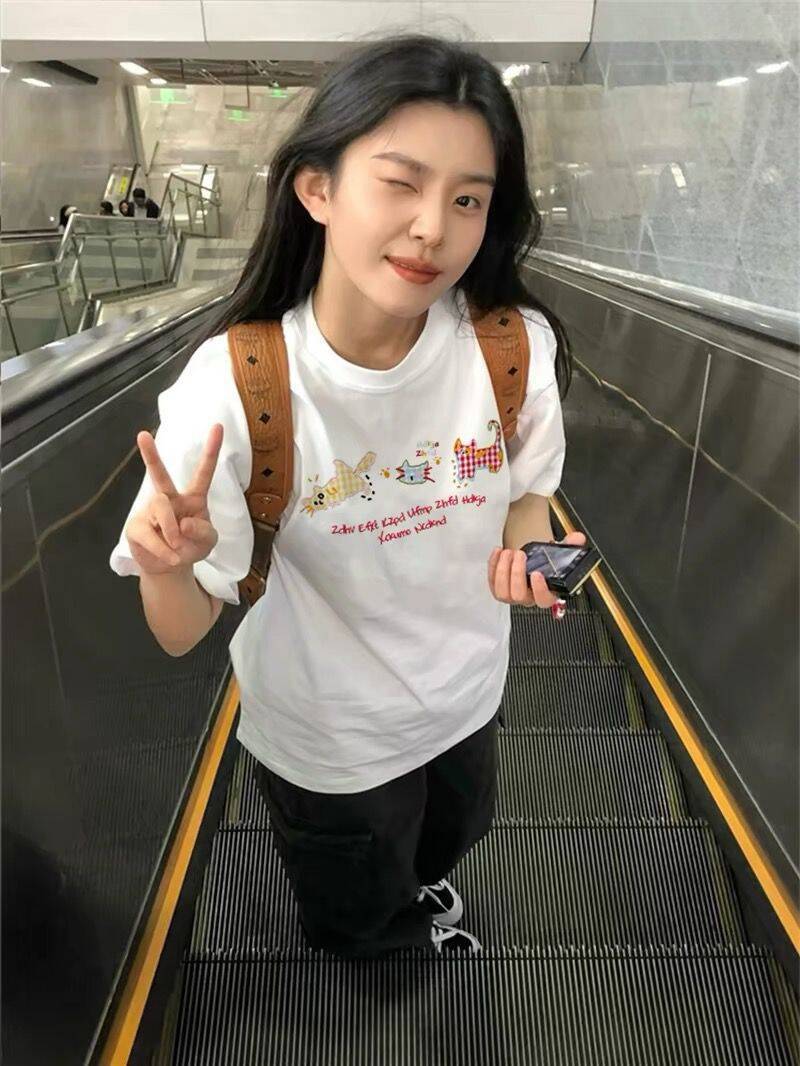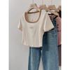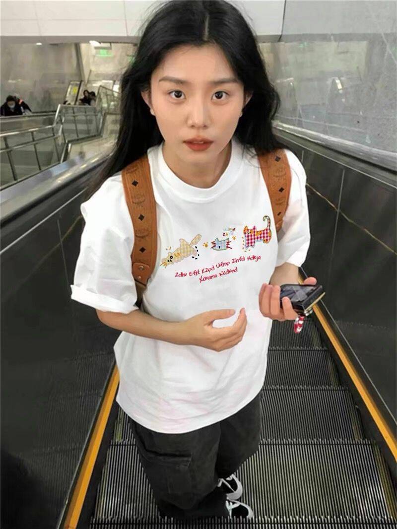 Camiseta de Algodón de Verano Blanca de Manga Corta para Mujer 2025 Nuevo Diseño Caliente con Hombro Descubierto Sentido Americano Manga Corta Top Holgado