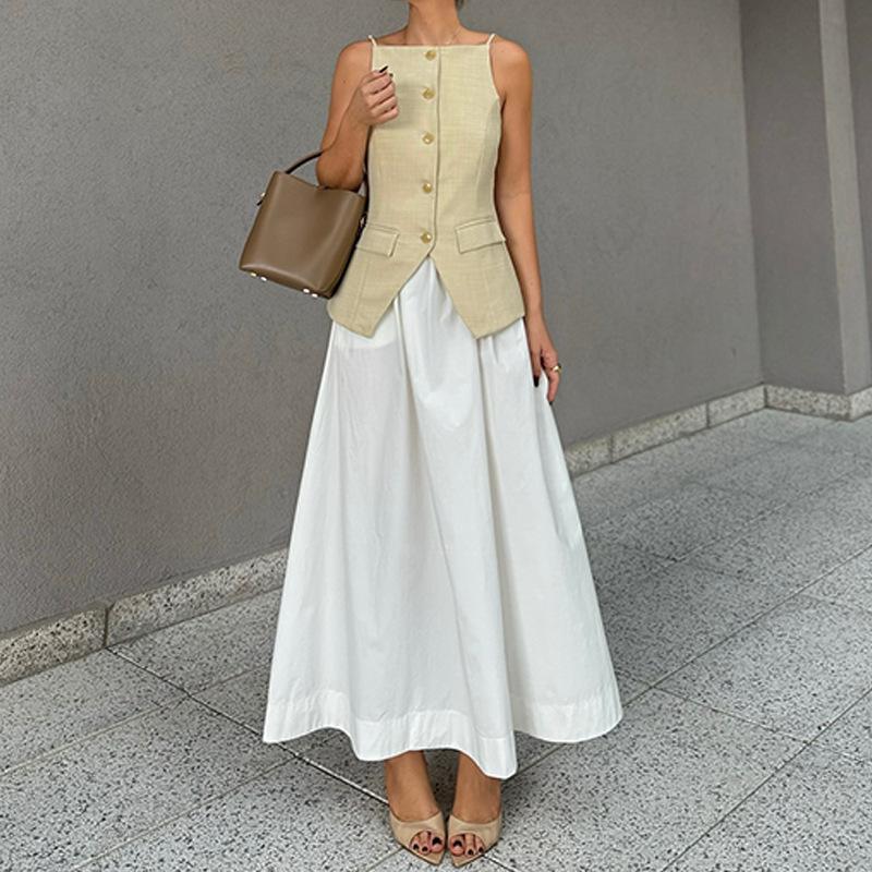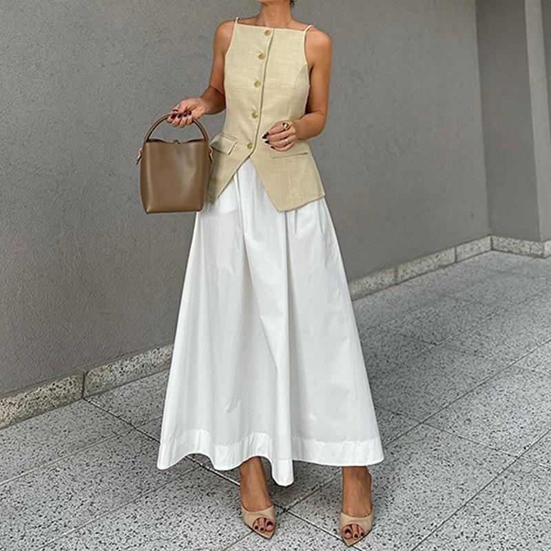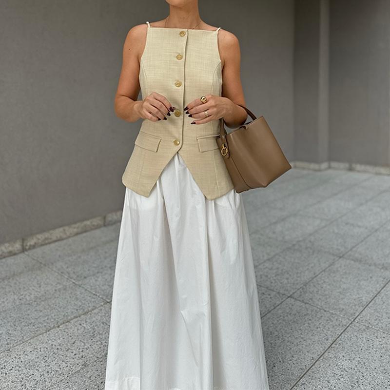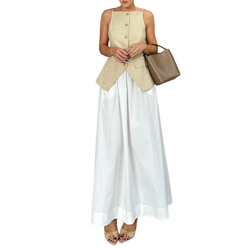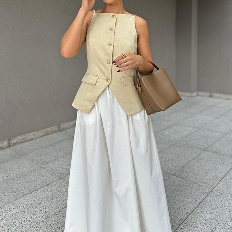 Amazon 2024 Ropa Europea y Americana Primavera y Verano Nuevo Moda Femenina Elegante Tirantes Color Puro Tops sin Mangas Transfronterizos