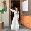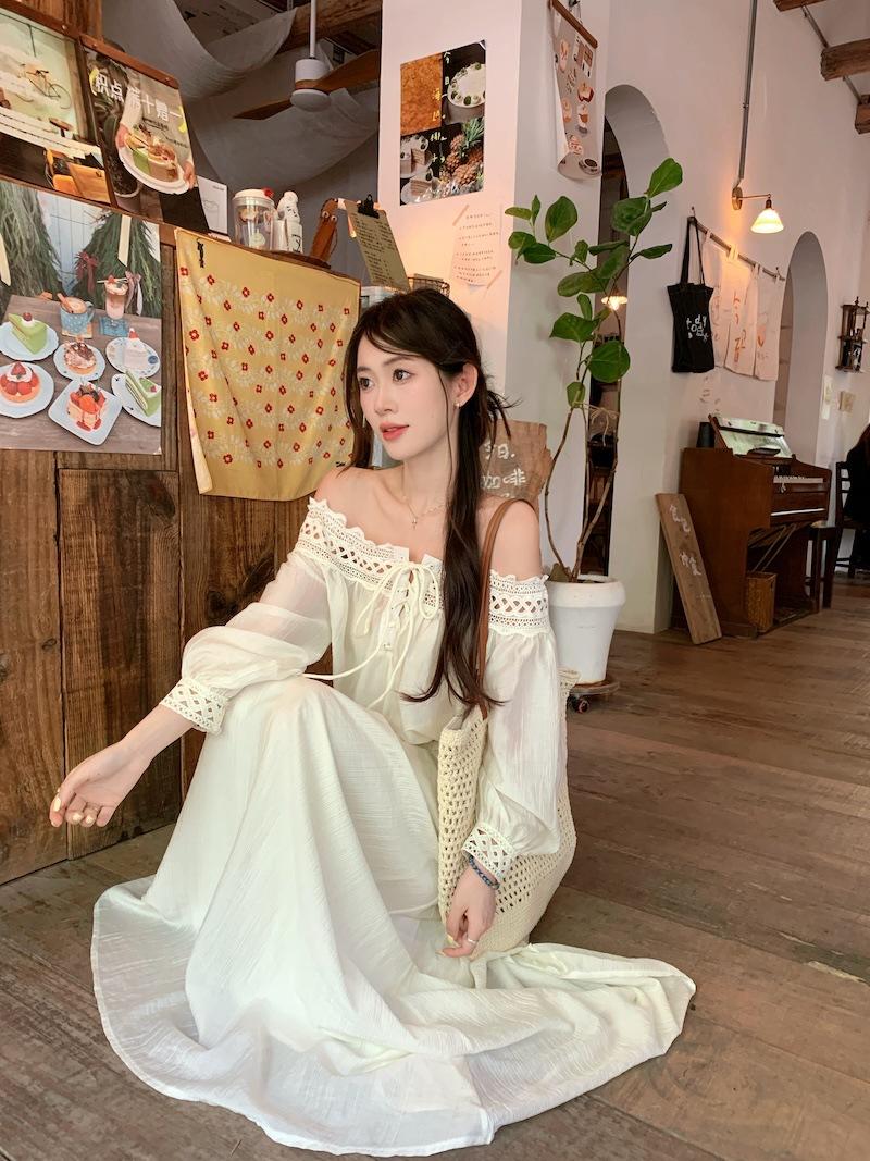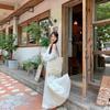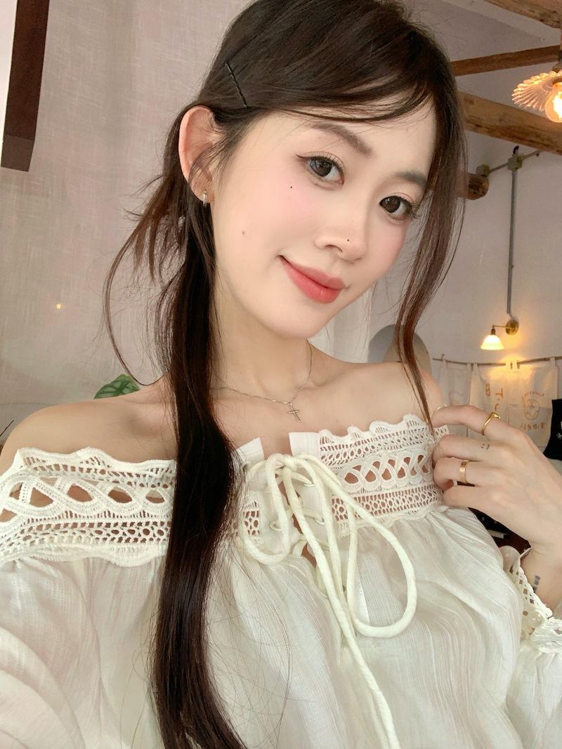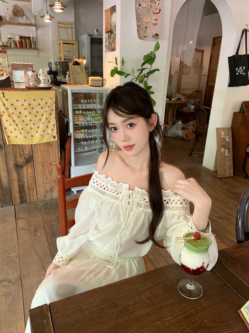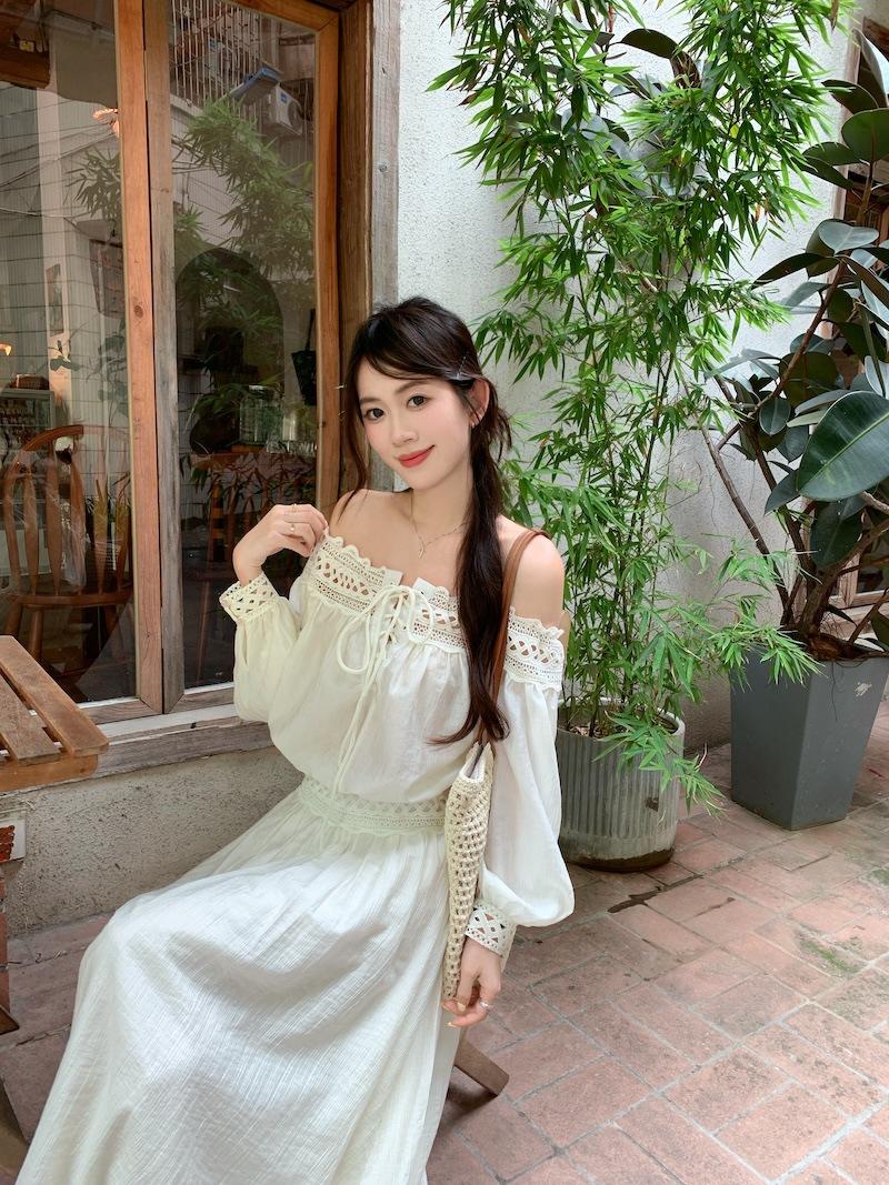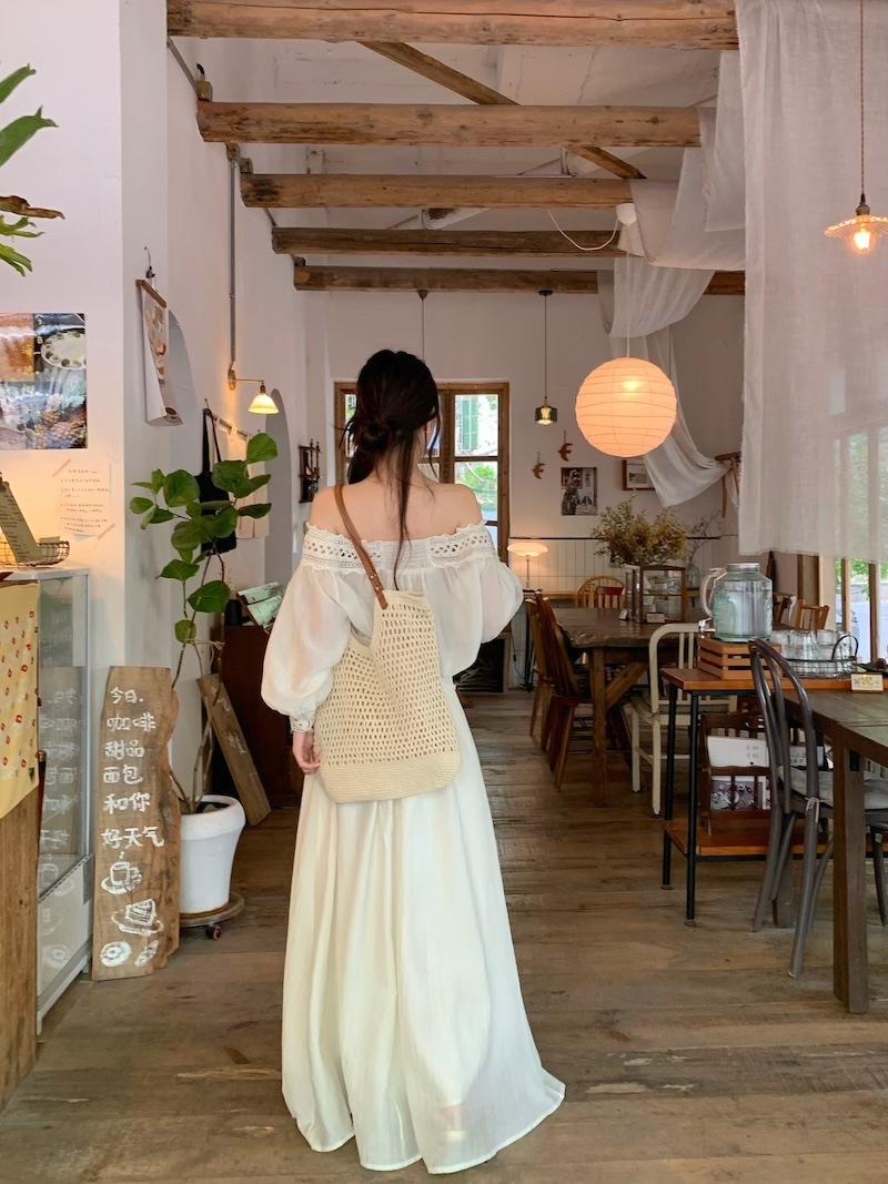 Conjunto de dos piezas de estilo informal para vacaciones en la playa, estilo coreano, elegante, con encaje, blusa y media falda.