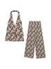 Moda Europea y Americana Transfronteriza Ropa de Mujer 2025 Verano Nuevo Estilo Sexy Cuello Halter Diseño Descubierto Estampado Traje de Pantalón Recto