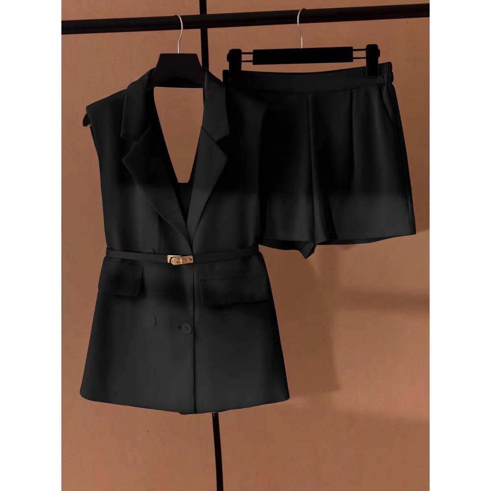 Traje de Moda sin Mangas para Mujer, Top Chaleco Elegante de Verano, Set de Dos Piezas de Pantalones Cortos Holgados de Pierna Ancha 2025 Nuevo Estilo A4289