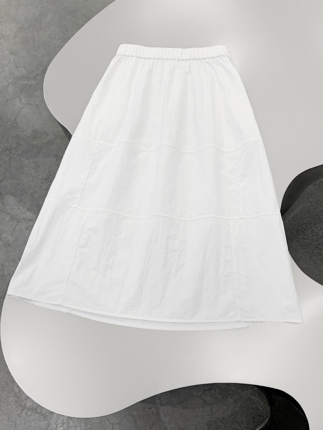 2025 Nuevo Estilo de Verano Estilo Francés Suave Cintura Elástica Falda Blanca de Capullo de Flor Plisada Ajustada Larga Falda Artística
