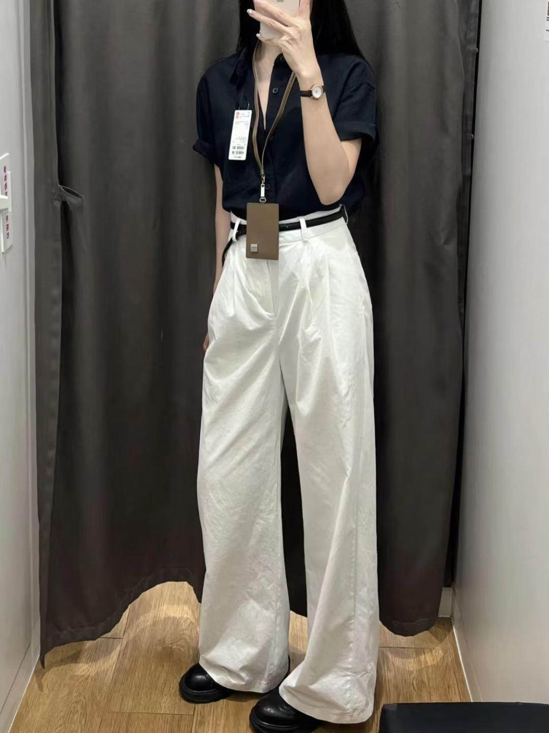 Jeans blancos plisados drapeados de pierna ancha para mujer, otoño nuevo, cintura alta sueltos 2024, pantalones rectos adelgazantes