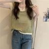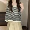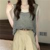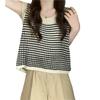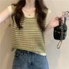 Chaleco de Punto Calado Interior a Rayas de Verano 2024 para Mujer, Nicho Suelto, Ropa Exterior sin Mangas, Tirantes, Top de Chica Caliente de Moda