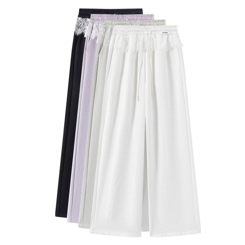 Encaje Estilo Perezoso Casual Pantalones de Pierna Ancha Verano para Mujer Delgados Cintura Alta Holgados Baggy Adelgazantes