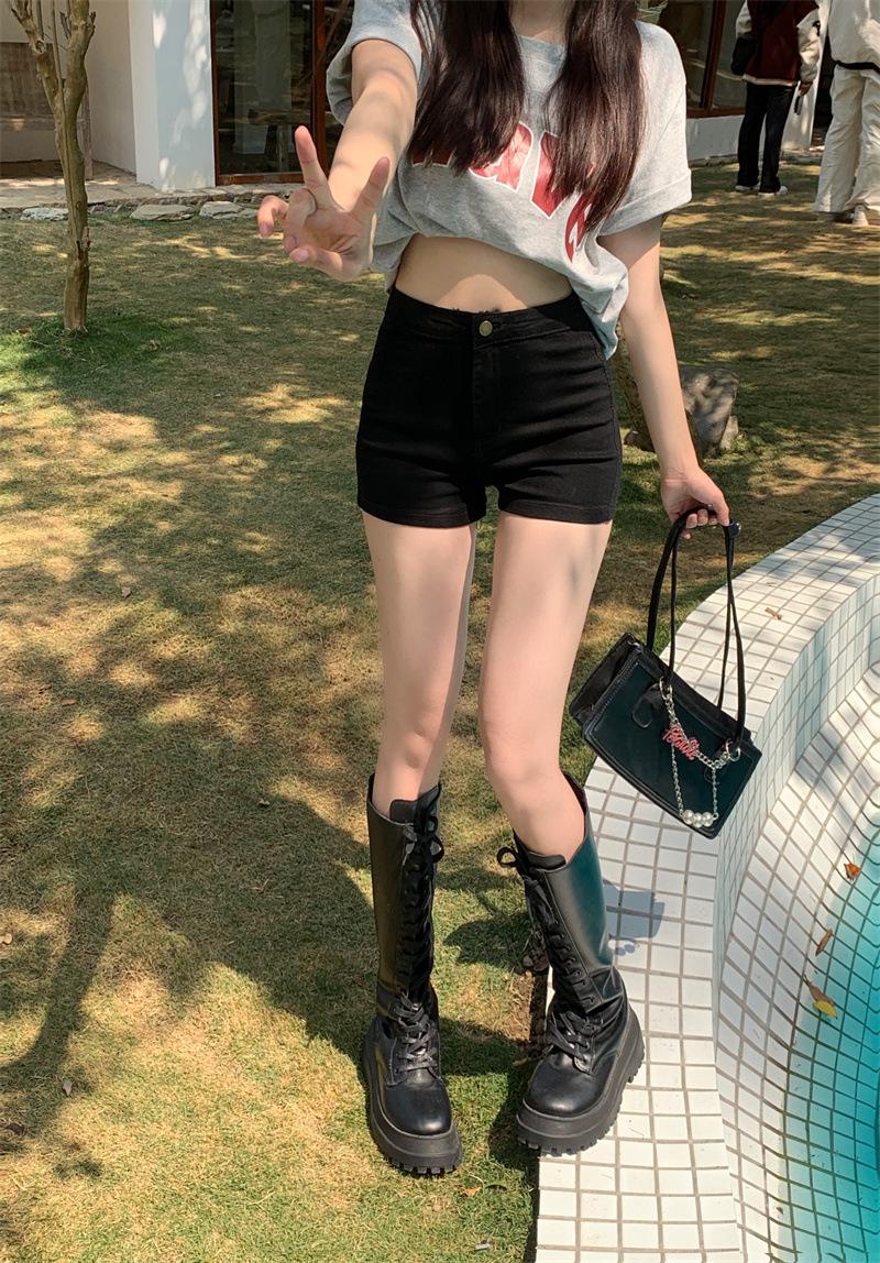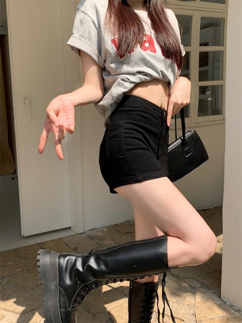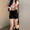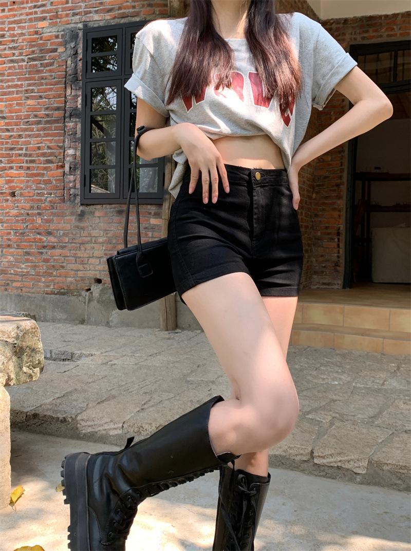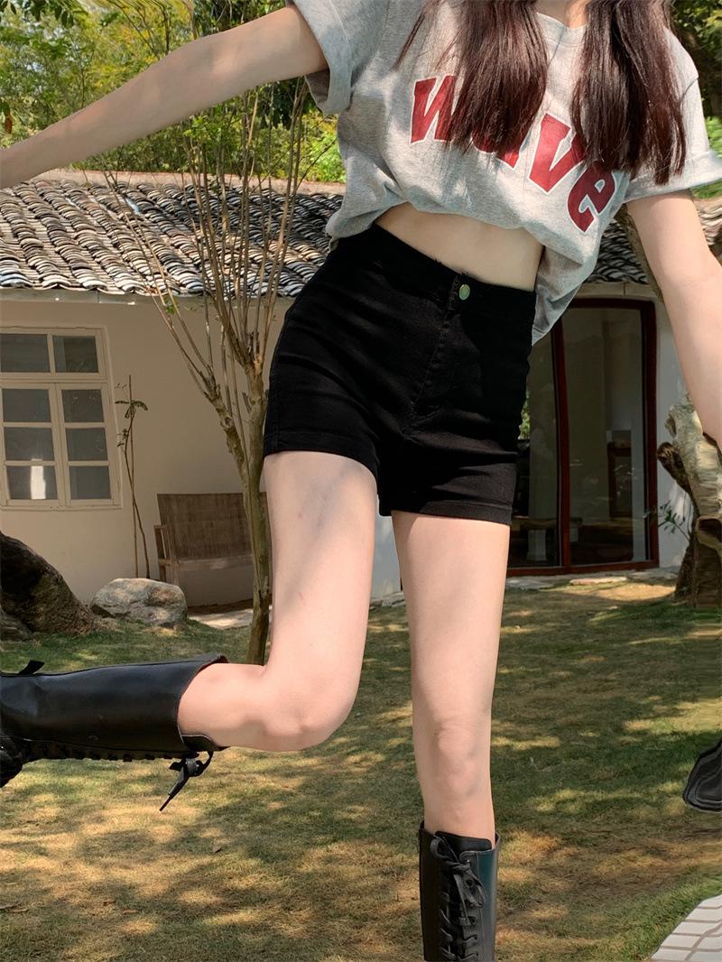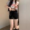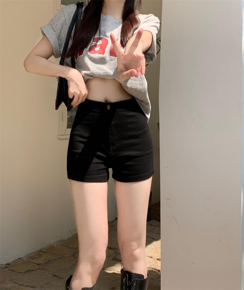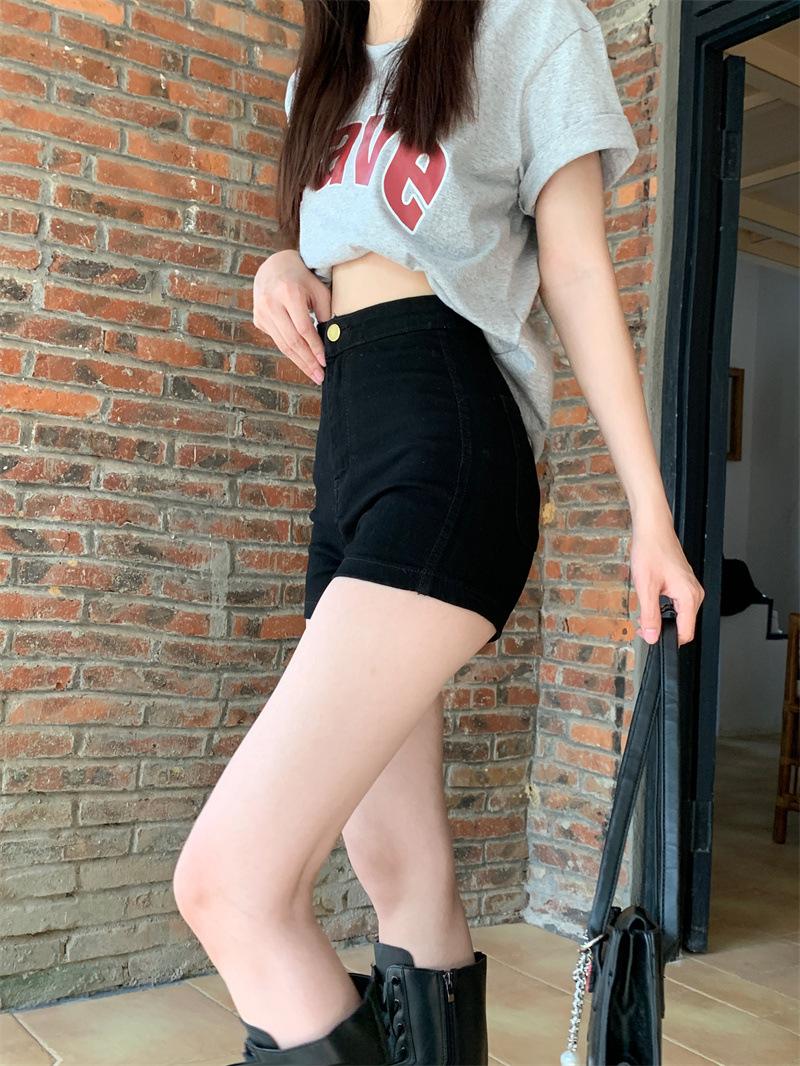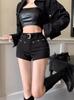 Shorts de mezclilla negros para mujer, pantalones rectos de verano petite adelgazantes de cintura alta, pantalones ajustados, shorts ultracortos de chica hot, pantalones cortos