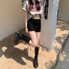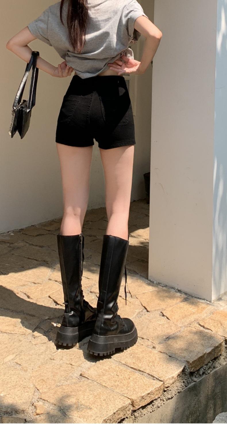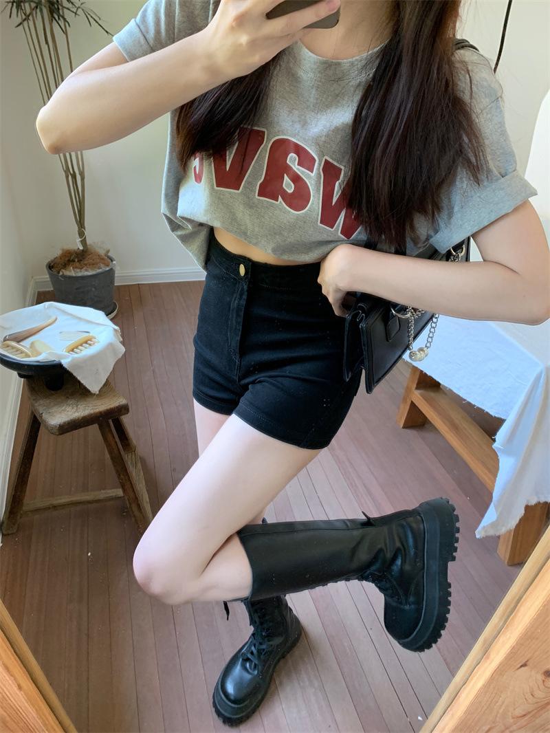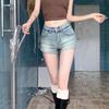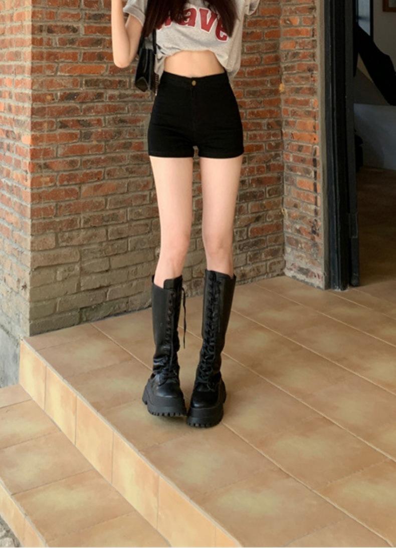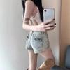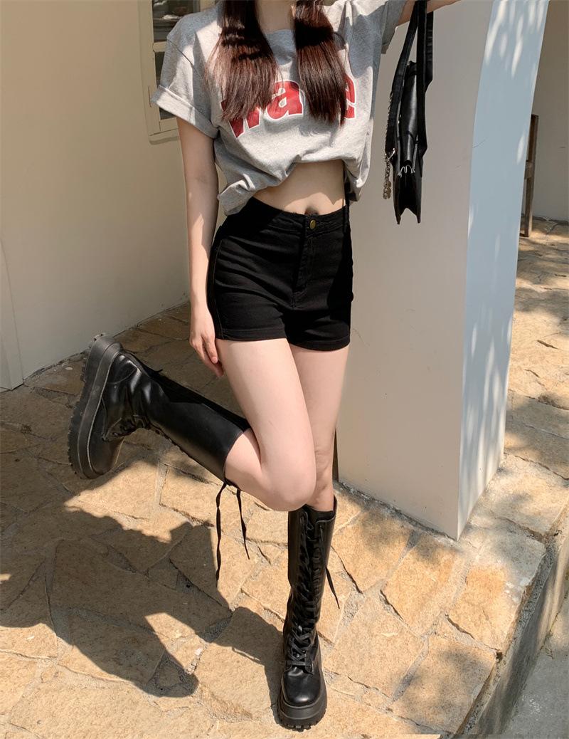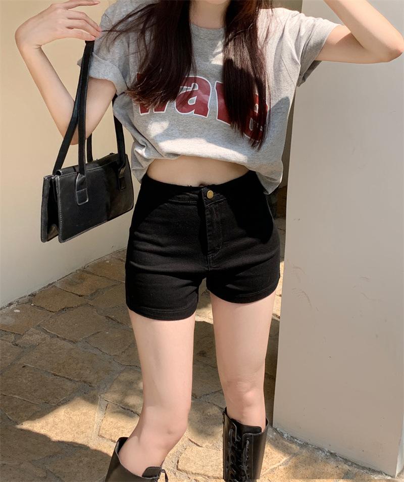 Shorts de mezclilla negros para mujer, pantalones rectos de verano petite adelgazantes de cintura alta, pantalones ajustados, shorts ultracortos de chica hot, pantalones cortos