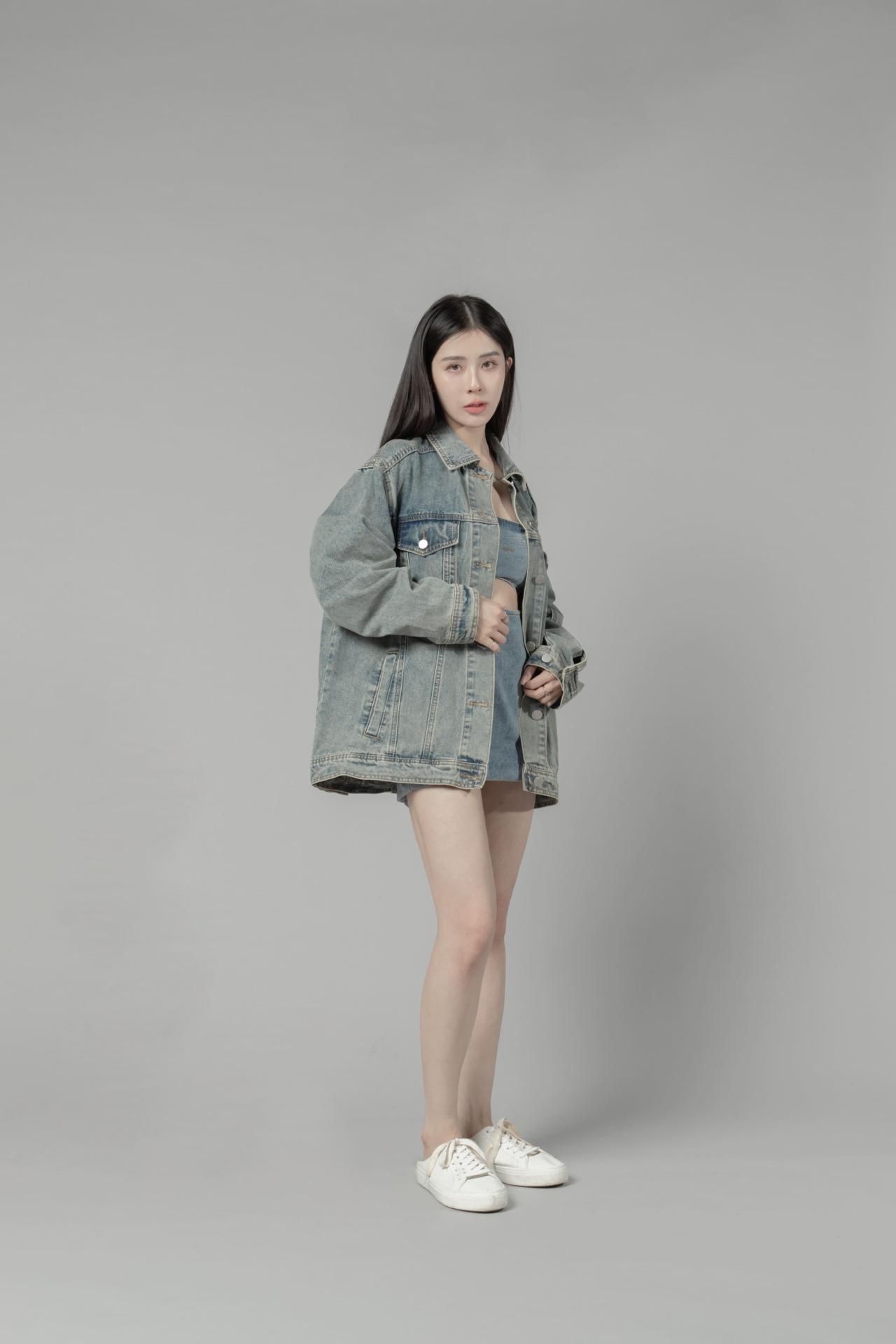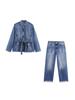 Pantalones Largos de Mezclilla Lavada y Desgastada de Estilo Americano de Calle Principal, Personalizados de Fábrica, Retro, Chaqueta Cárdigan Top para Mujer de Primavera y Verano