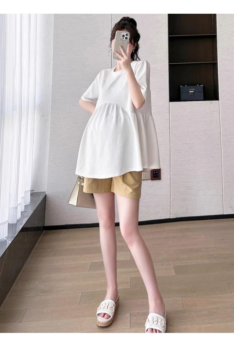 Camisetas de Maternidad de Manga Corta Tops Verano Sueltas Blancas Ropa Casual Que Cubre la Barriga Sin Mostrar Ropa de Embarazo Camisetas de Maternidad de Verano