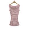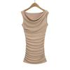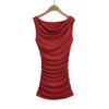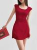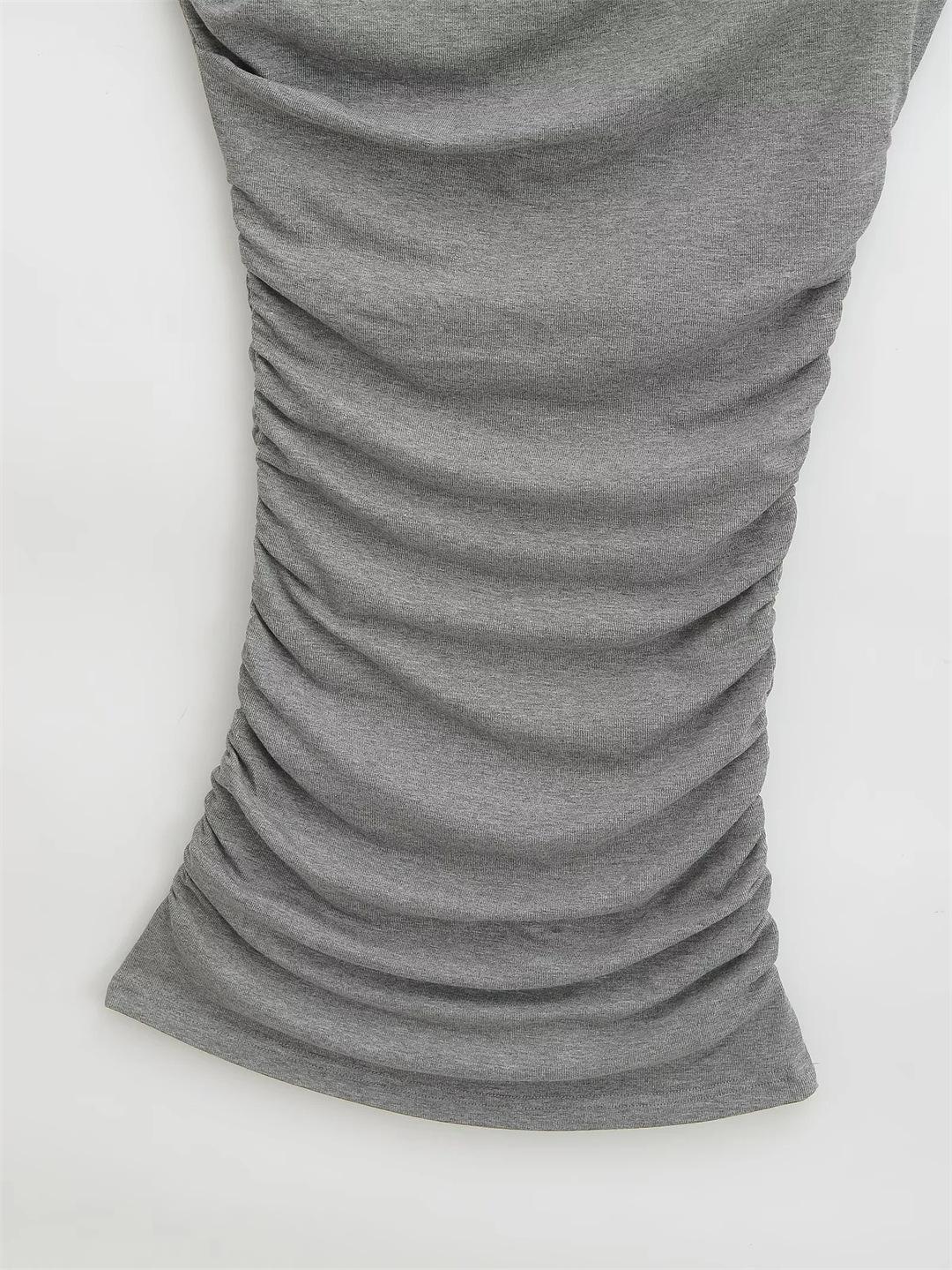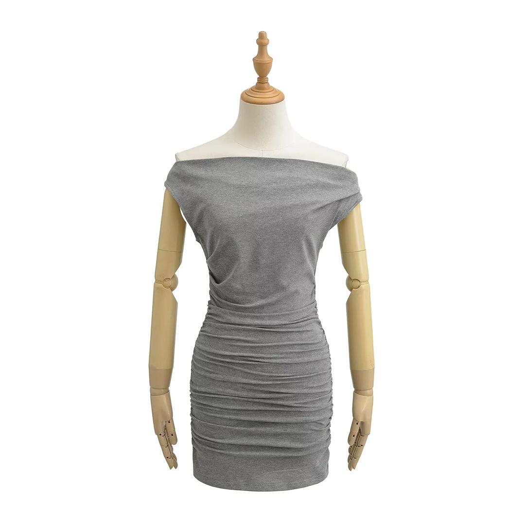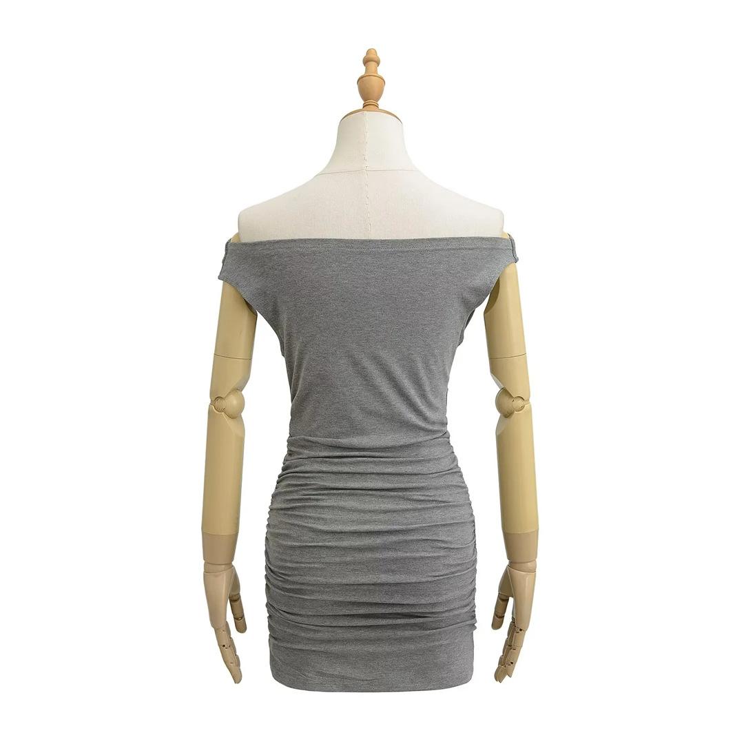 Vestido Sexy de un Hombro Europeo y Americano de Manga Corta Ajustado para Mujer Verano Sexy Falda Plisada Cubre Cintura Cadera