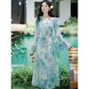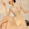Nuevo Traje de Vestido de Tirantes Floral Estilo Chino para Mujer Primavera y Verano Protección Solar Recorte Capa Chal Elegante Cintura Falda Larga