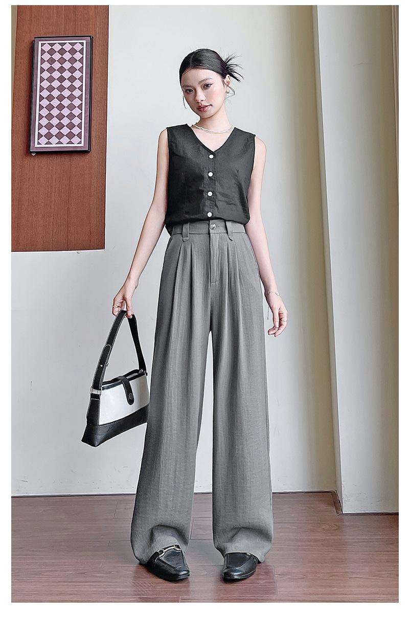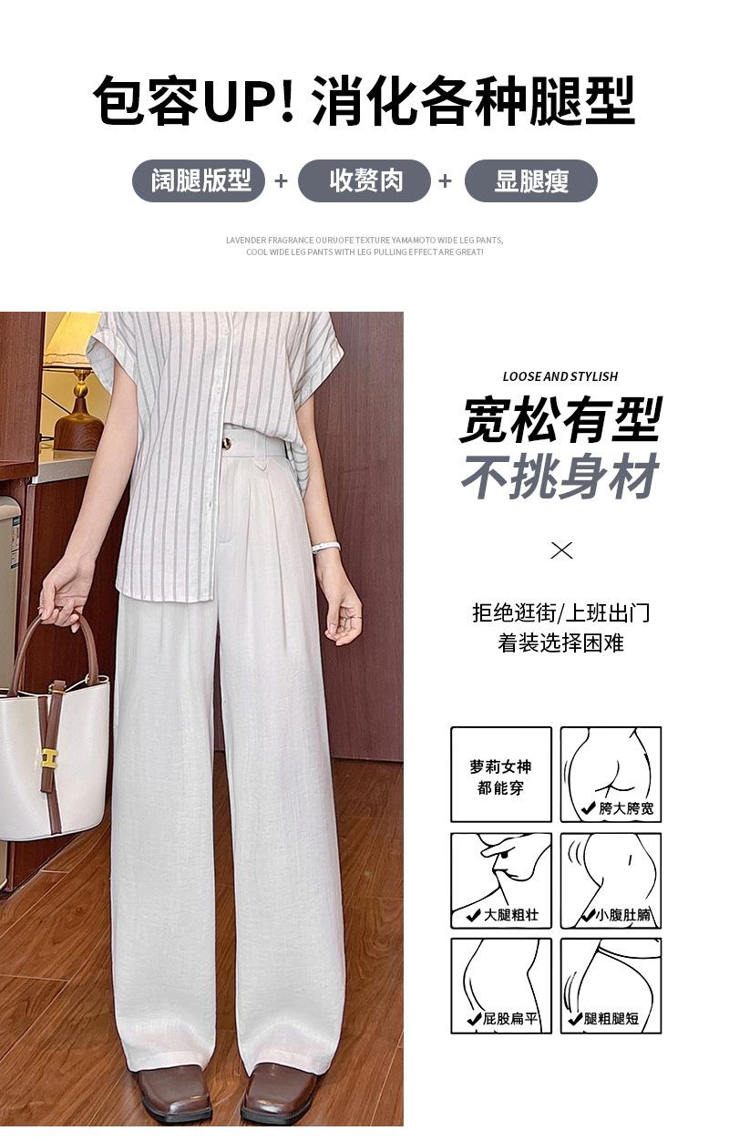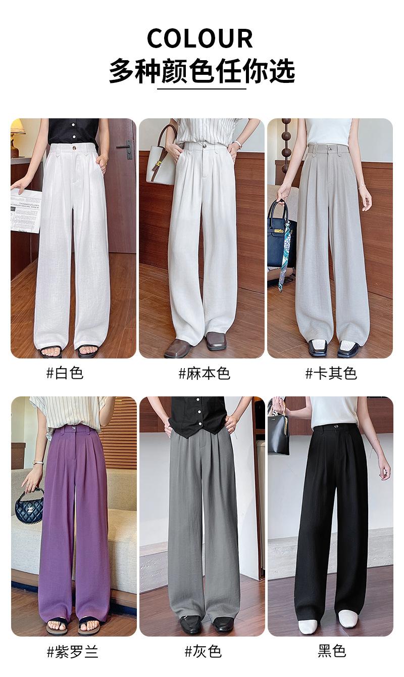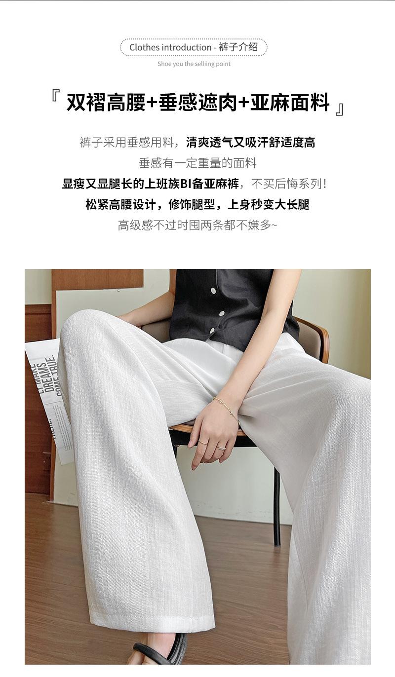 Pantalones de Lino para Mujer Verano 2025 Nuevos Delgados Rectos Adelgazantes Combinan con Todo Casuales Holgados Estilo Perezoso Pantalones de Pierna Ancha