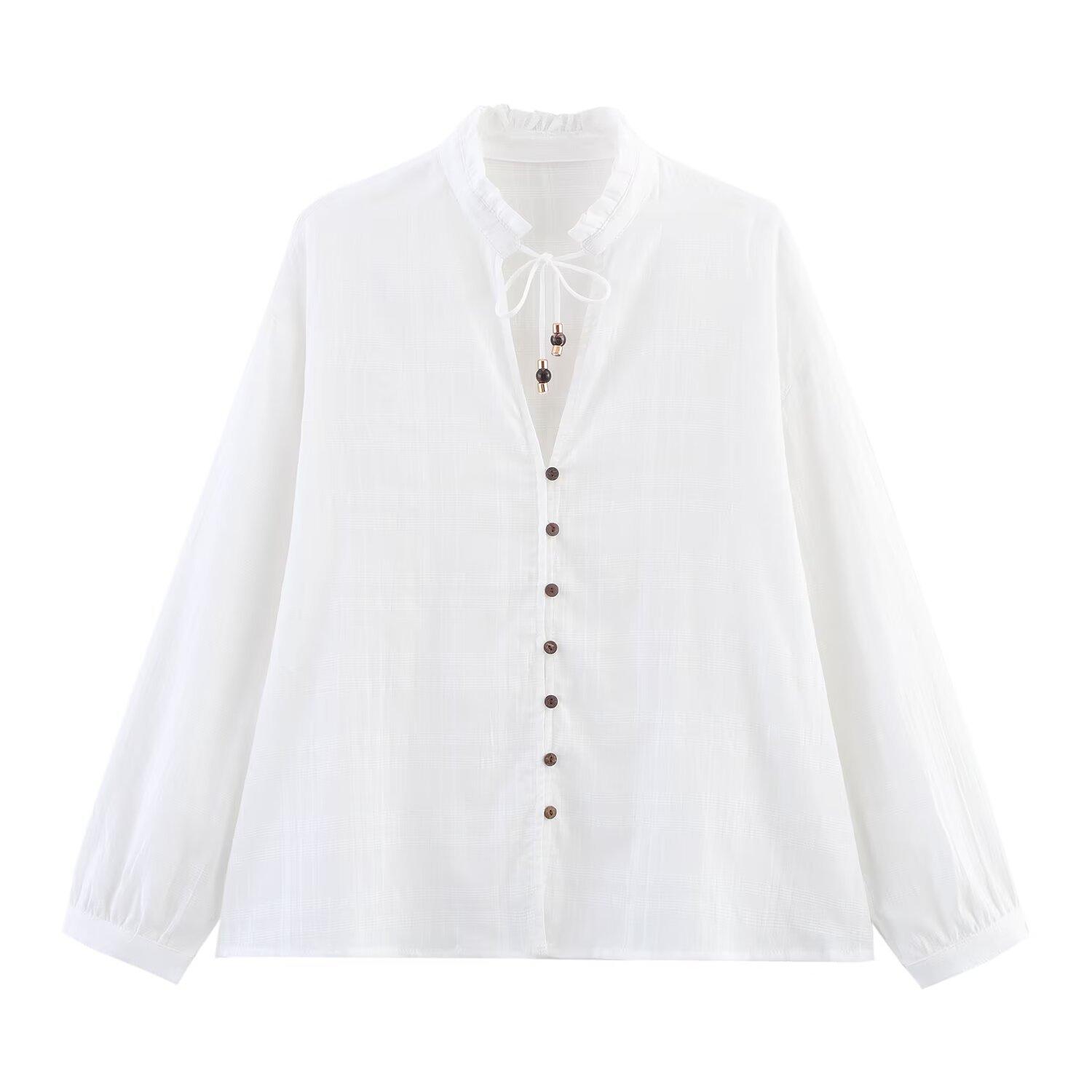 Ropa Europea y Americana Transfronteriza 2025 Primavera Nueva Moda Simple Versátil Cuello Alto Casual Camisa de Manga Larga 2588924