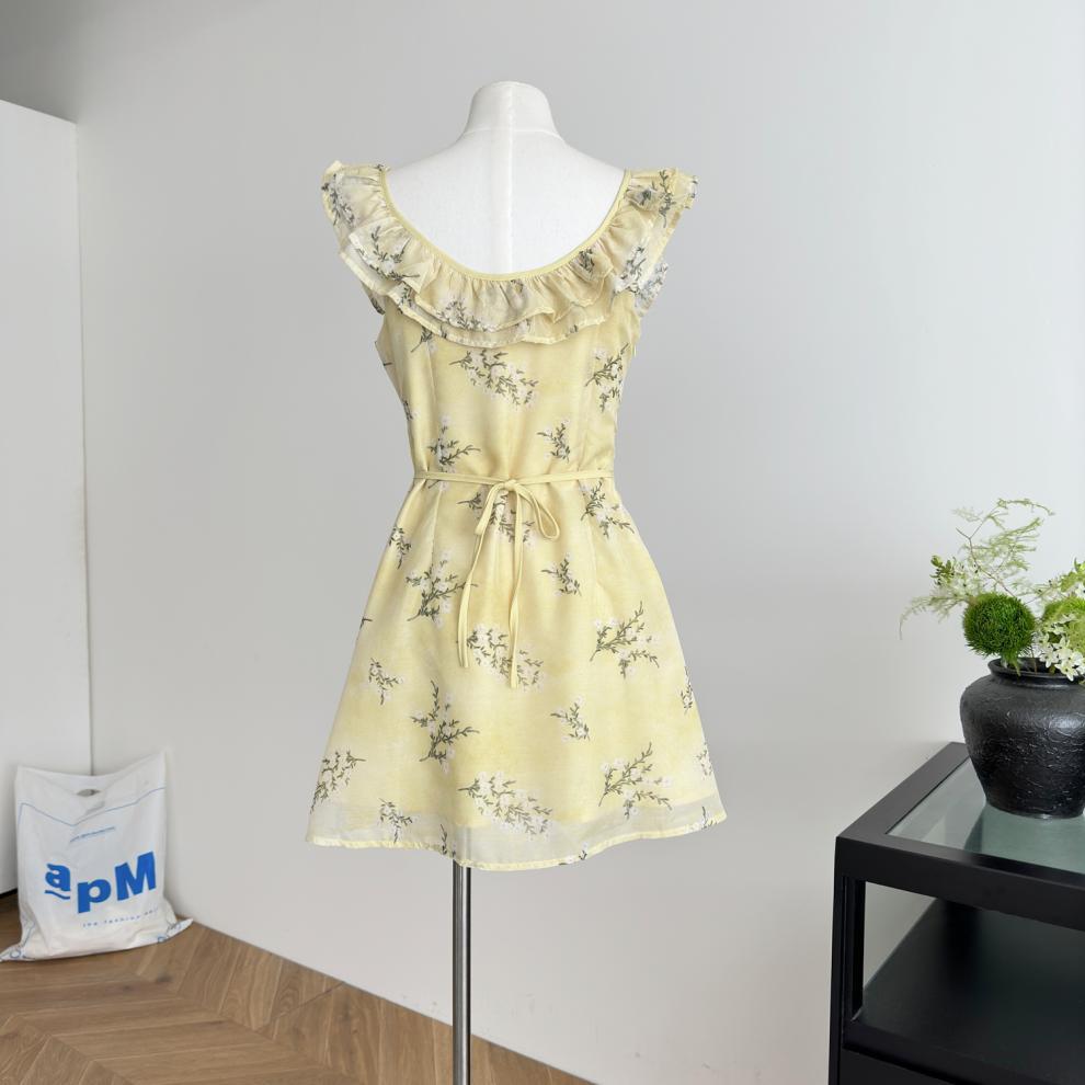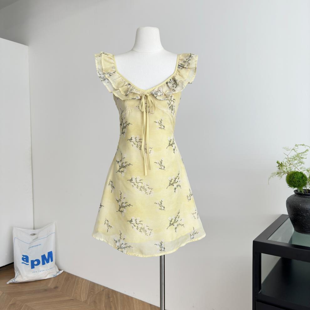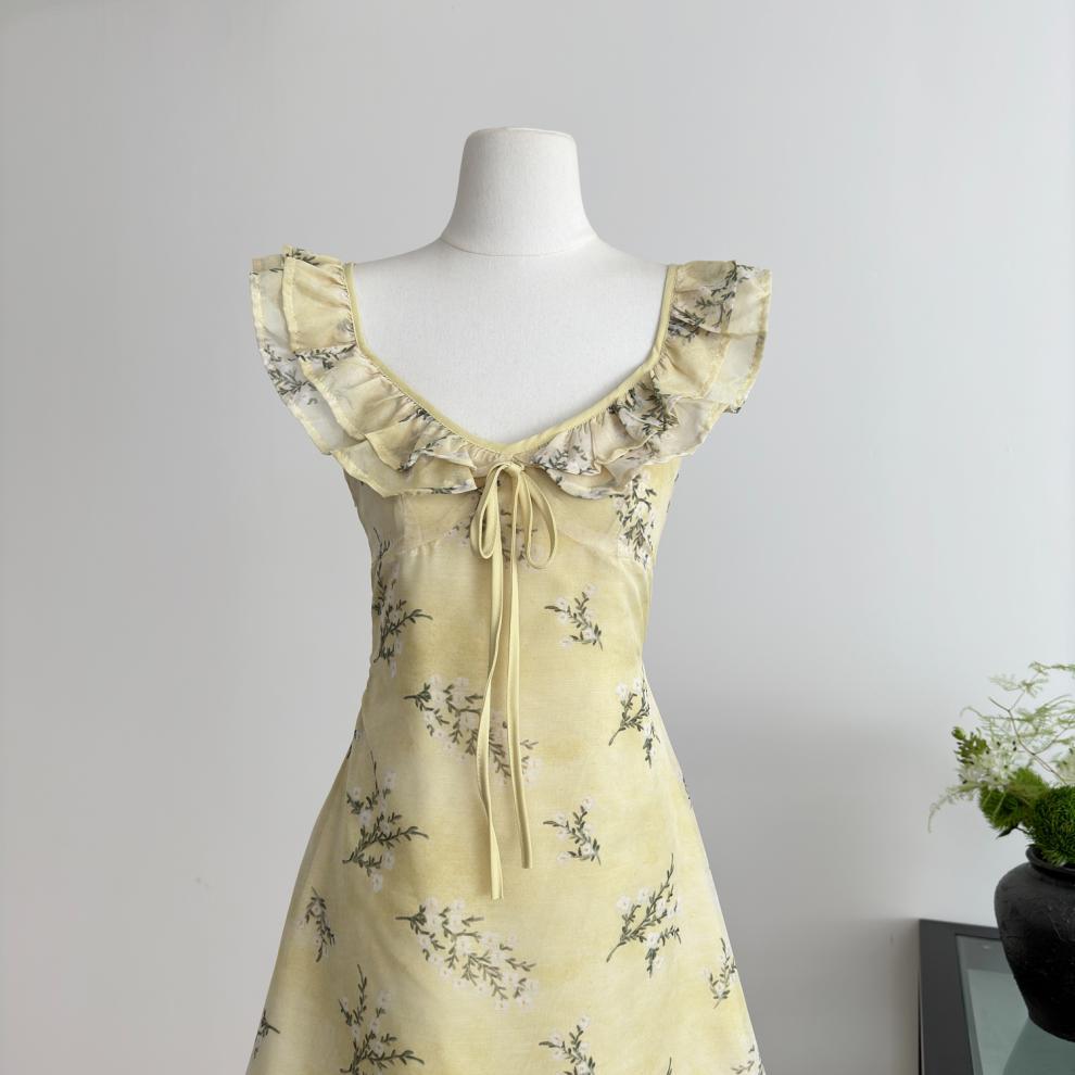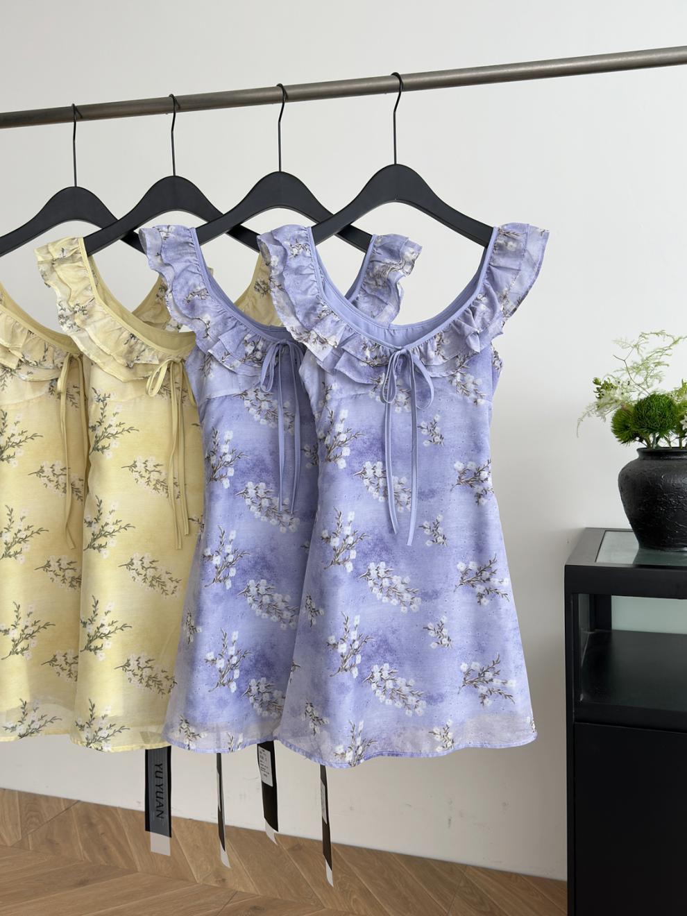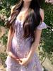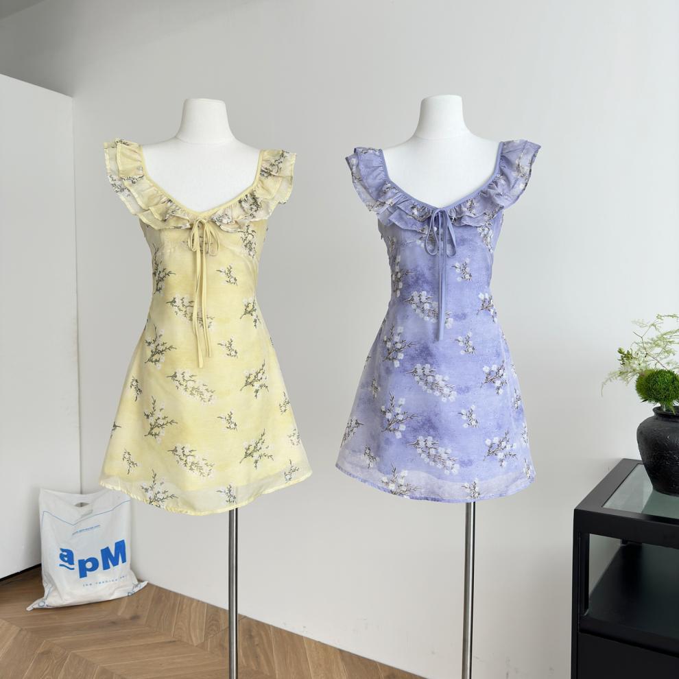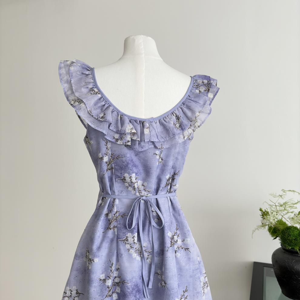 Vestido de Verano de Gasa Floral Francés 2025 Vestido de Verano para Mujer 2025 Nuevo Ajustado Morado Línea A Falda Corta