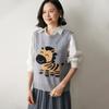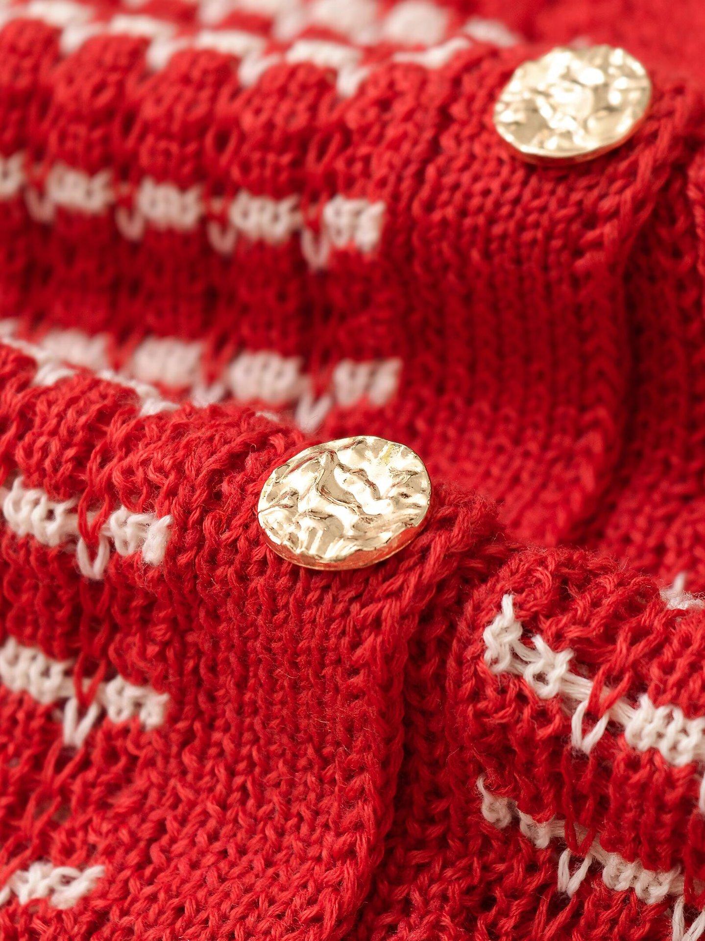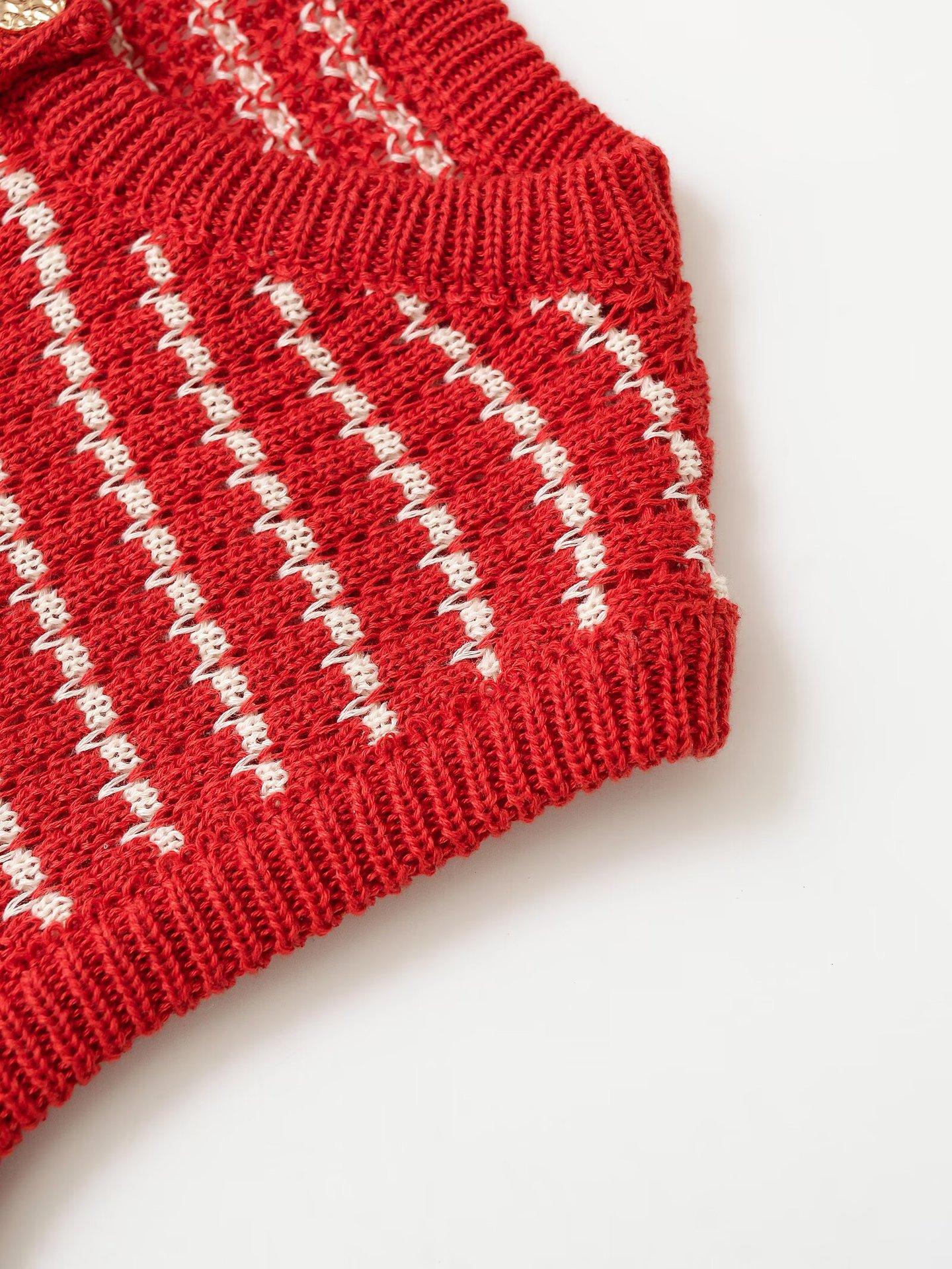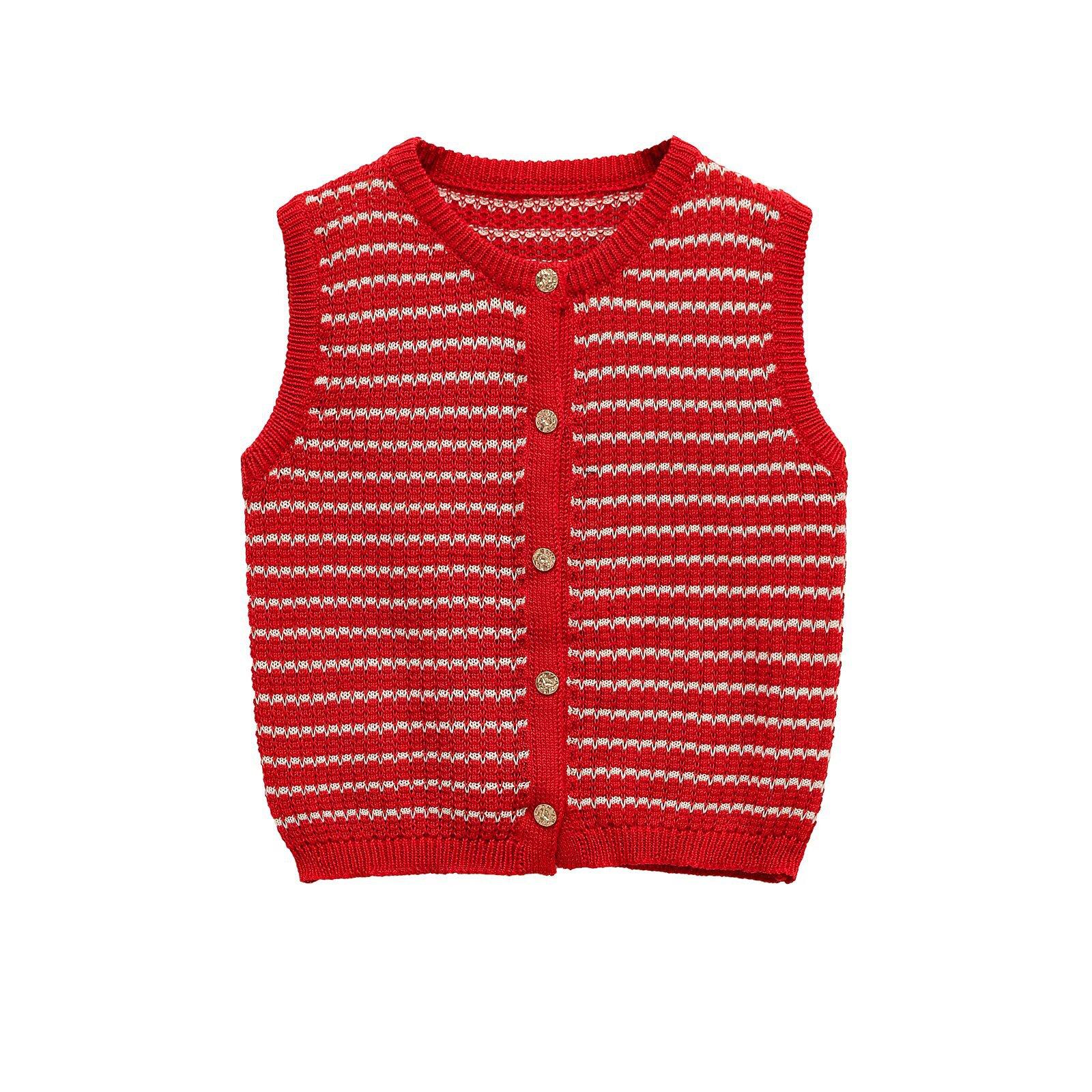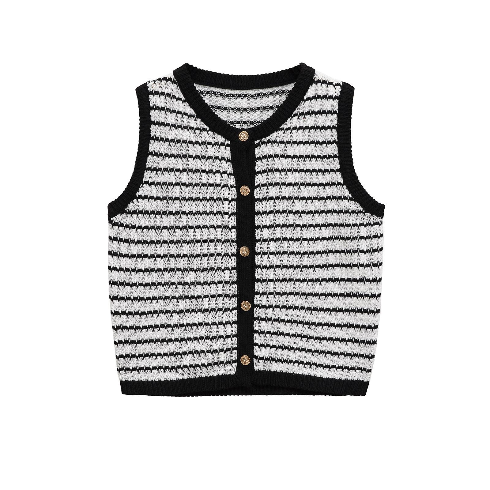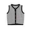 Chaleco Suéter Retro sin Mangas a Rayas para Mujer Tejido con Botones Jacquard Top 5039361