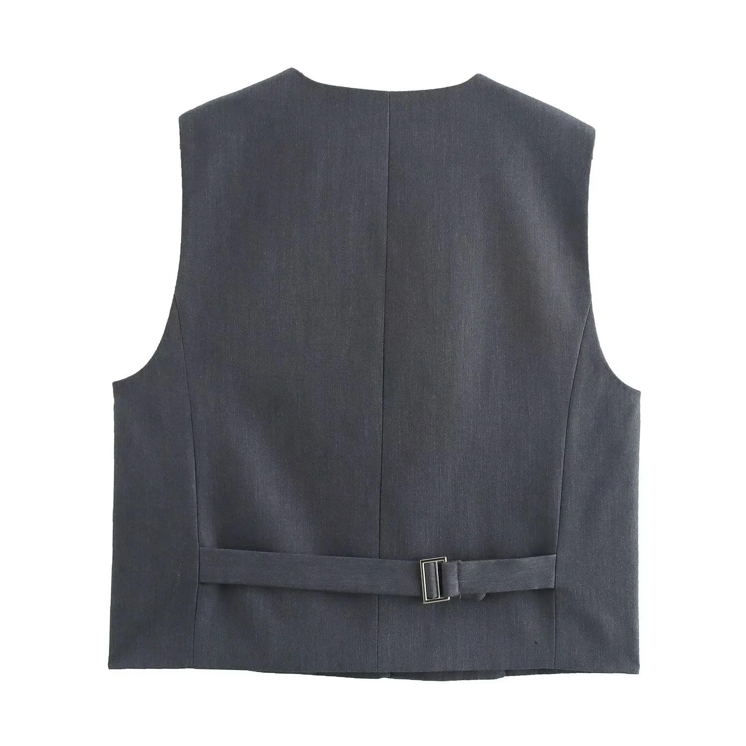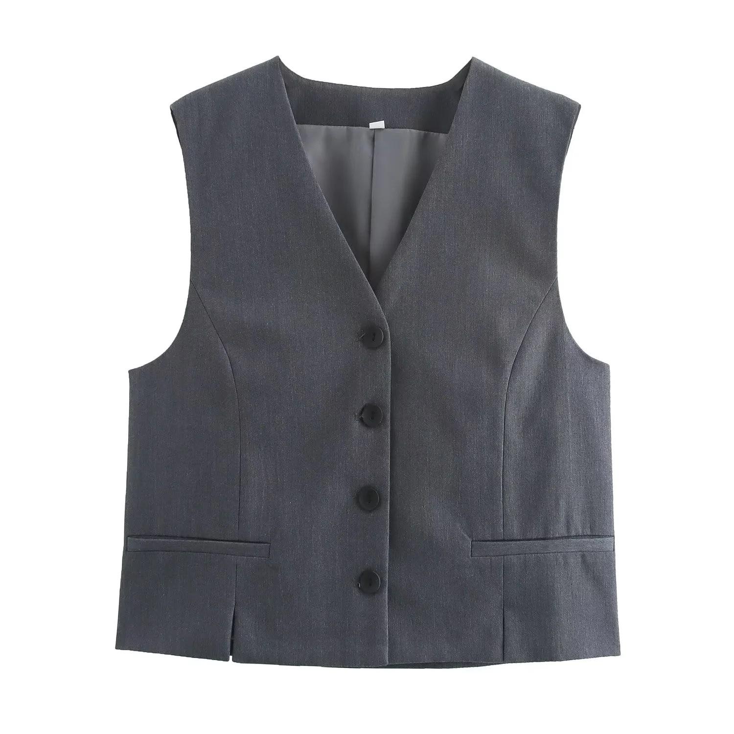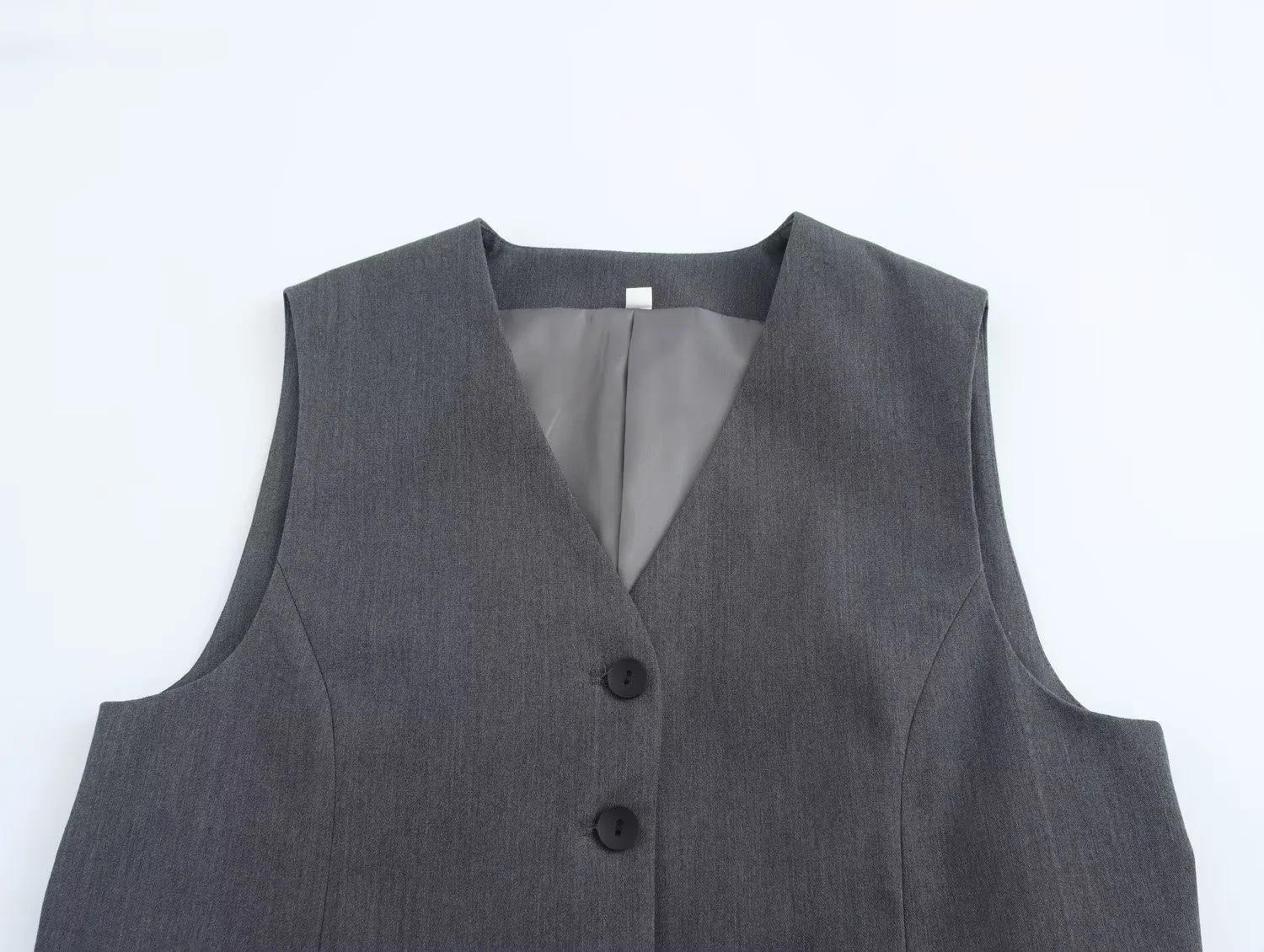 Ropa de Mujer Estilo Europeo y Americano Comercio Exterior Popular Transfronterizo Chaleco con Diseño de Abertura Dobladillo Enrollado Traje de Pantalón Recto