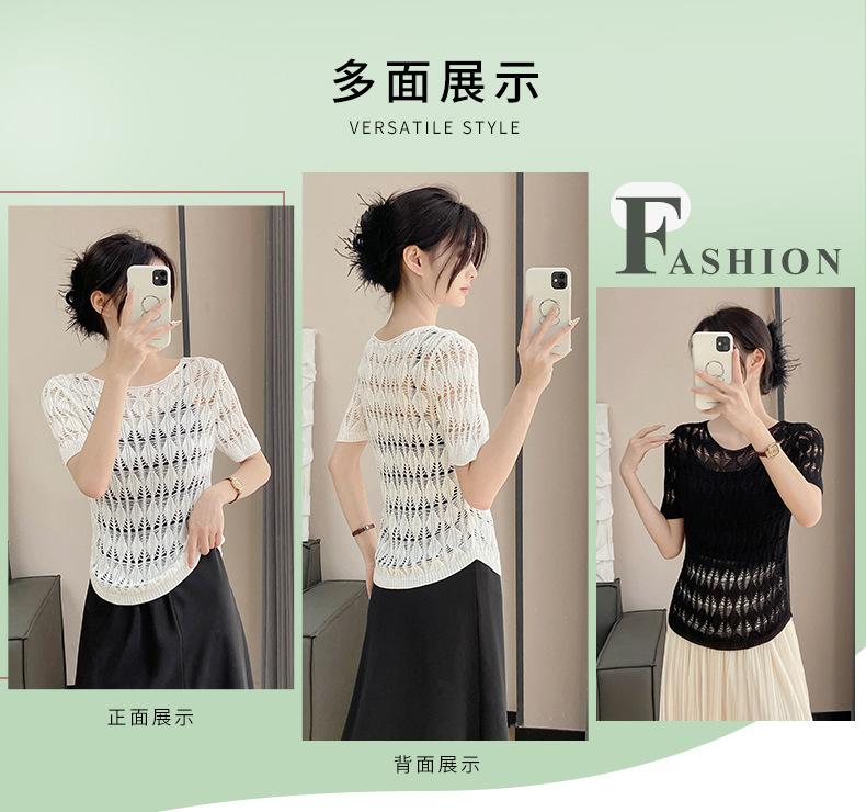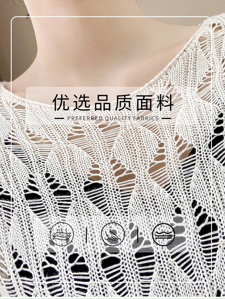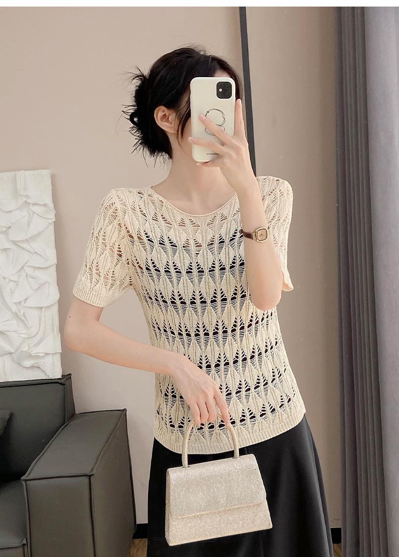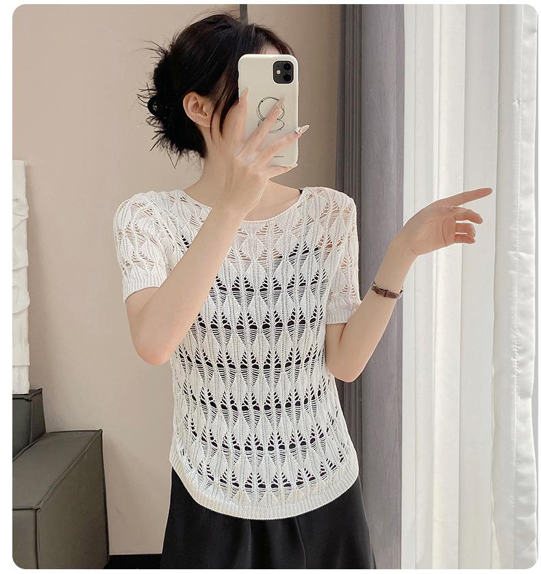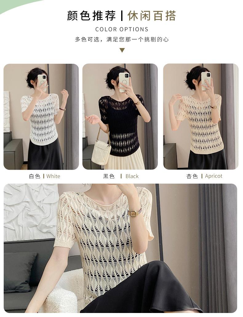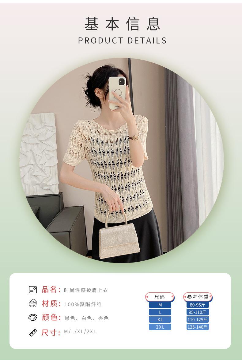 Suéter de Punto Chal Calado para Mujer Casual Sencillo Versátil Tejido Transpirable Ligero Suave Cómodo y Holgado Manga Corta de Punto