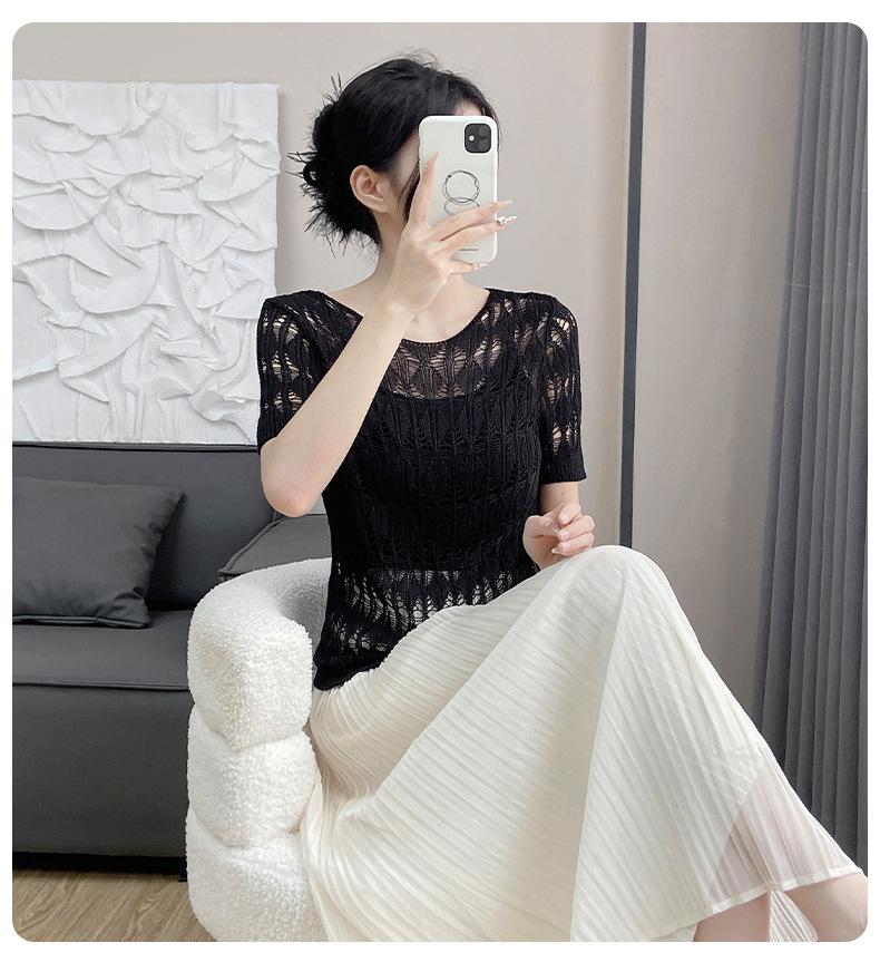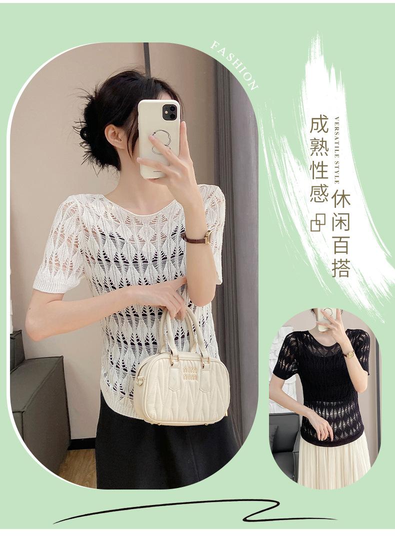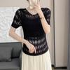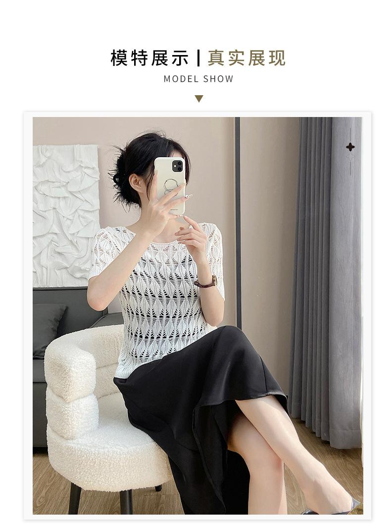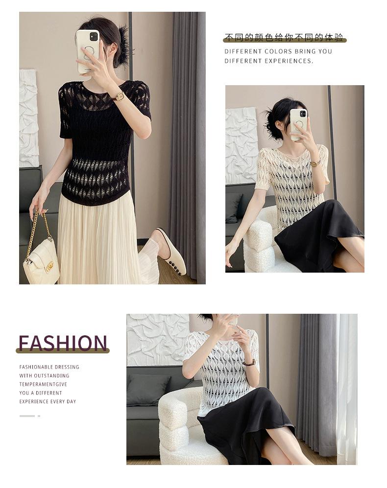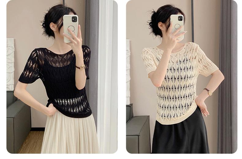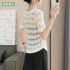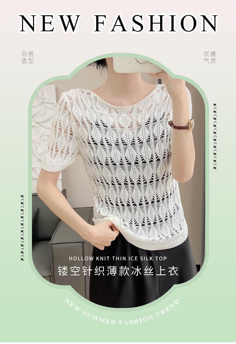 Suéter de Punto Chal Calado para Mujer Casual Sencillo Versátil Tejido Transpirable Ligero Suave Cómodo y Holgado Manga Corta de Punto