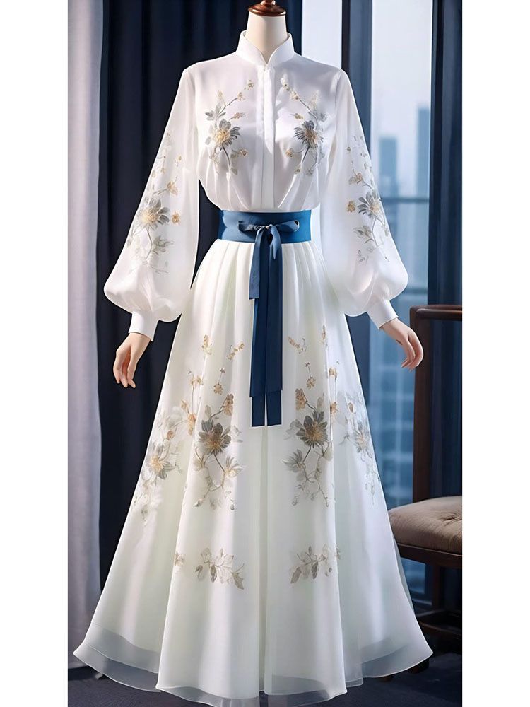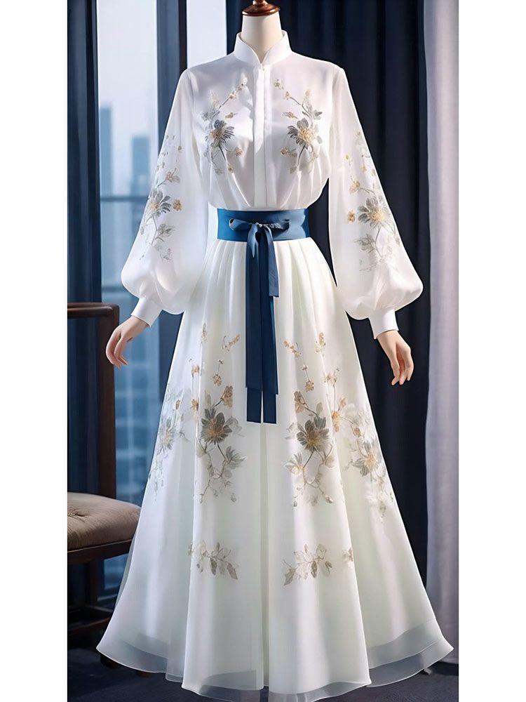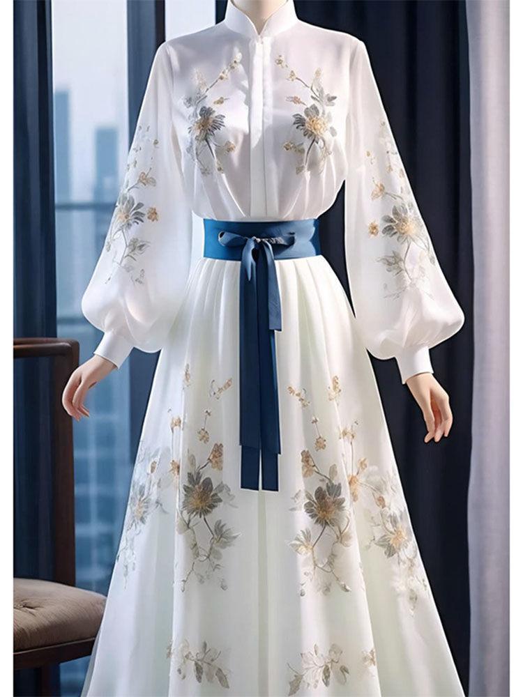 2025 Nuevo Estilo de Verano Elegante Exquisito Elegante Estilo Diosa Vestido Blanco Estampado Pequeño y Hermoso para Mujer
