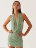 Elegante Vestido Europeo y Americano con Cuello en V Estampado Halter para Mujer Verano 2025 Nuevo Estilo Tubo de Cuentas Lentejuelado Falda Slim