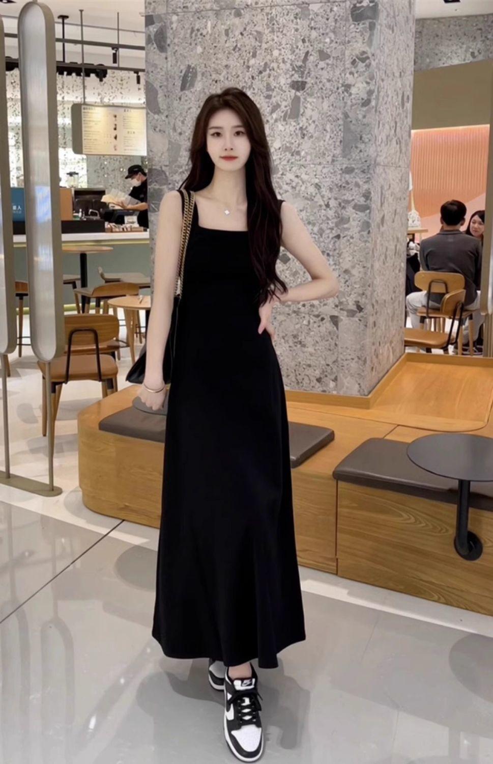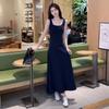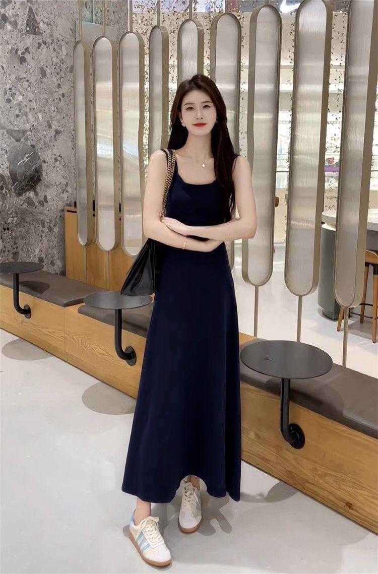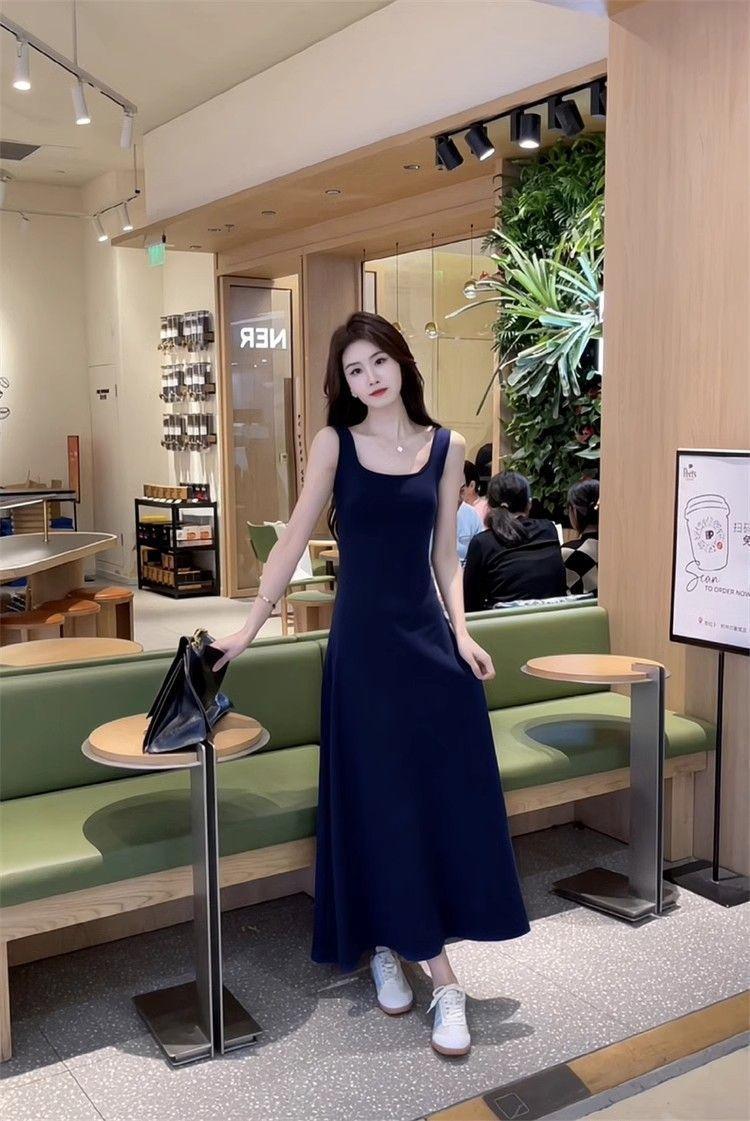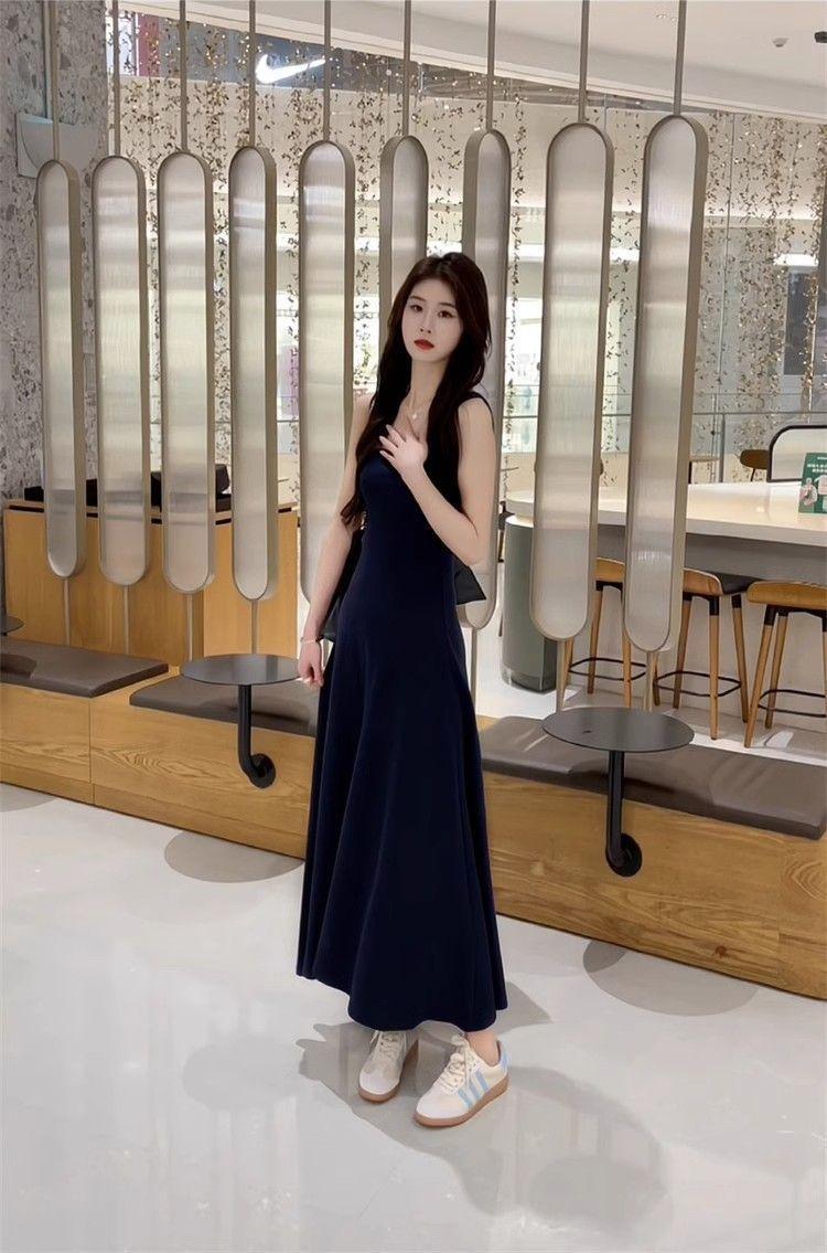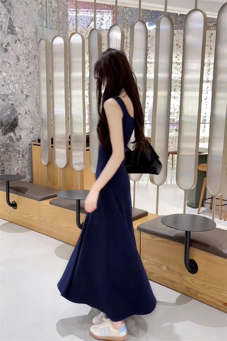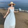 Vestido de Tirantes Azul sin Mangas para Mujer Verano 2025 Nuevo Vacaciones Junto al Mar Elegante de Alta Gama Falda Larga