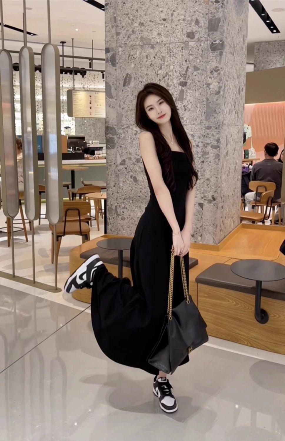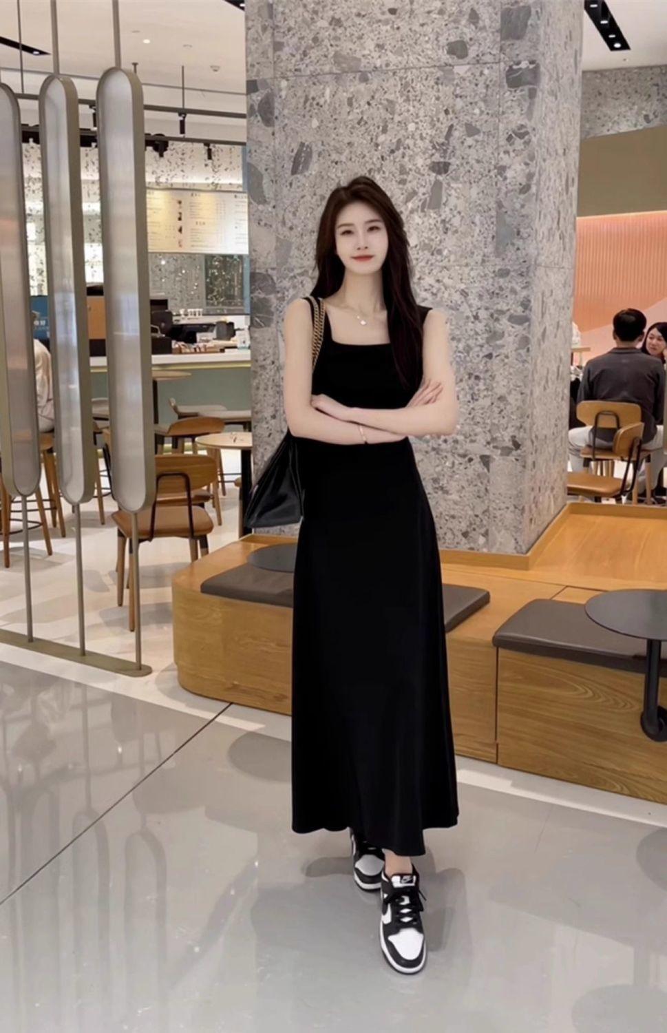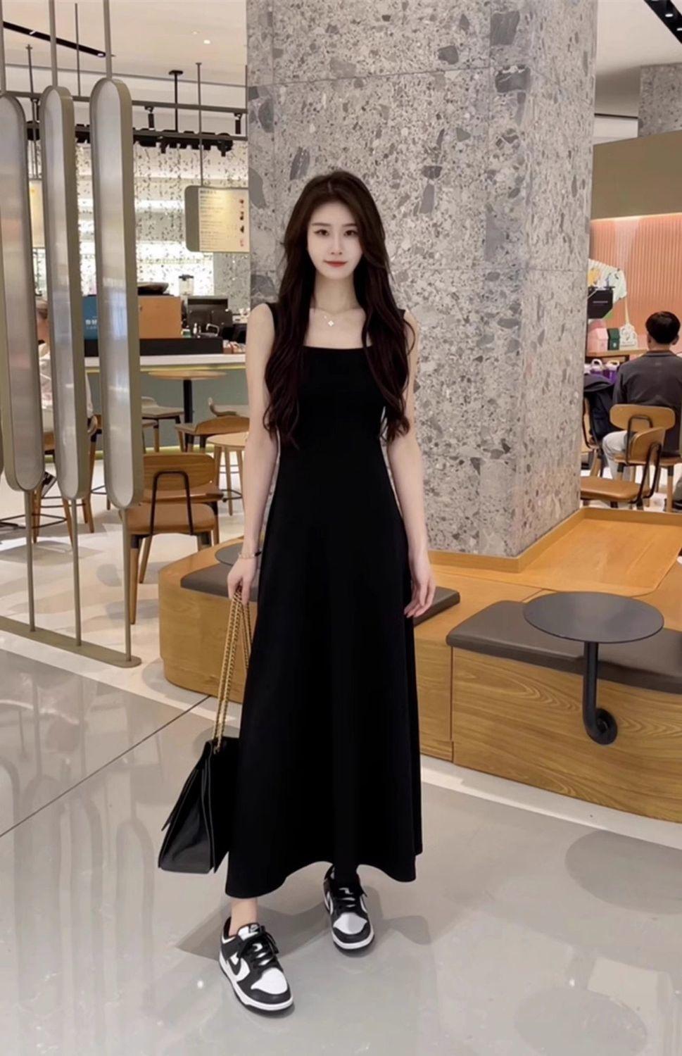 Vestido de Tirantes Azul sin Mangas para Mujer Verano 2025 Nuevo Vacaciones Junto al Mar Elegante de Alta Gama Falda Larga