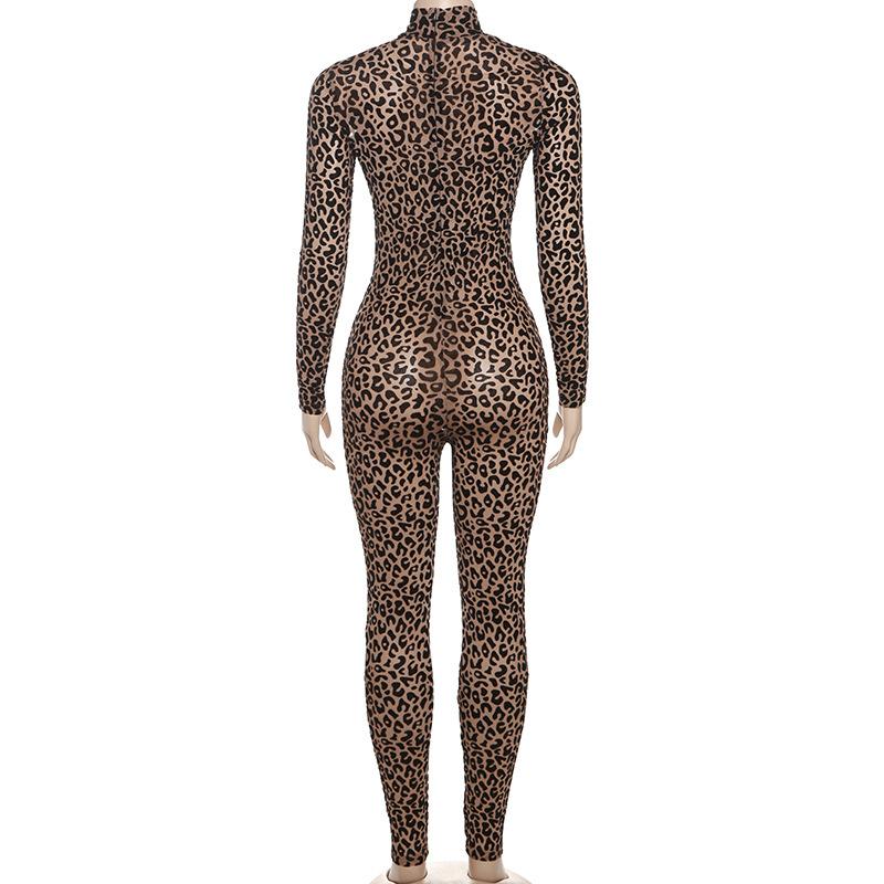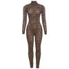 Mono de manga larga ajustado de talle alto con estampado de leopardo sexy de moda para mujer, estilo europeo y americano transfronterizo, nuevo para el verano 2025