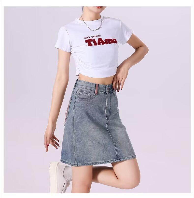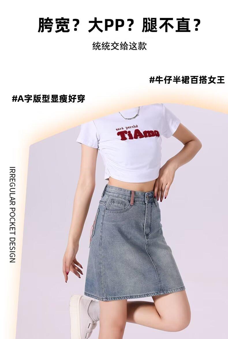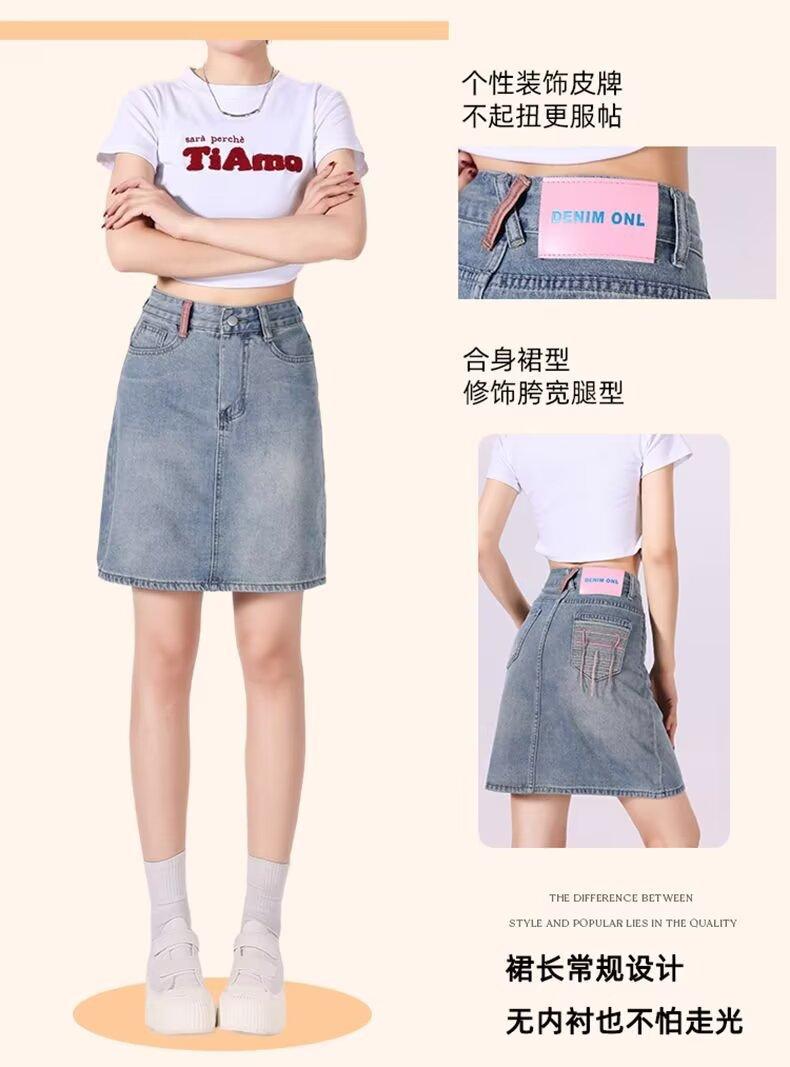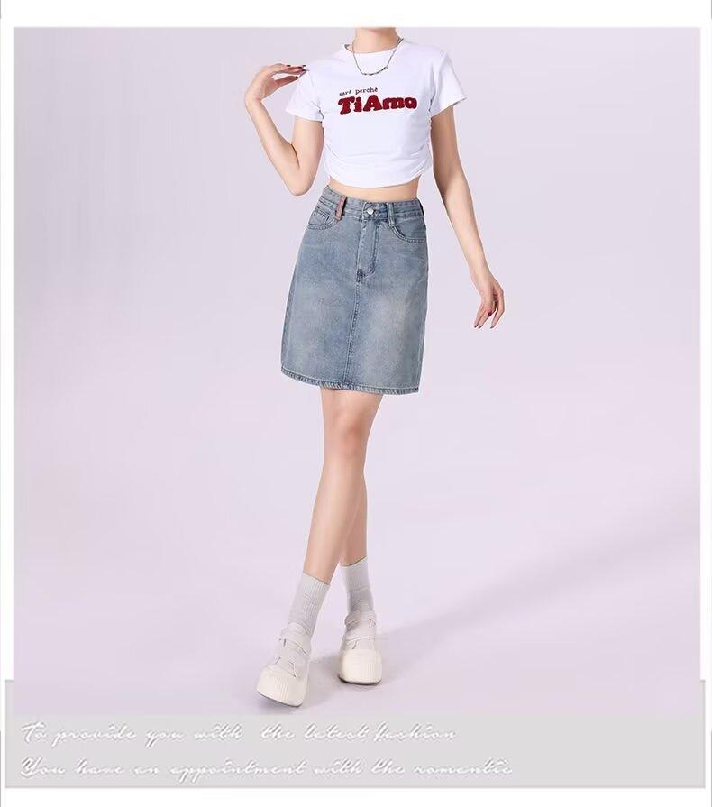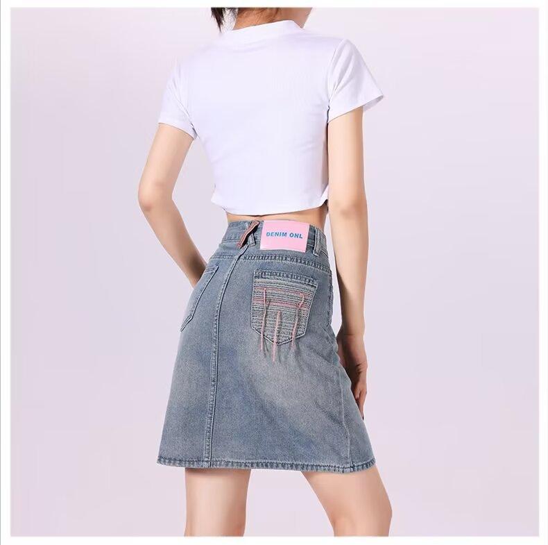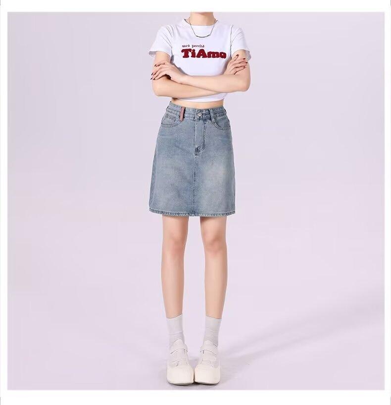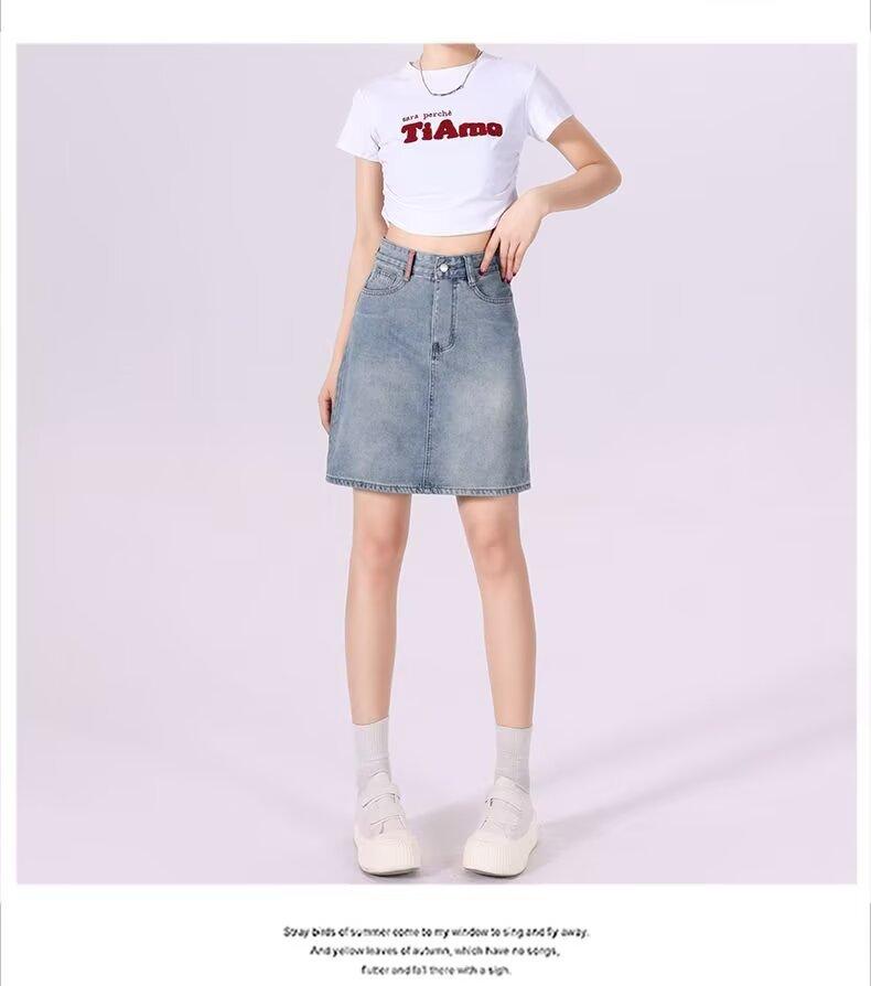 Falda de mezclilla de bolsillo de cintura alta diseñada para mujer, falda petite ajustada que estiliza la figura, minifalda A de chica hot antiexposición