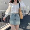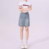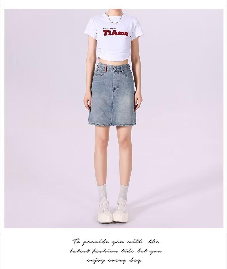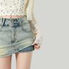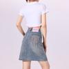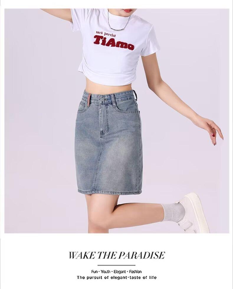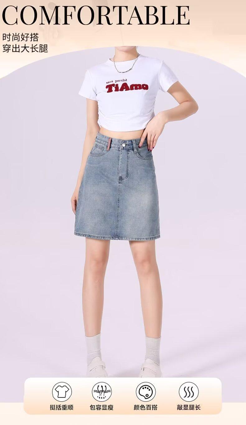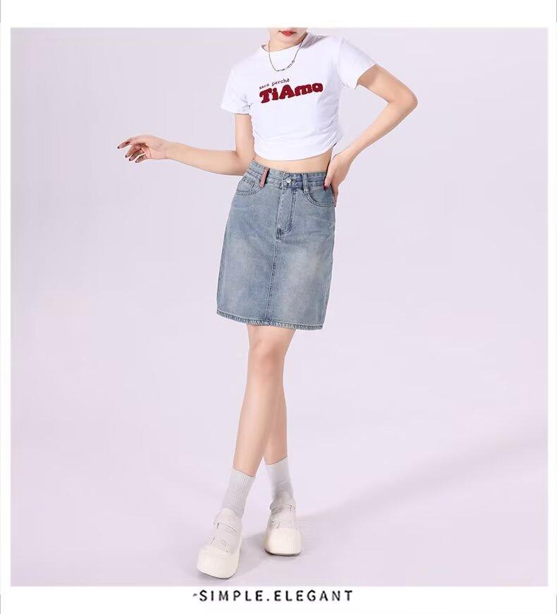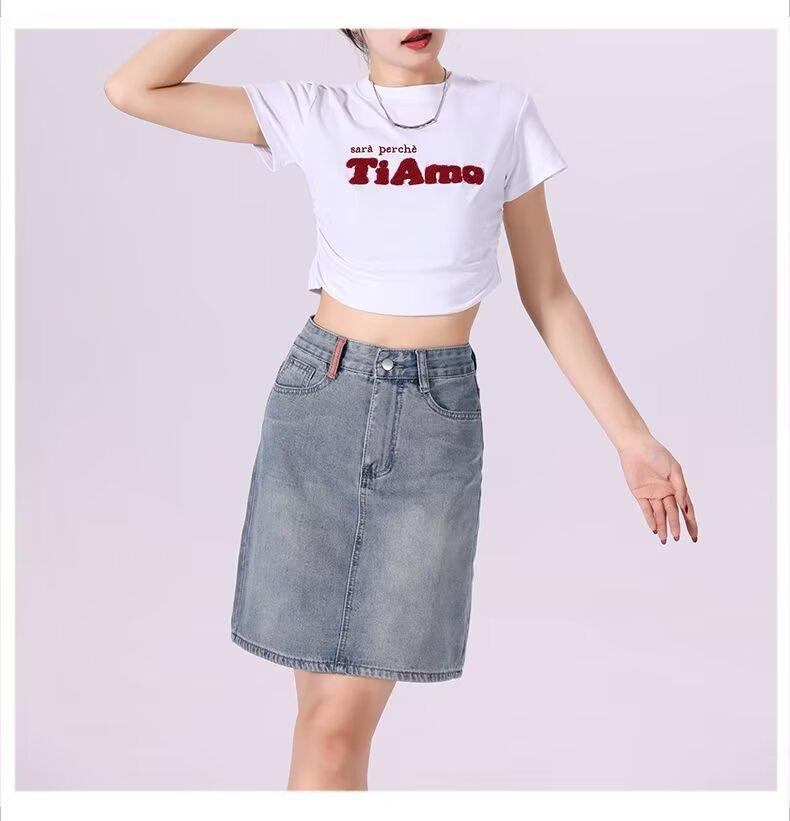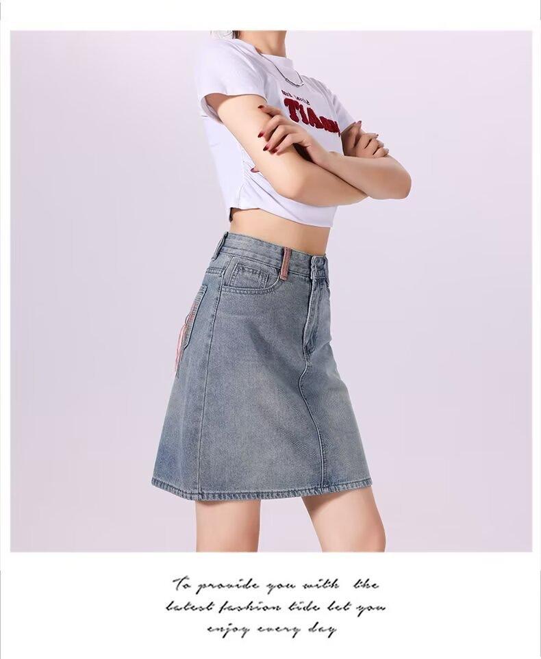 Falda de mezclilla de bolsillo de cintura alta diseñada para mujer, falda petite ajustada que estiliza la figura, minifalda A de chica hot antiexposición