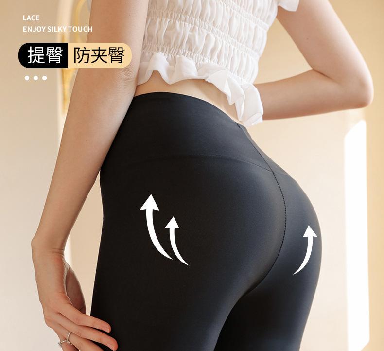 Leggings de Modal para Mujer Anti-Exposición Sin Costuras Verano Delgadas Seda de Hielo Talla Grande Negras No se Enrollan Pantalones de Seguridad