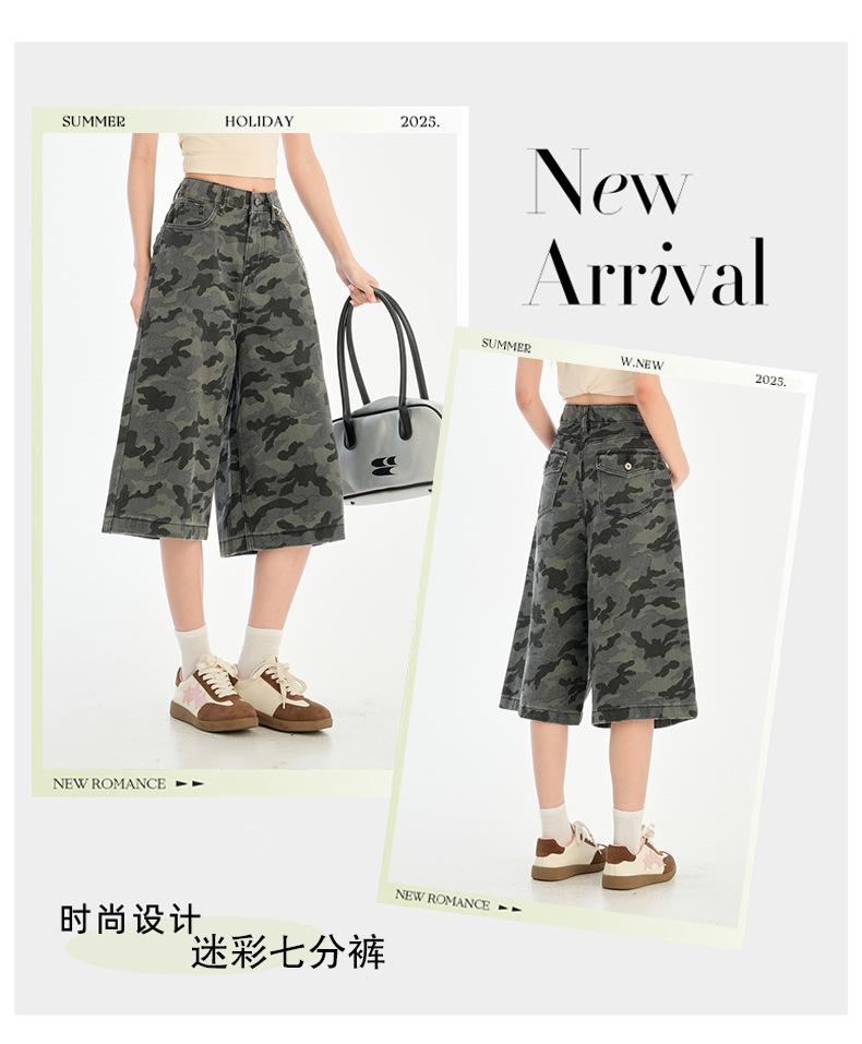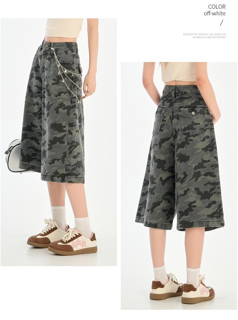 Jeans de camuflaje de calle alta estadounidense de pierna ancha para mujer 2025 Verano Pantalones rectos holgados Adelgazantes Pantalones cortos de chica sexy
