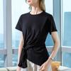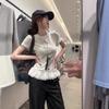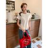 2025 Nueva Llegada Camiseta de Manga Corta con Encaje en el Borde y Costuras para Mujer Diseño de Verano Camisa de Hombro Corto Top de Estudiante