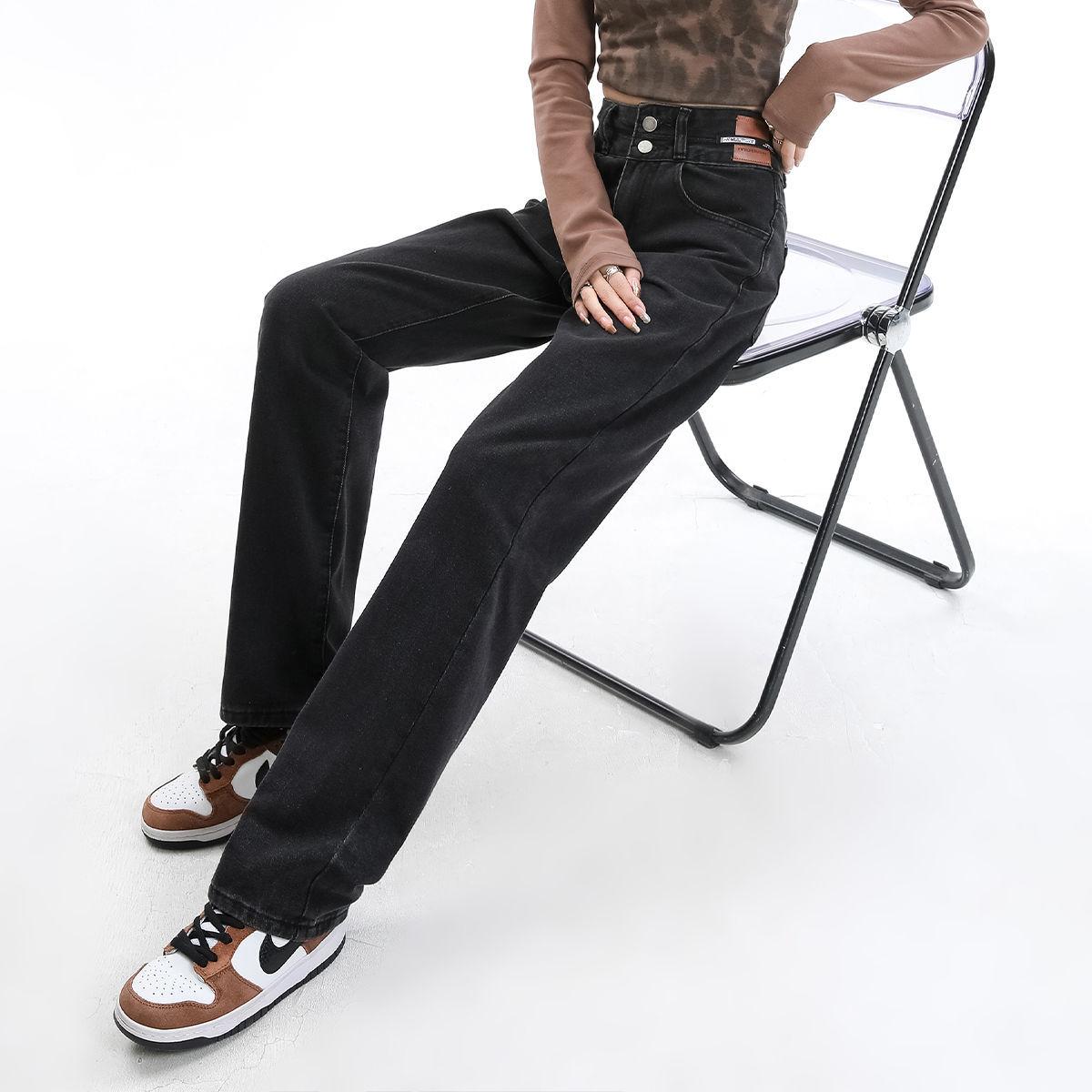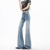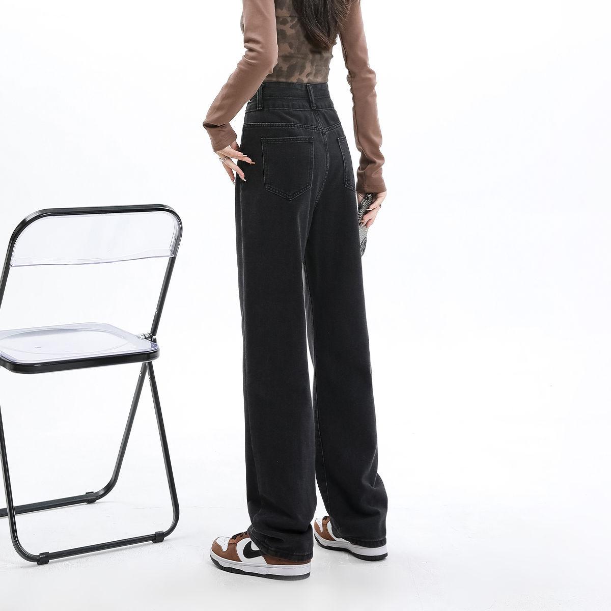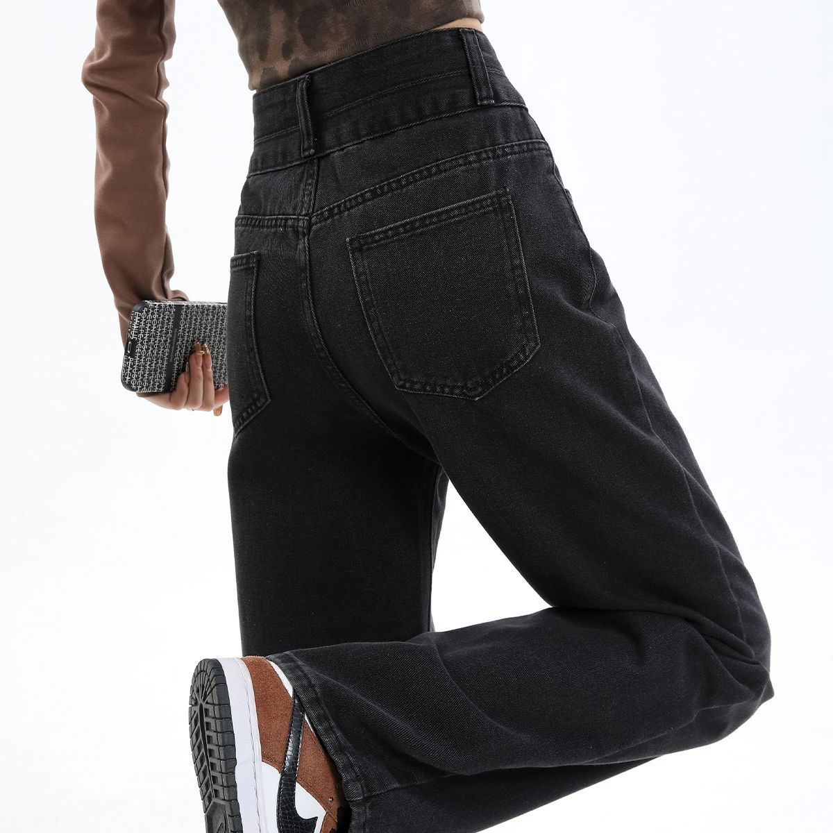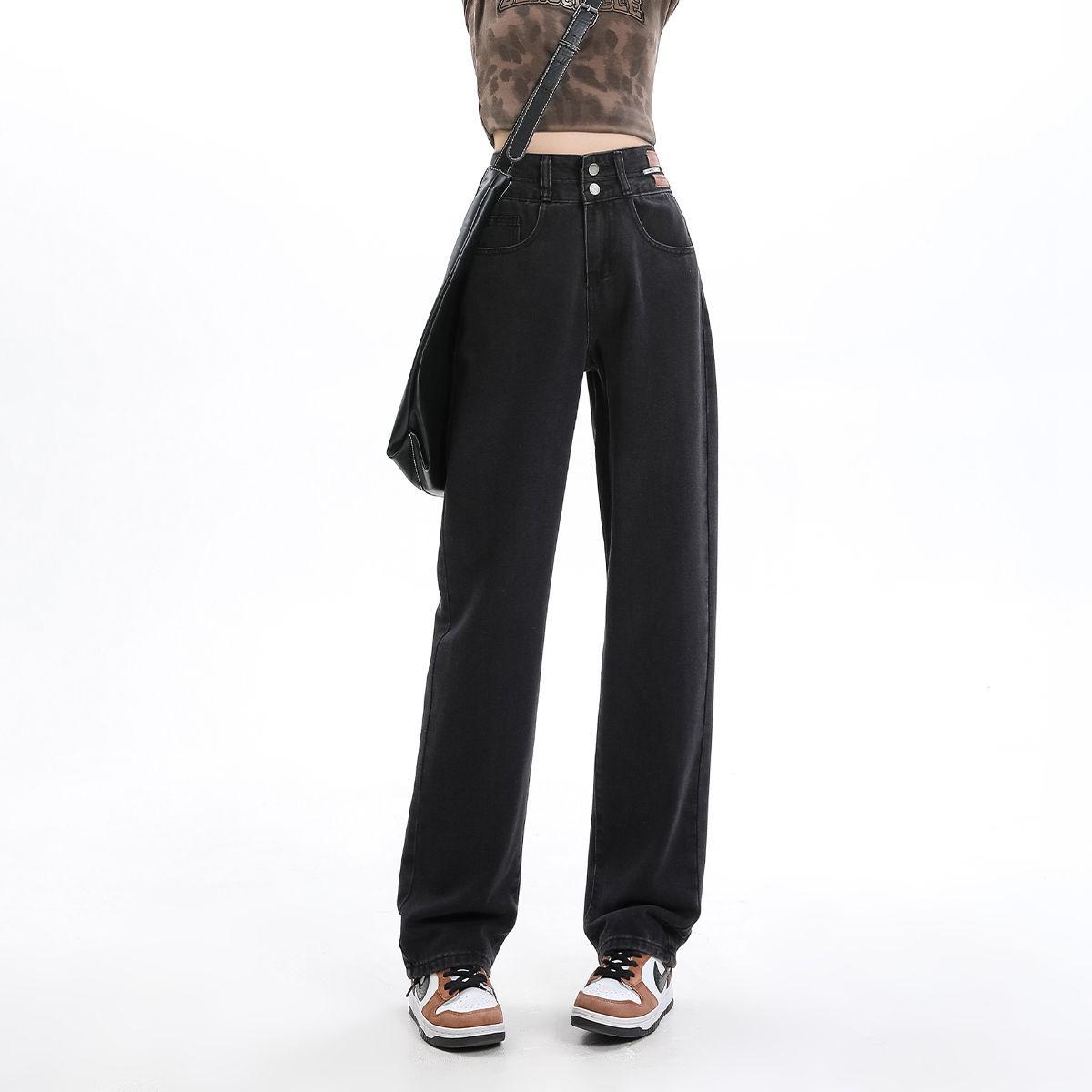 Pantalones Adelgazantes de Cintura Alta y Pierna Ancha Verano Mujer 2025 Retro Azul Drapeado Versátiles Jeans Largos hasta el Piso Dos Botones