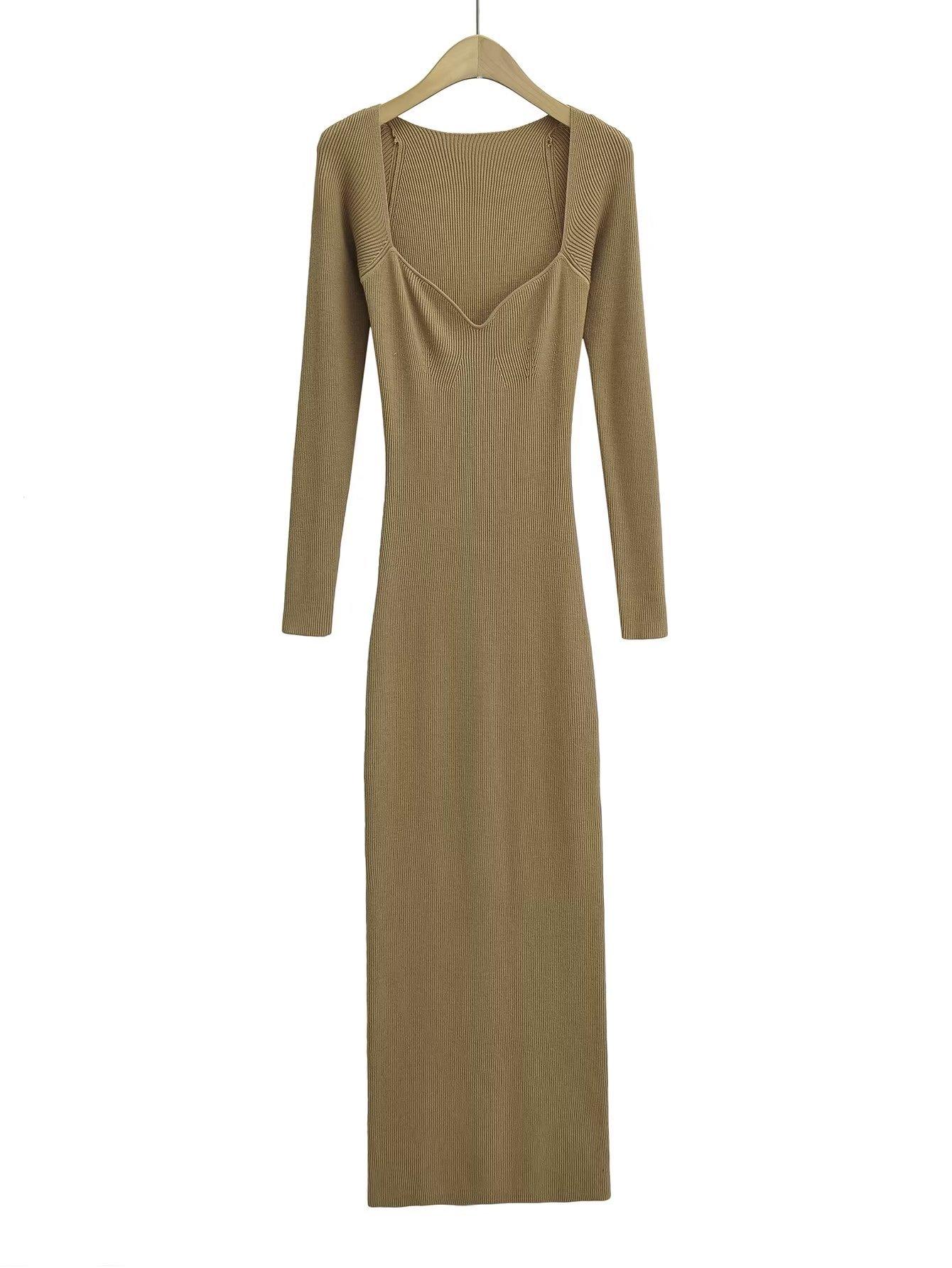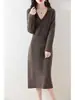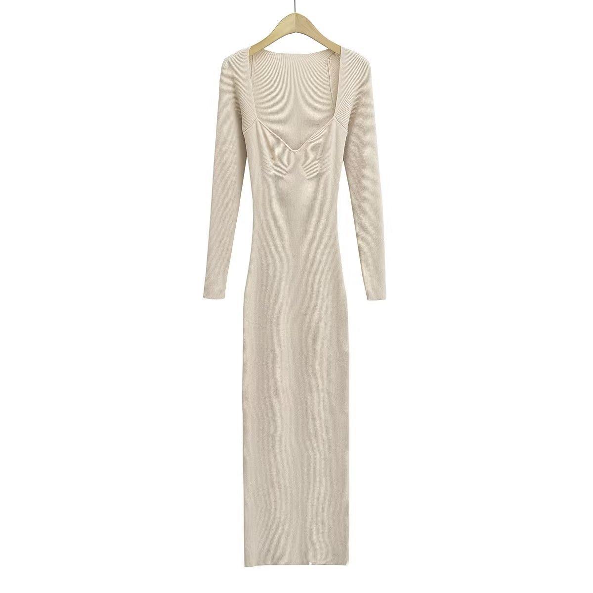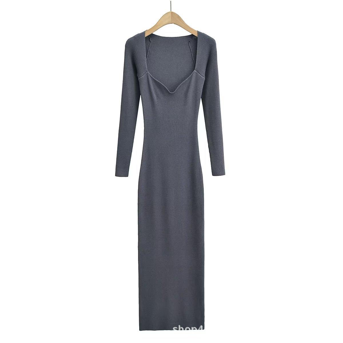 Otoño e invierno 2022 nuevo vestido de punto adelgazante de corte ajustado para mujer vestido recto de manga larga AP22088