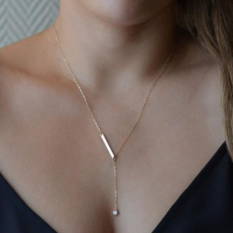 Moda europea y americana moda personalizada metal gota gema colgante collar elegante retro simple cadena clavícula femenina