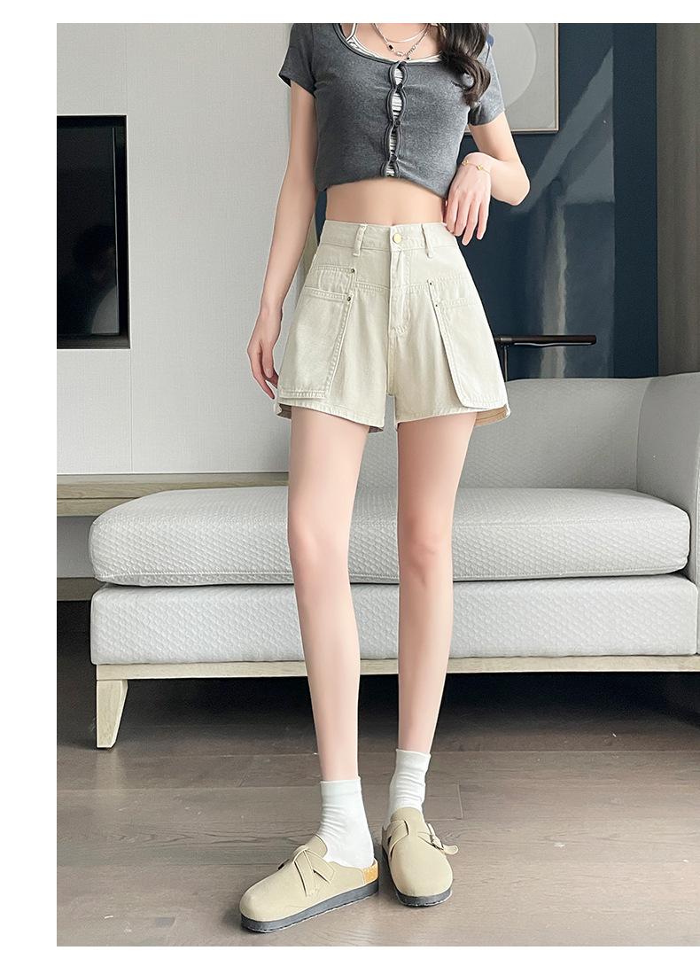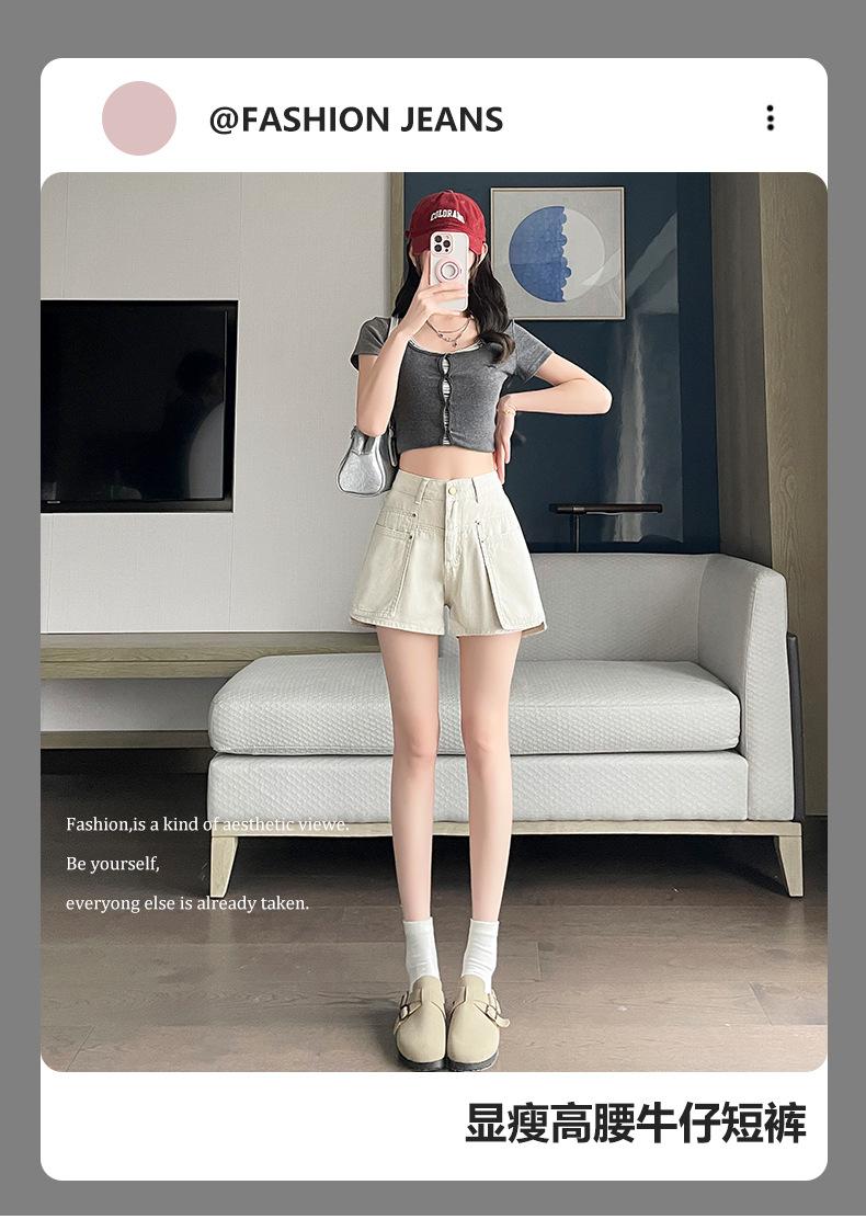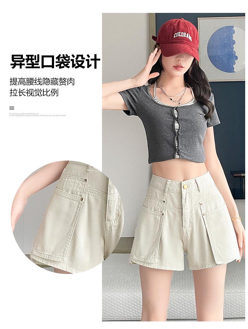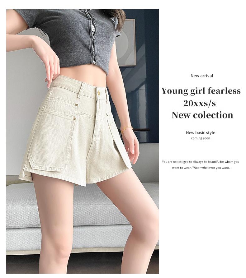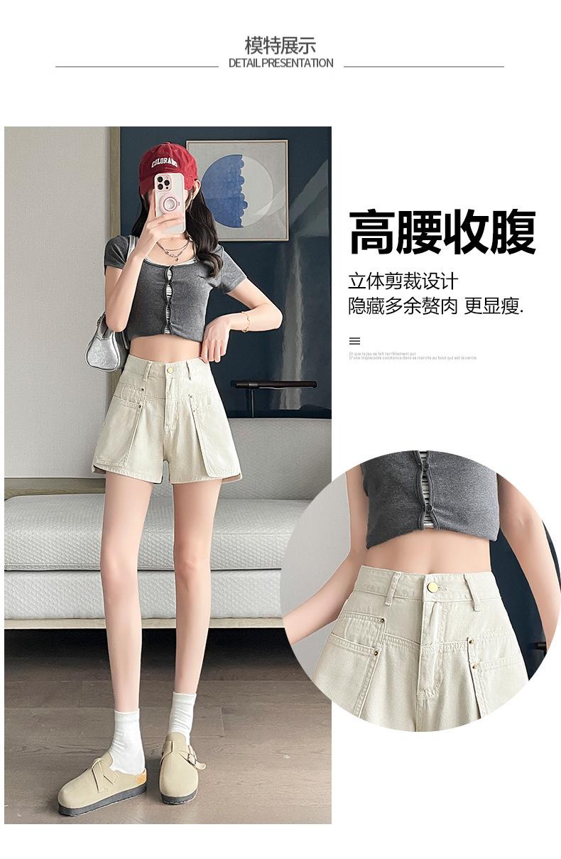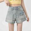 Shorts de mezclilla de cintura alta para mujer 2025 Nuevo Verano Delgados Sueltos Adelgazantes Rectos Parche Chica Caliente Pierna Ancha Pantalones Cortos
