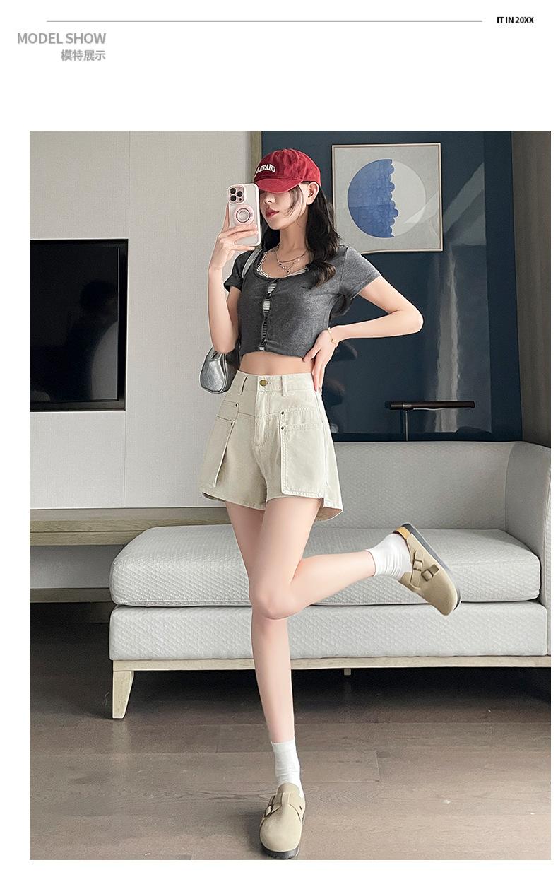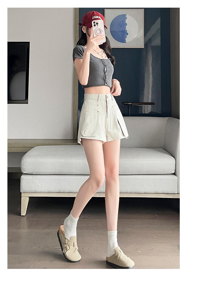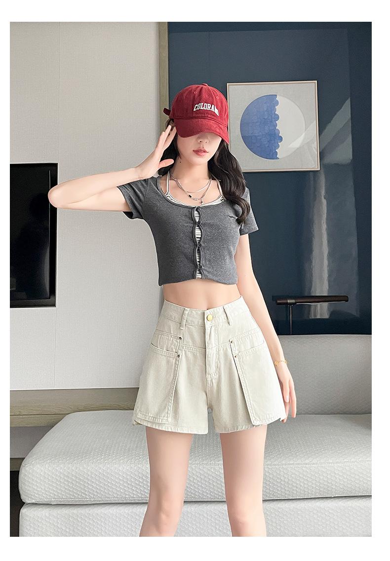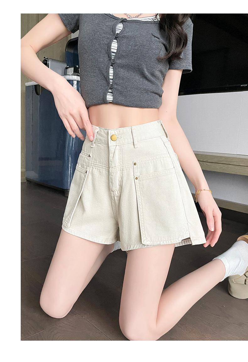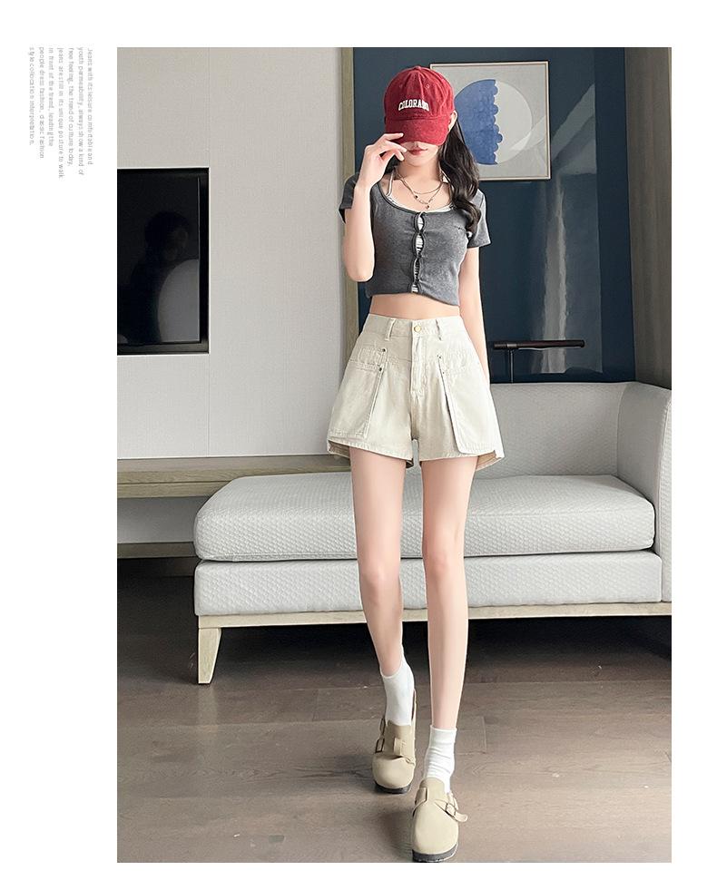 Shorts de mezclilla de cintura alta para mujer 2025 Nuevo Verano Delgados Sueltos Adelgazantes Rectos Parche Chica Caliente Pierna Ancha Pantalones Cortos