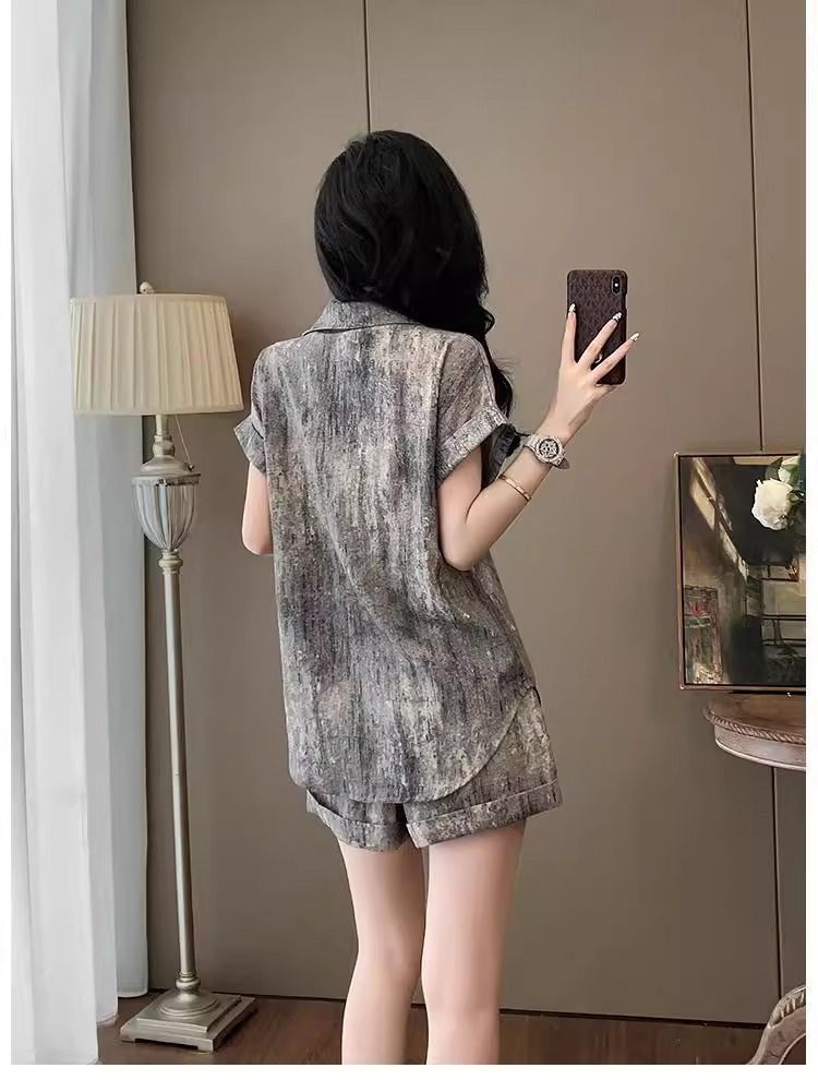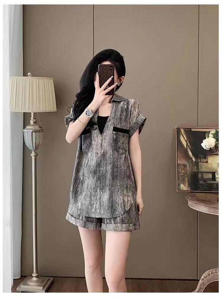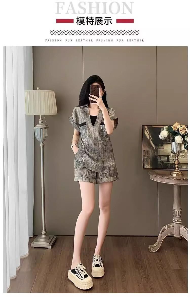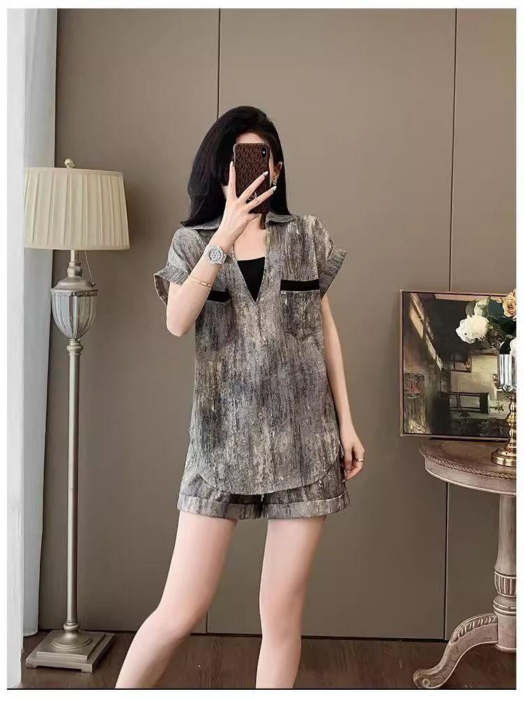 Traje para Mujer 2025 Verano Nuevo Estilo Coreano Diseño Simple Top de Manga Corta Shorts Adelgazantes de Cintura Alta Conjunto de Dos Piezas