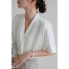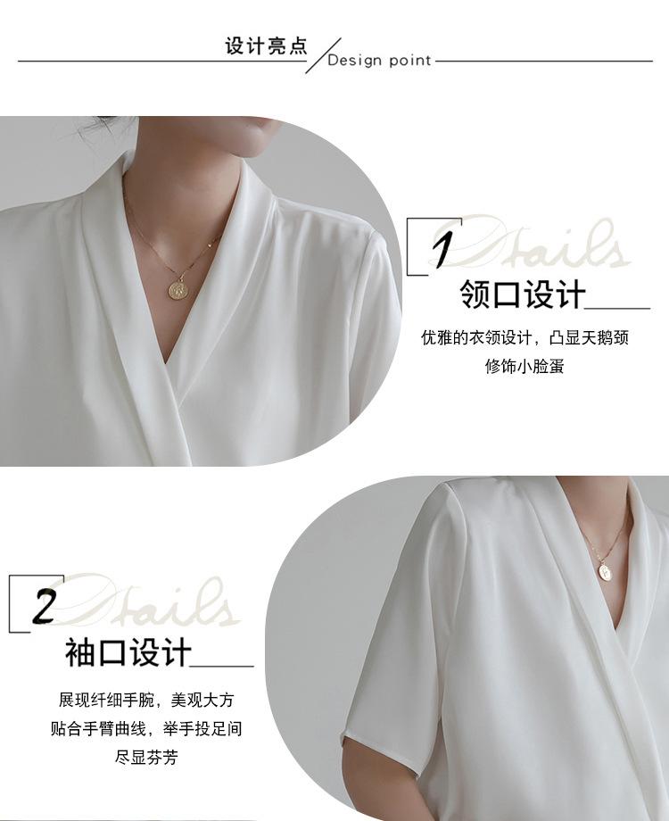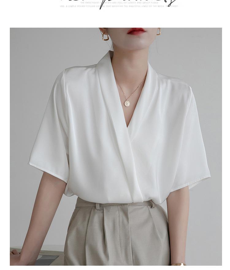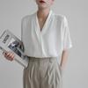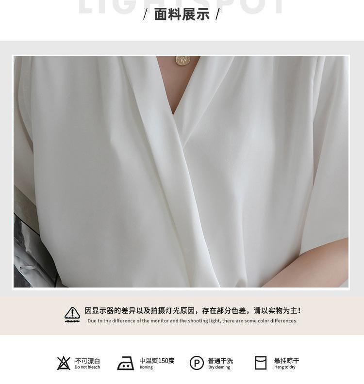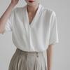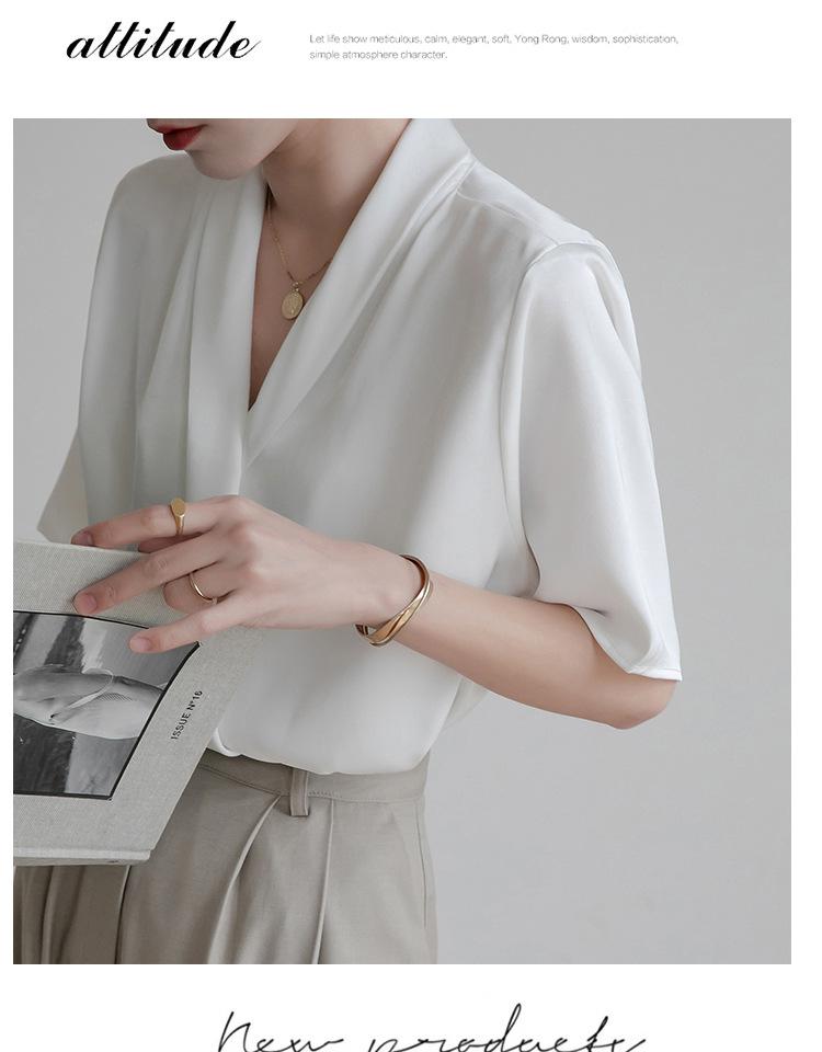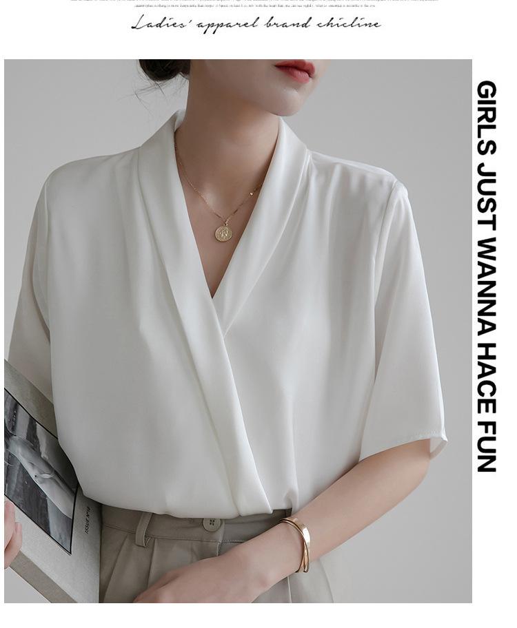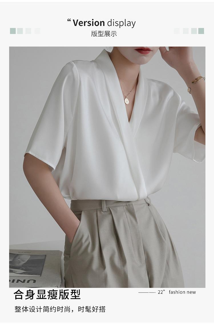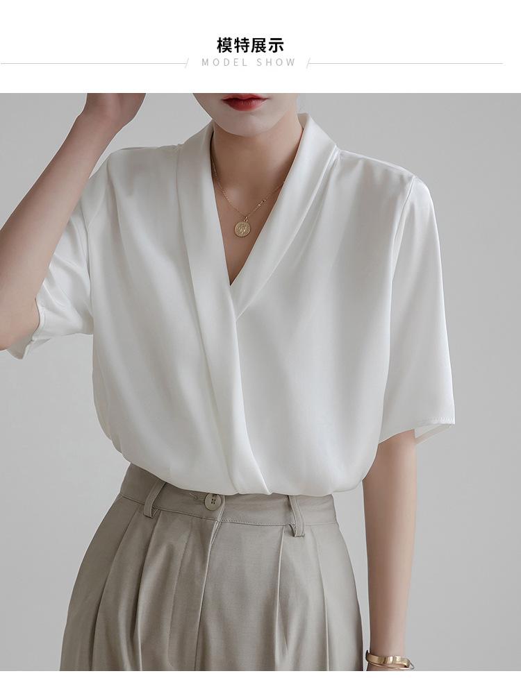 Camisa Blanca de Manga Corta de Verano 2023 para Mujer, Diseño Versátil Suelto de Satén con Sentido del Estilo, Top Nicho con Cuello en V