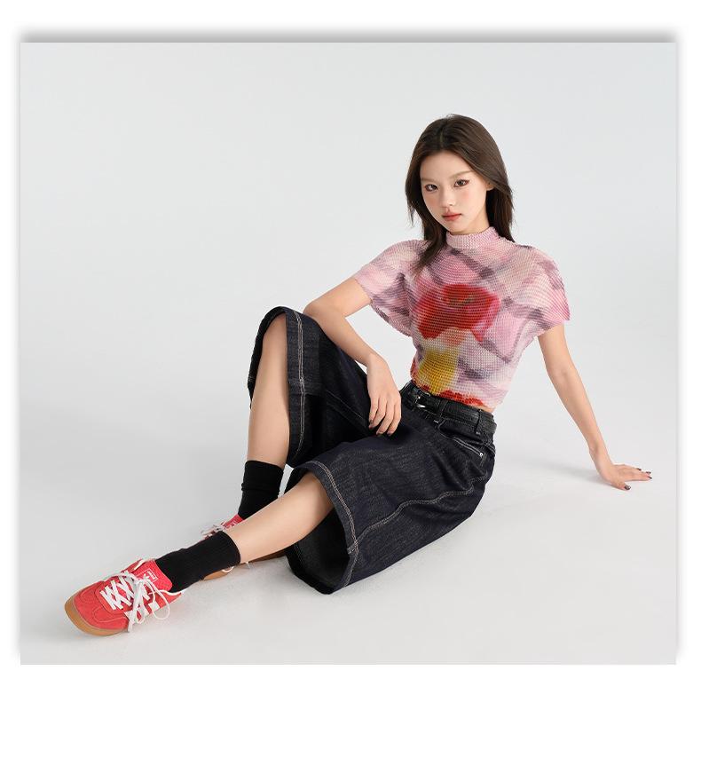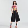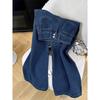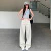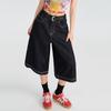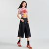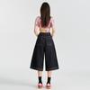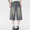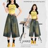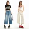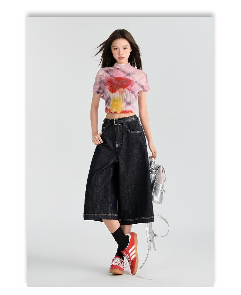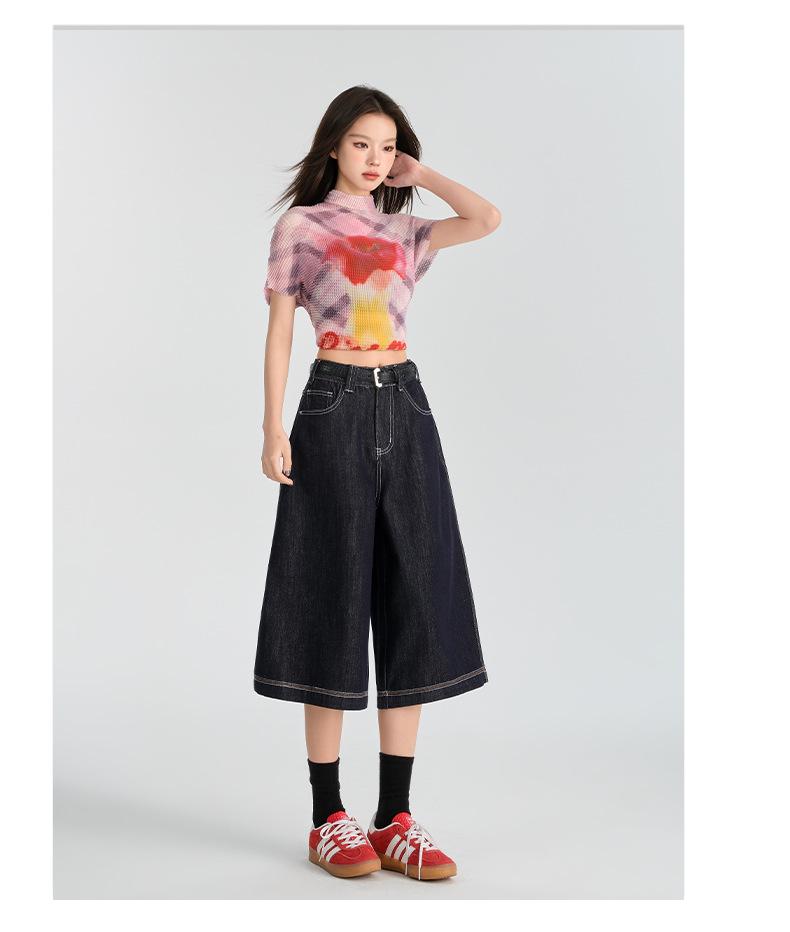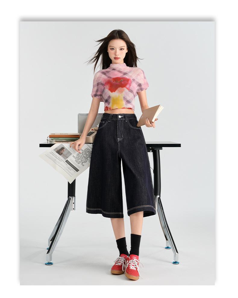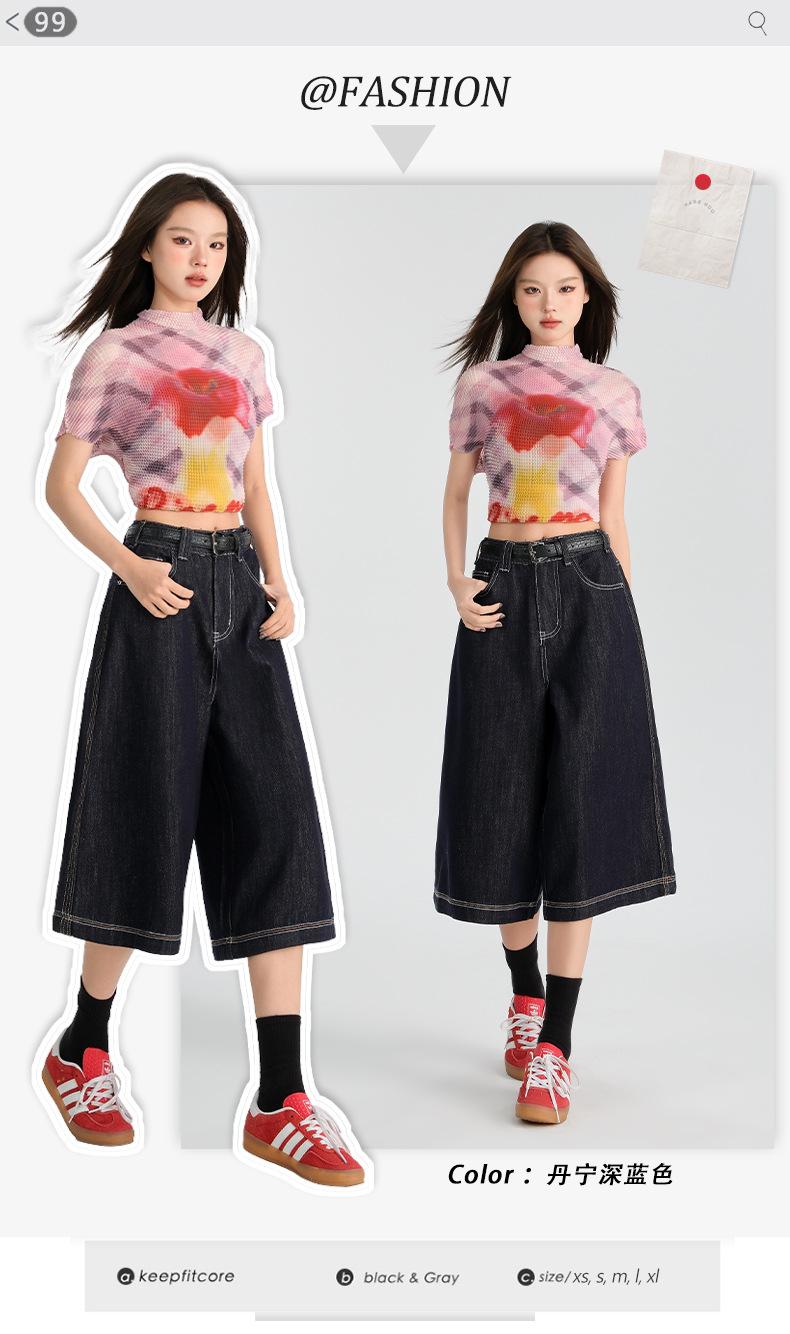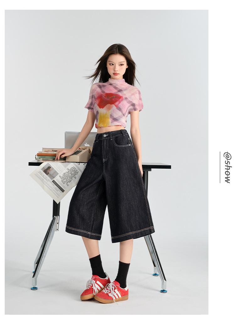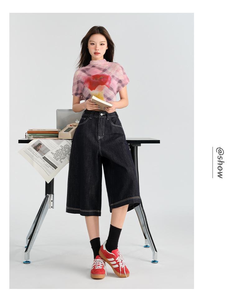 Jeans capri de pierna ancha azul denim oscuro que no se decoloran para mujer 2025 Verano Nuevo Tiro Alto Sueltos Drapeados