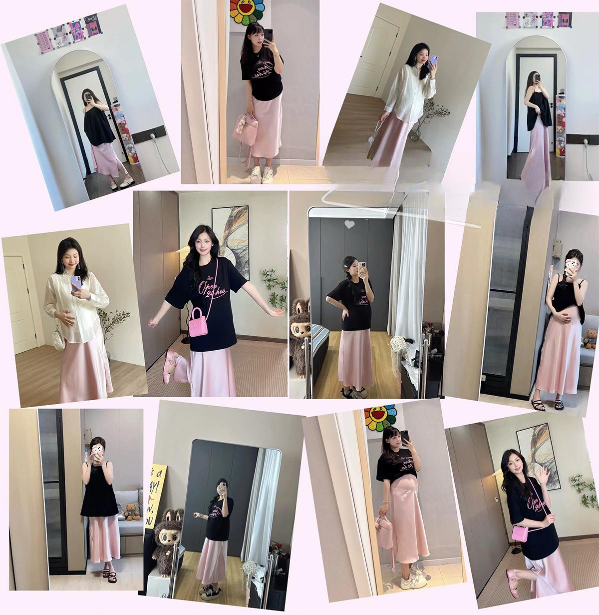 Falda de Maternidad Verano Delgada Talla Grande Satén Falda de Maternidad Falda para Mujer Acetato Embarazo Dos Piezas Media Falda
