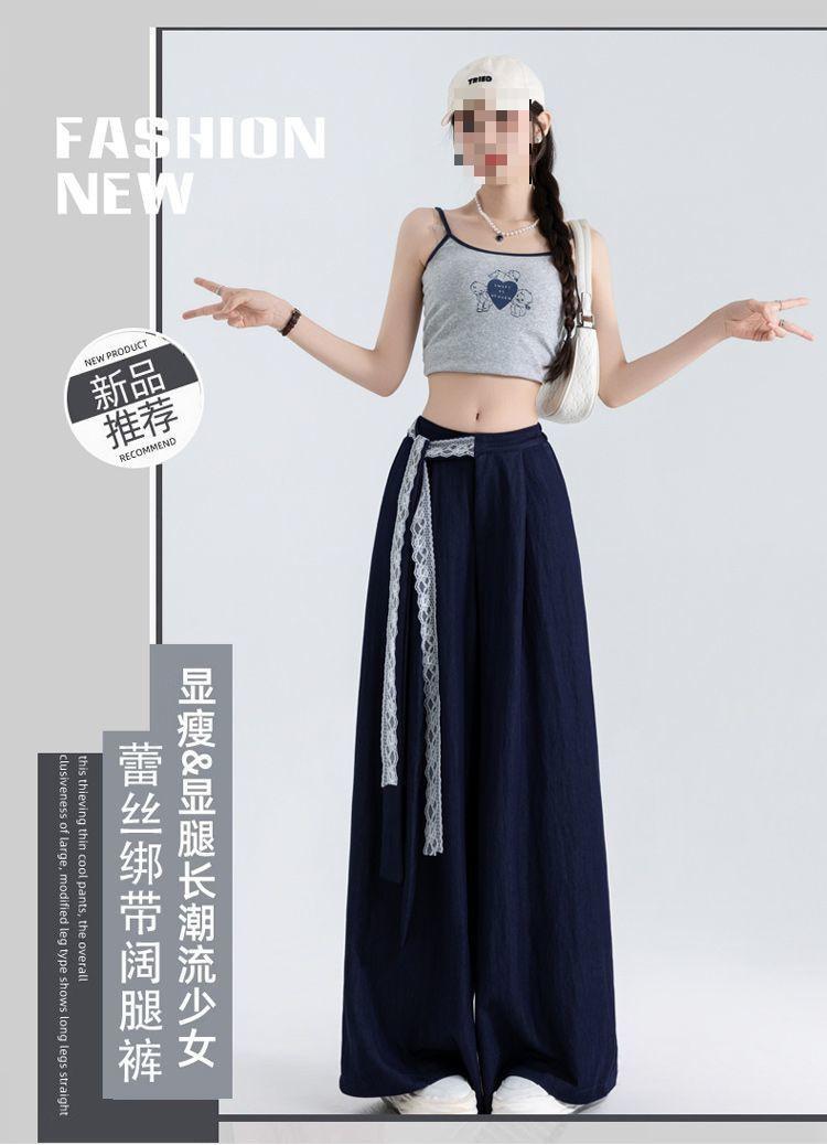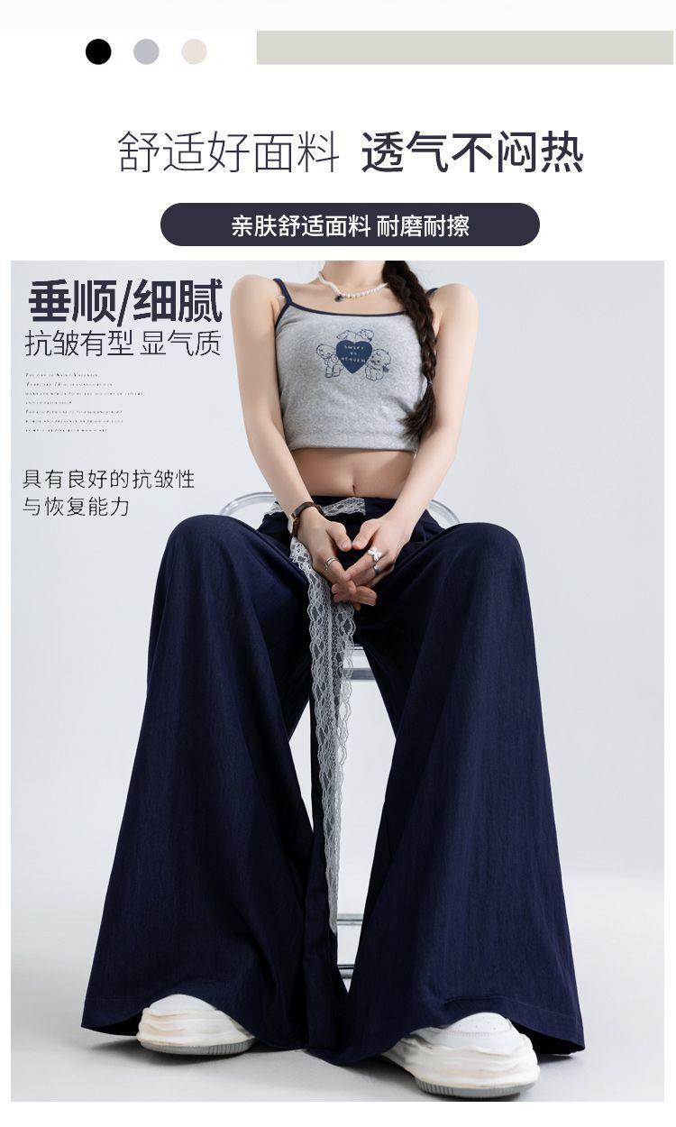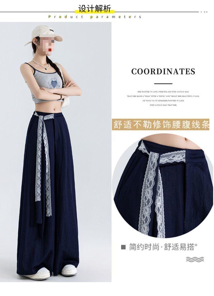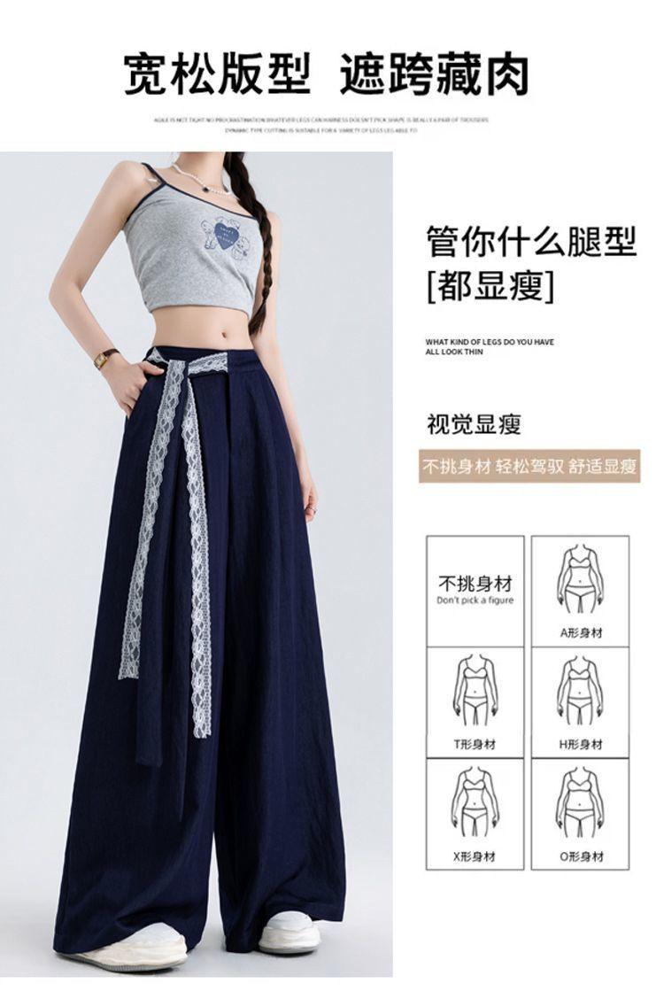 Pantalones de Moda con Encaje y Cintura Alta de Pierna Ancha para Mujer 2025 Primavera y Verano Nuevo Suelto Recto Drapeado Largo hasta el Piso Pantalones Casuales