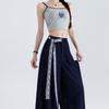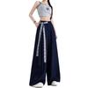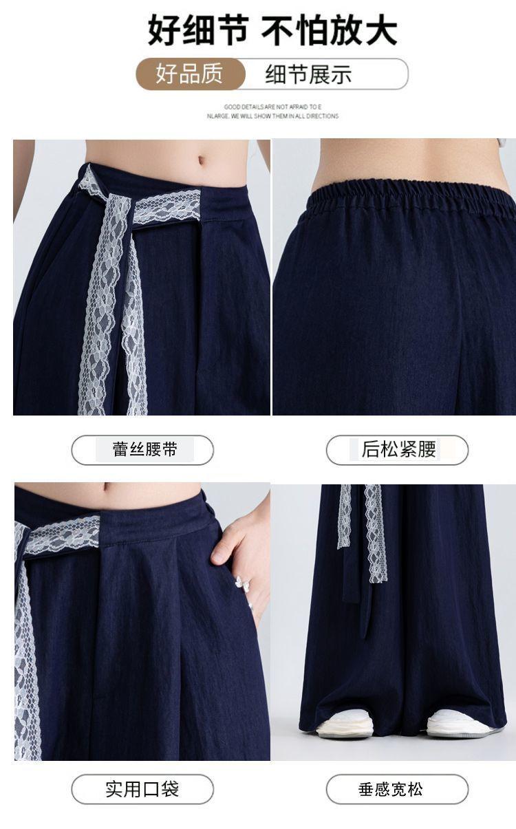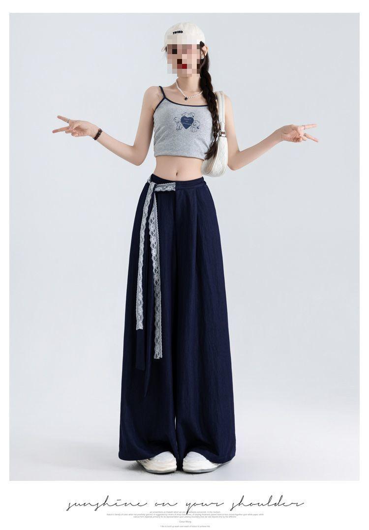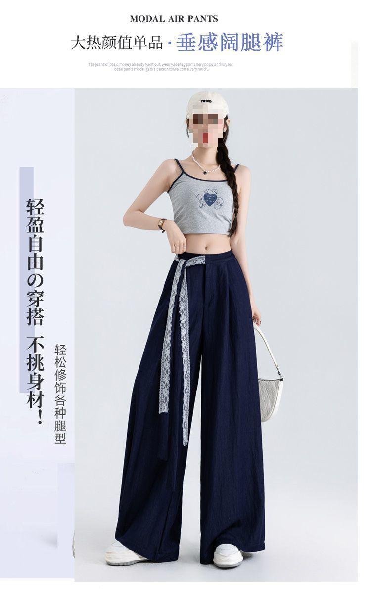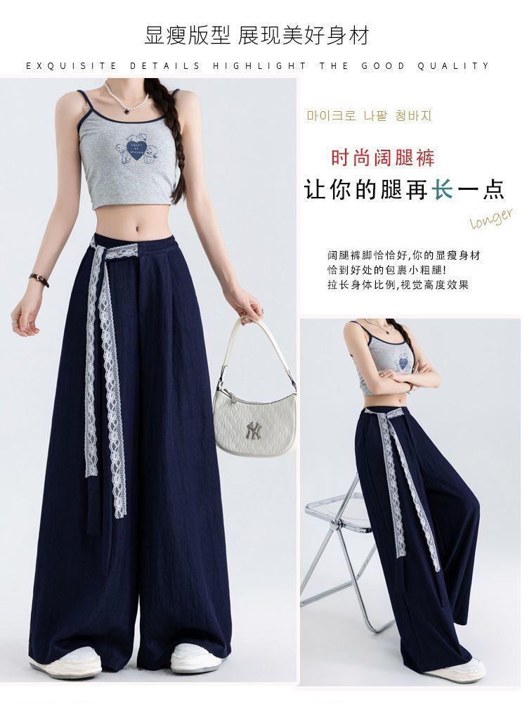Pantalones de Moda con Encaje y Cintura Alta de Pierna Ancha para Mujer 2025 Primavera y Verano Nuevo Suelto Recto Drapeado Largo hasta el Piso Pantalones Casuales