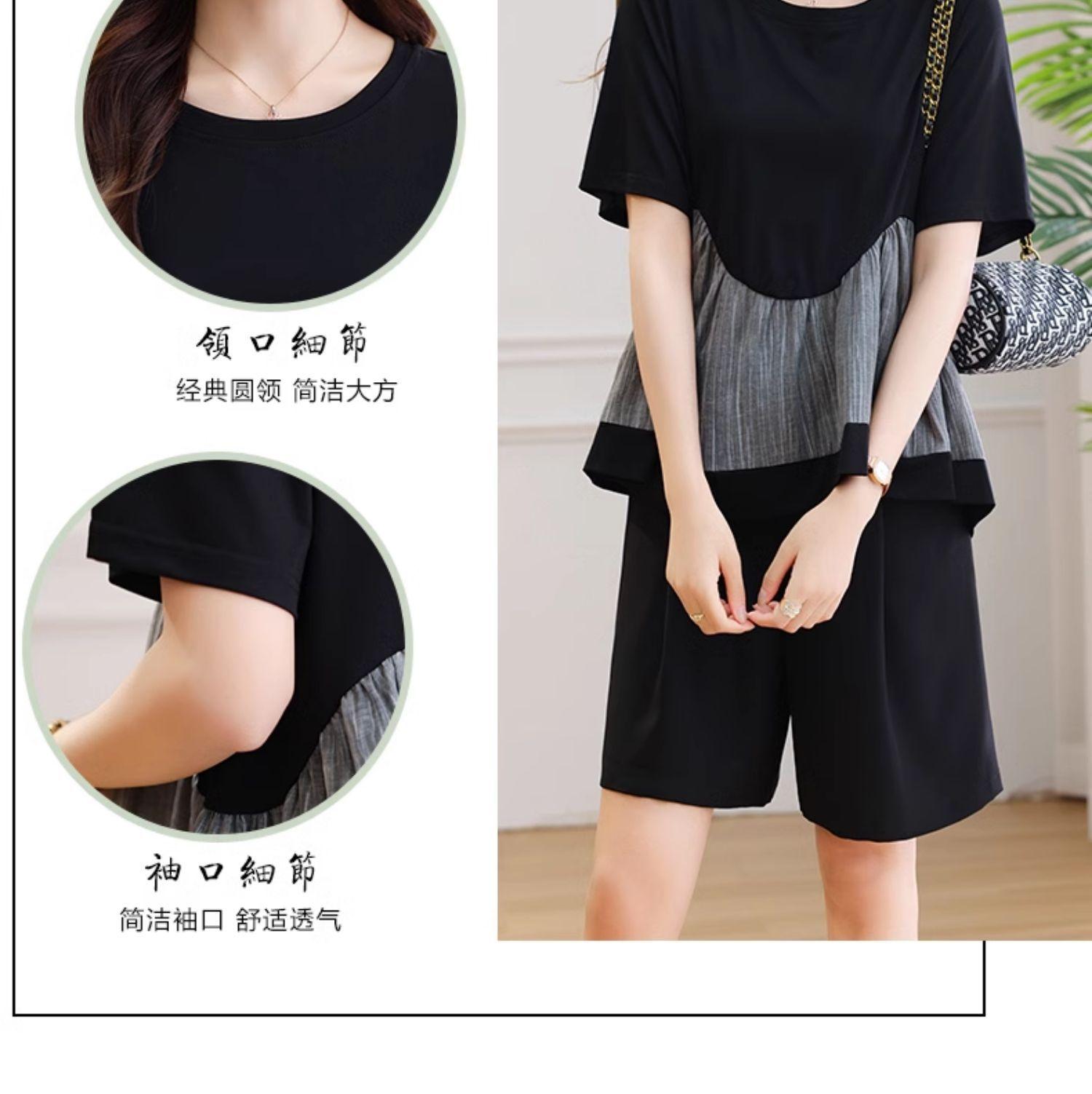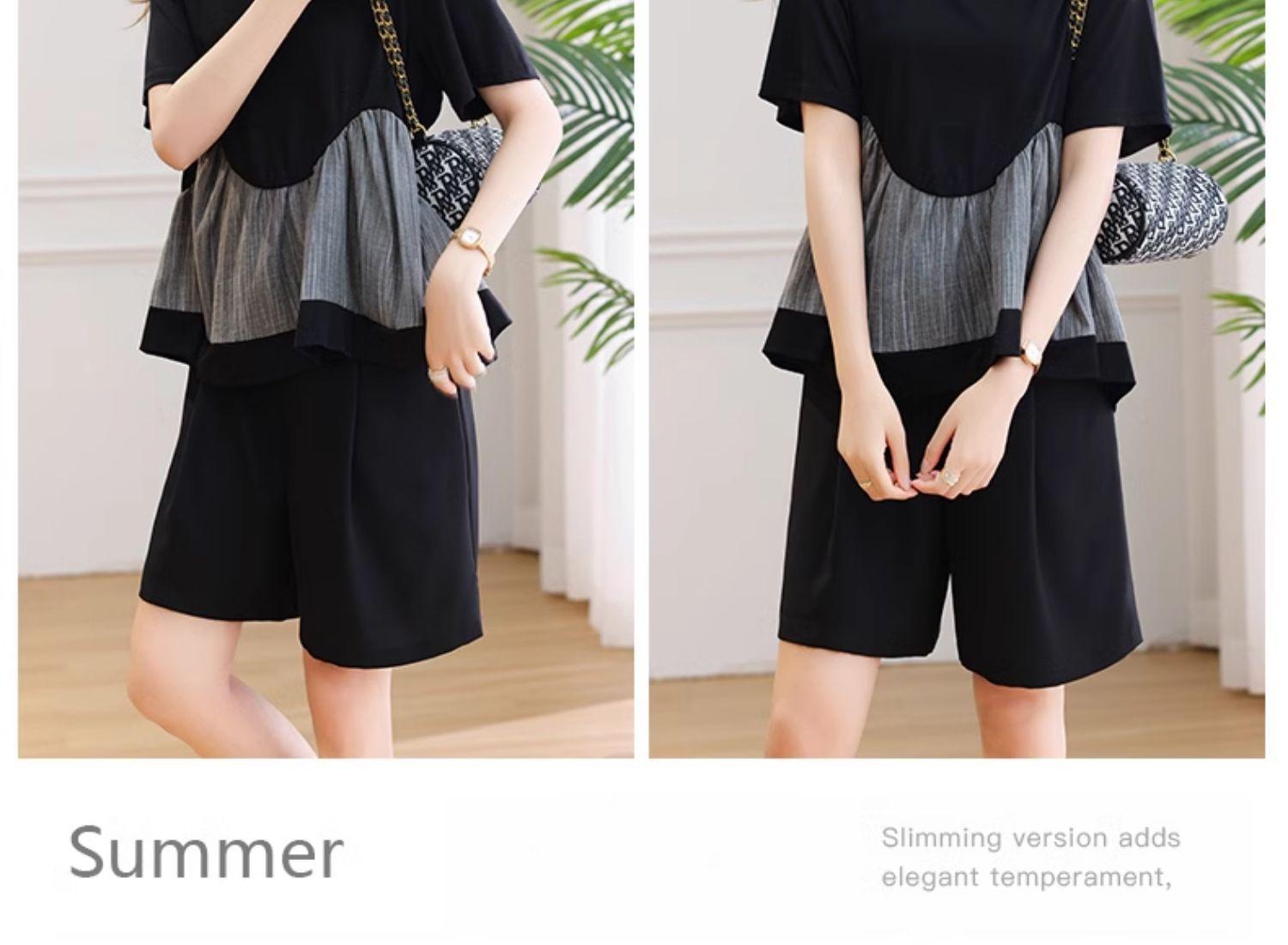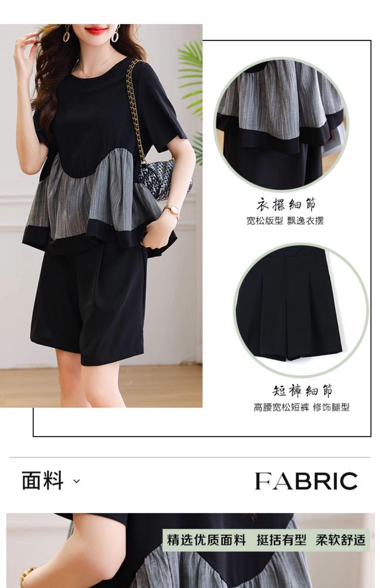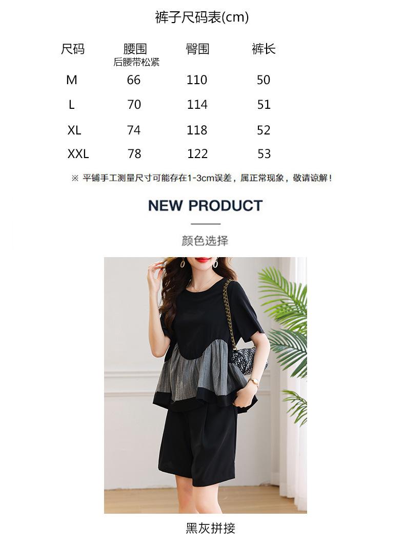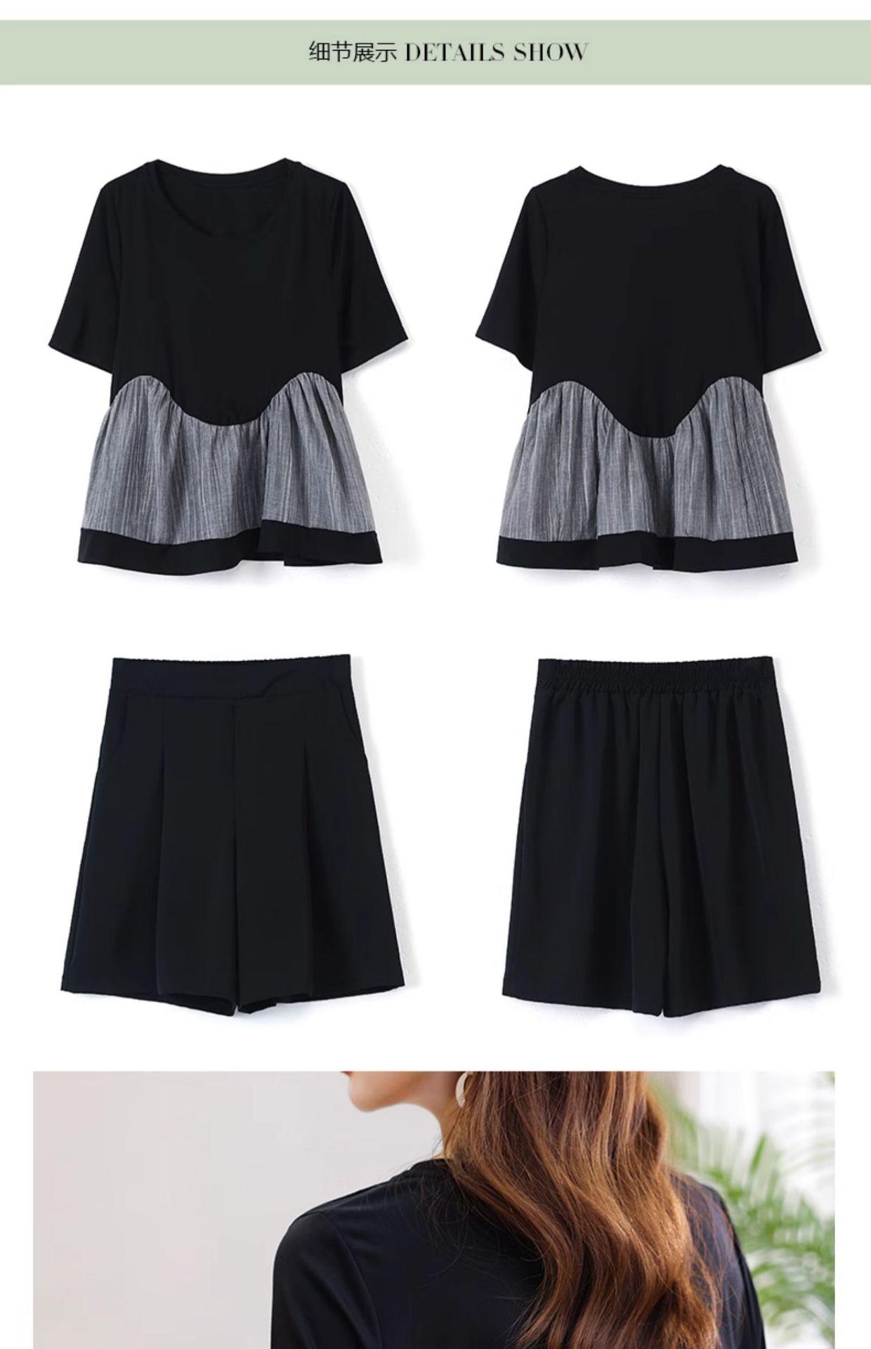 Traje de Camiseta Elegante de Estilo Tweed con Cuello Redondo y Bloques de Color de Manga Corta para Mujer Verano 2025 Nuevo Diseño Shorts Conjunto de Dos Piezas