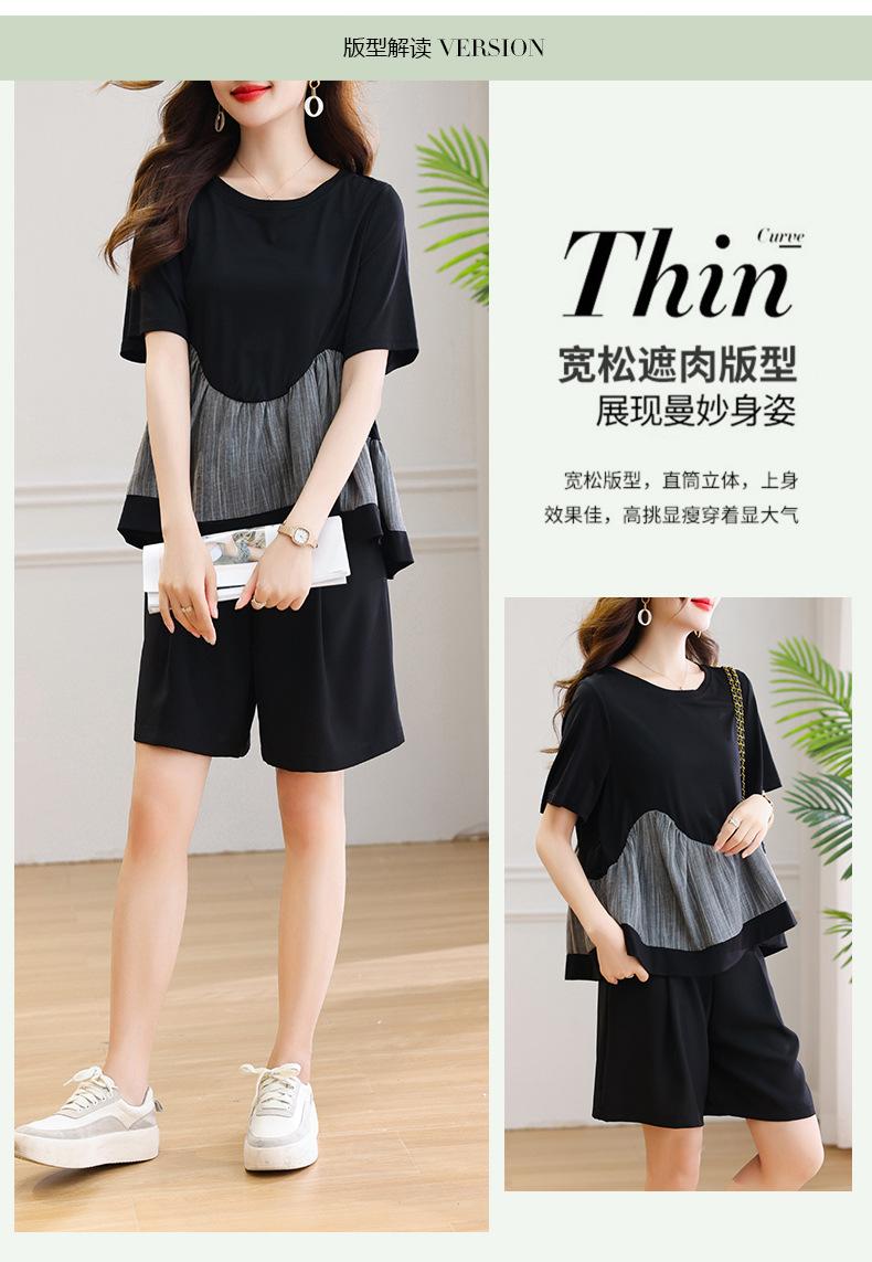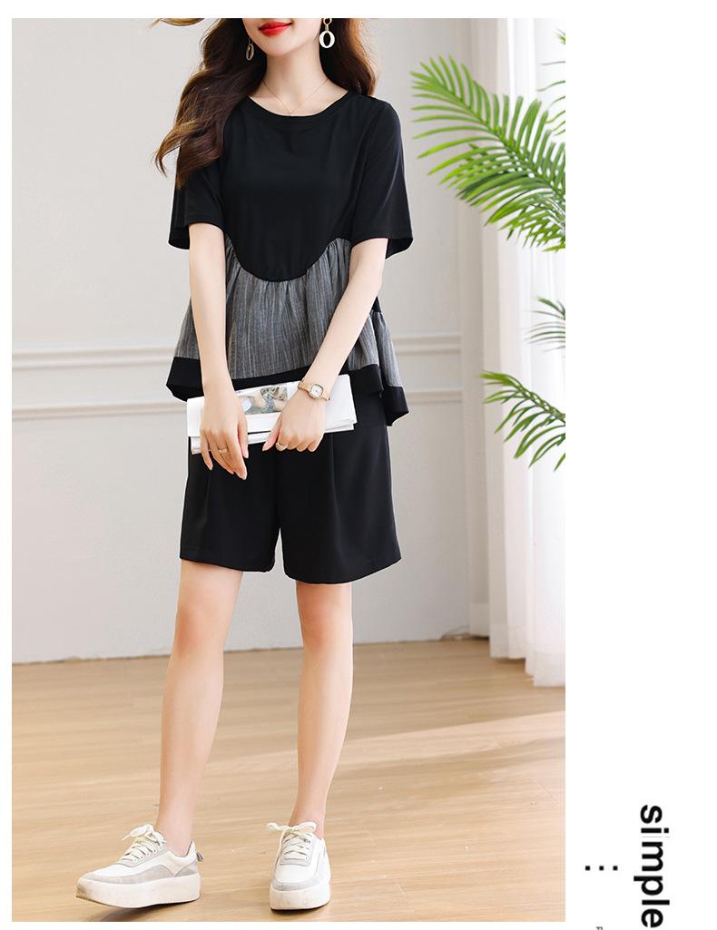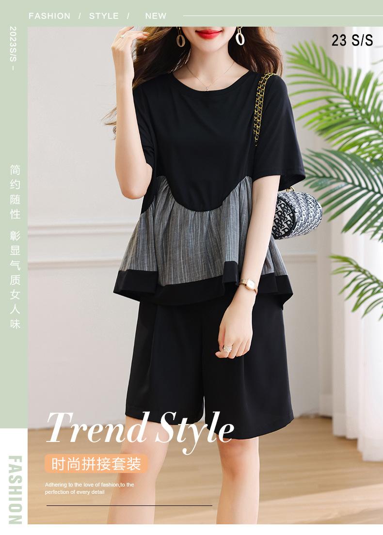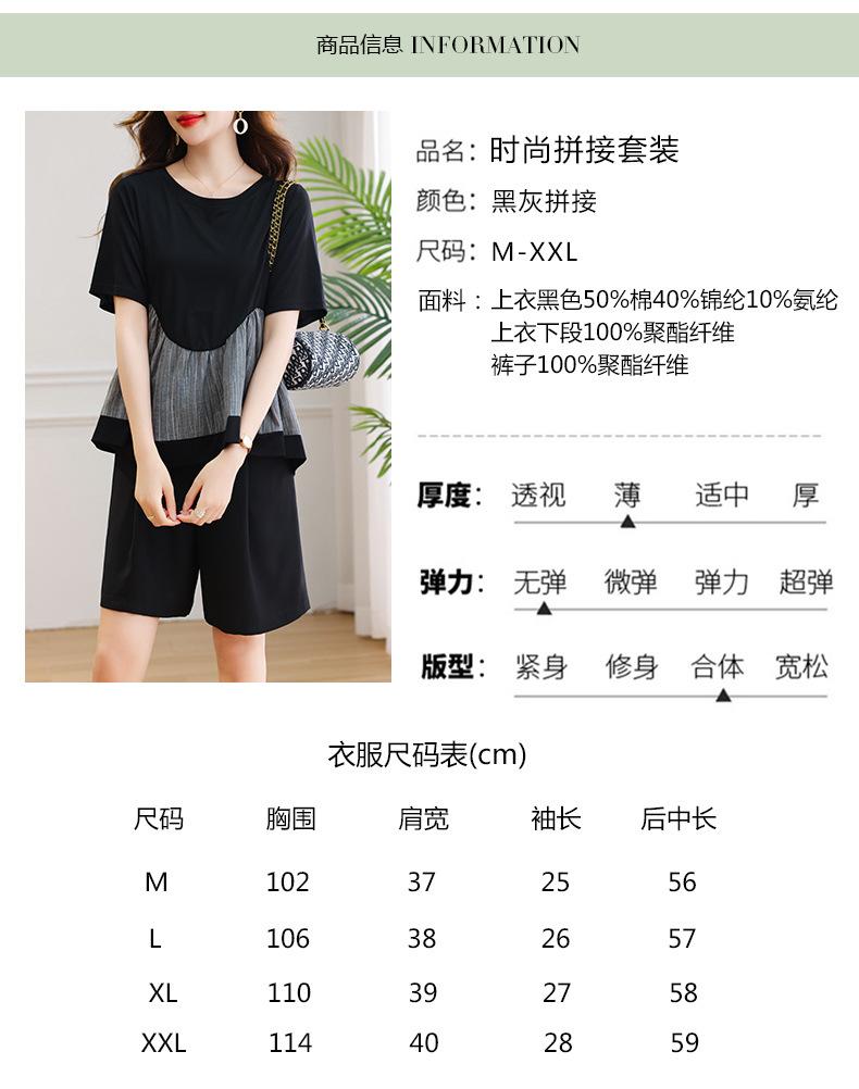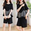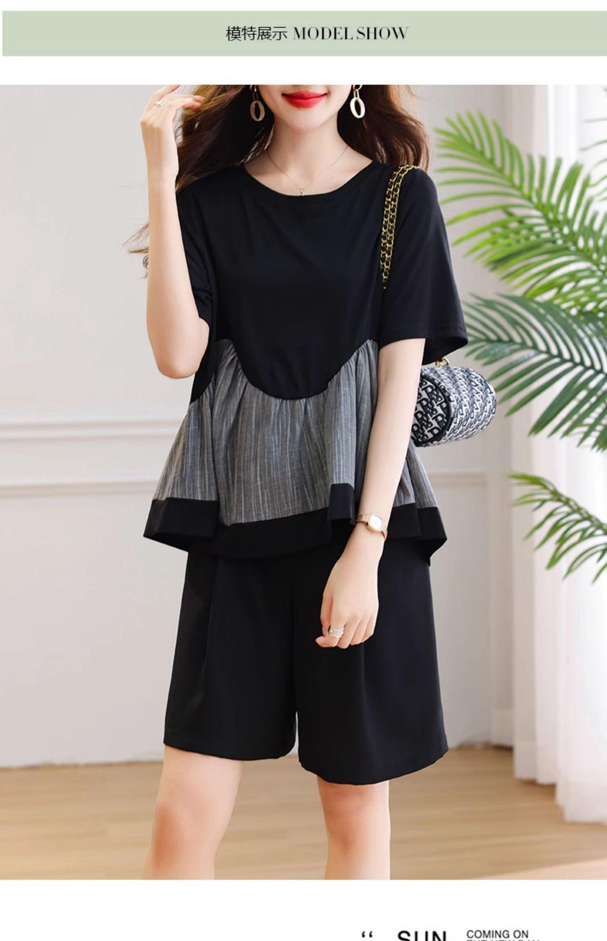 Traje de Camiseta Elegante de Estilo Tweed con Cuello Redondo y Bloques de Color de Manga Corta para Mujer Verano 2025 Nuevo Diseño Shorts Conjunto de Dos Piezas