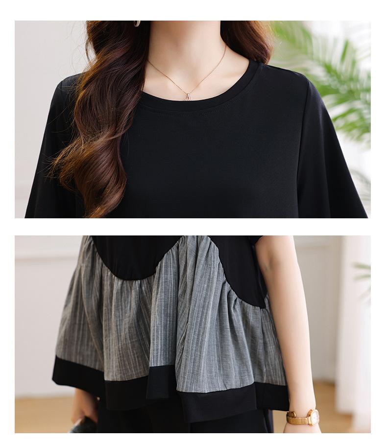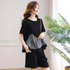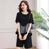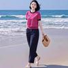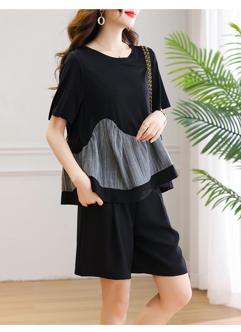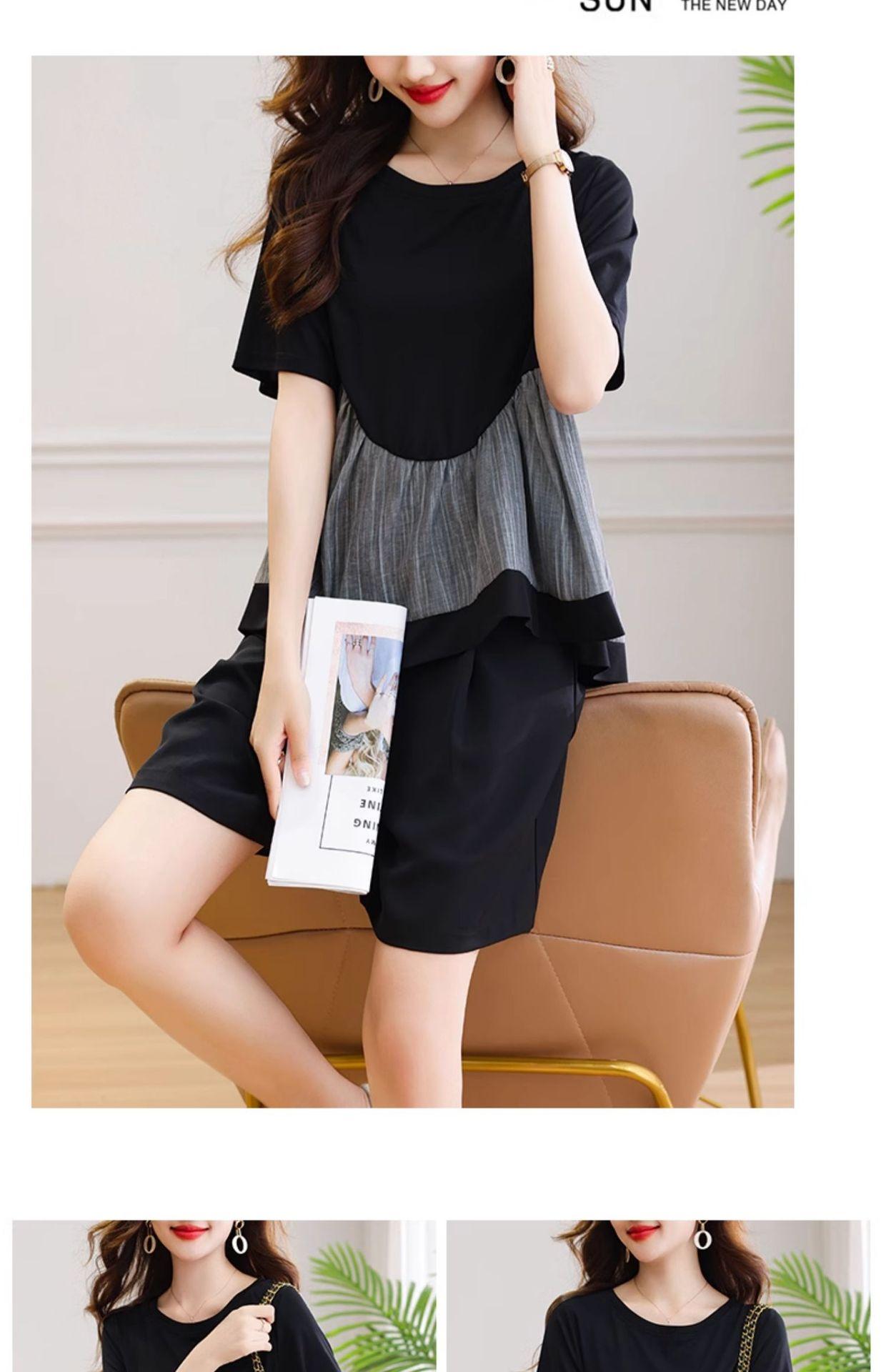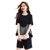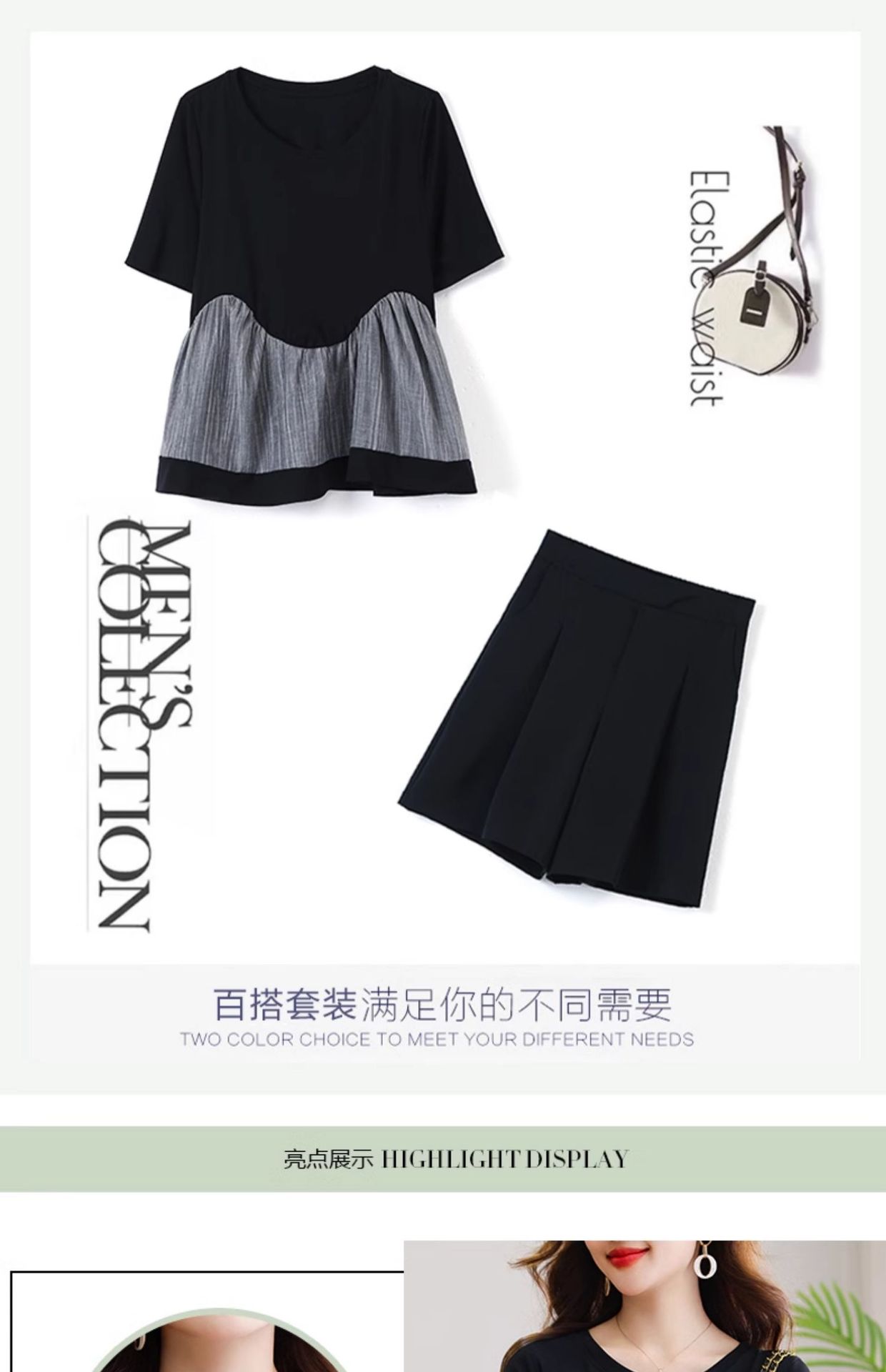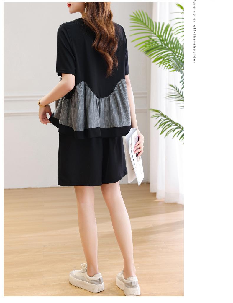Traje de Camiseta Elegante de Estilo Tweed con Cuello Redondo y Bloques de Color de Manga Corta para Mujer Verano 2025 Nuevo Diseño Shorts Conjunto de Dos Piezas