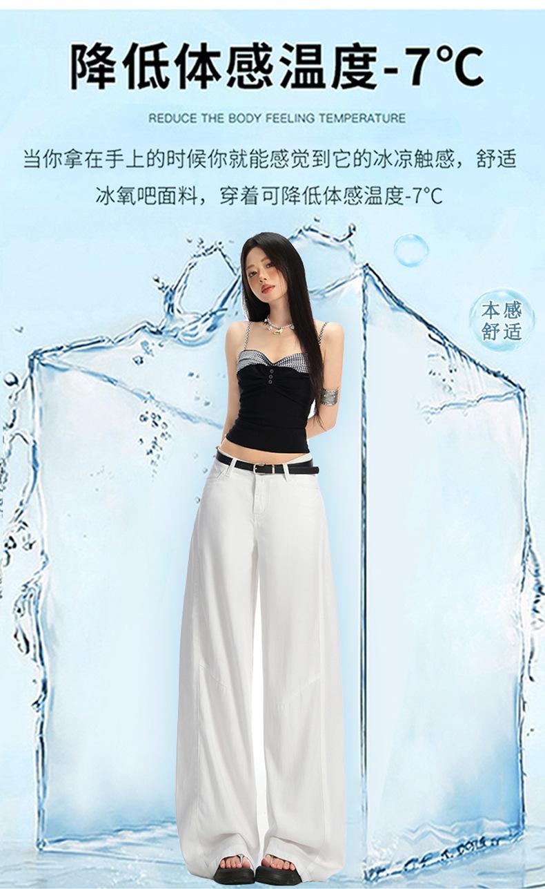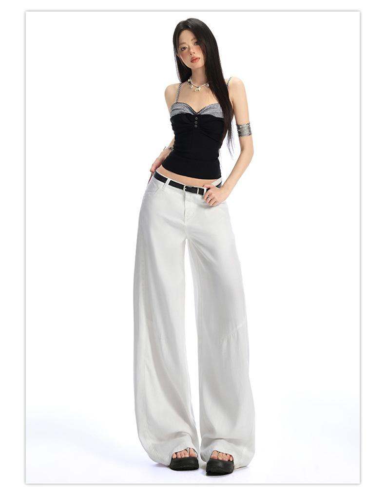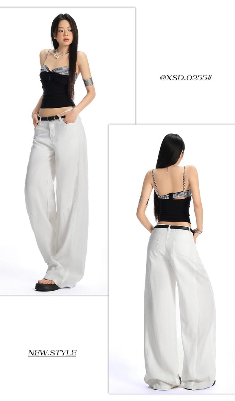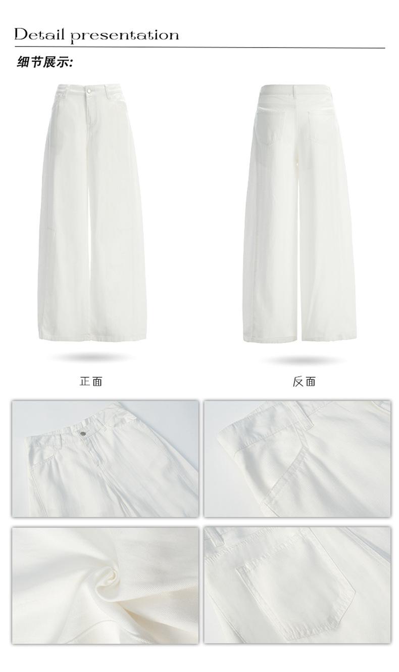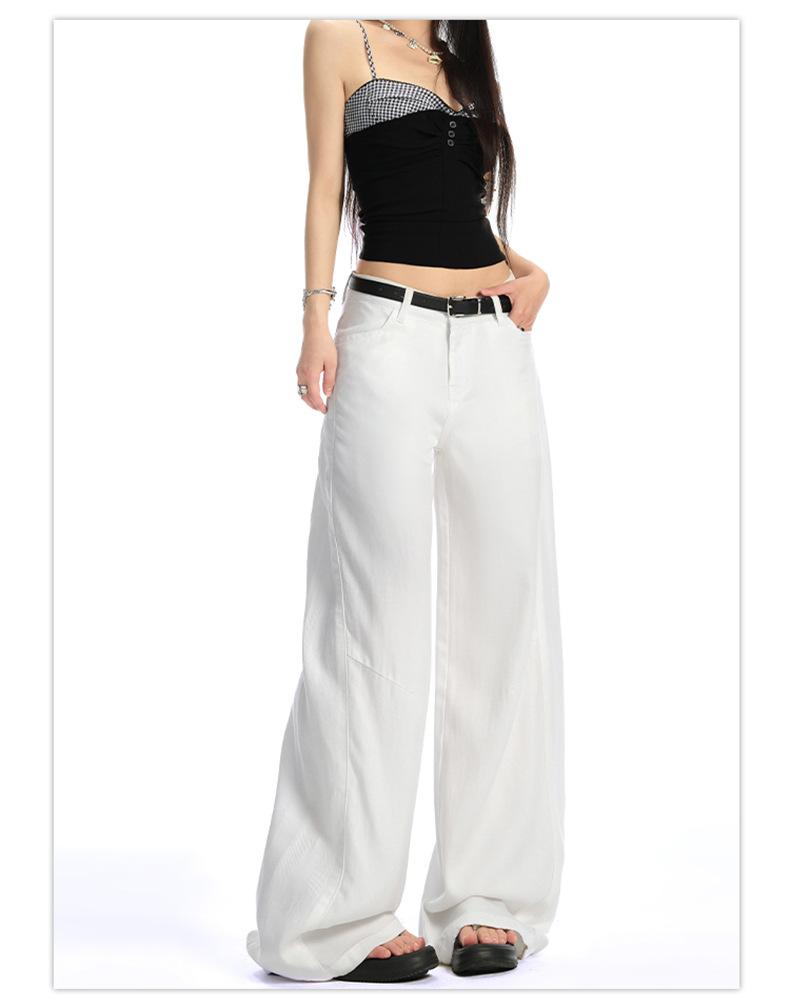 Ropa de Mujer de Seda Naranja # Jeans de Pierna Ancha de Lyocell Tencel Blanco para Mujer Verano Delgados Americanos Cintura Alta Pantalones Cimitarra